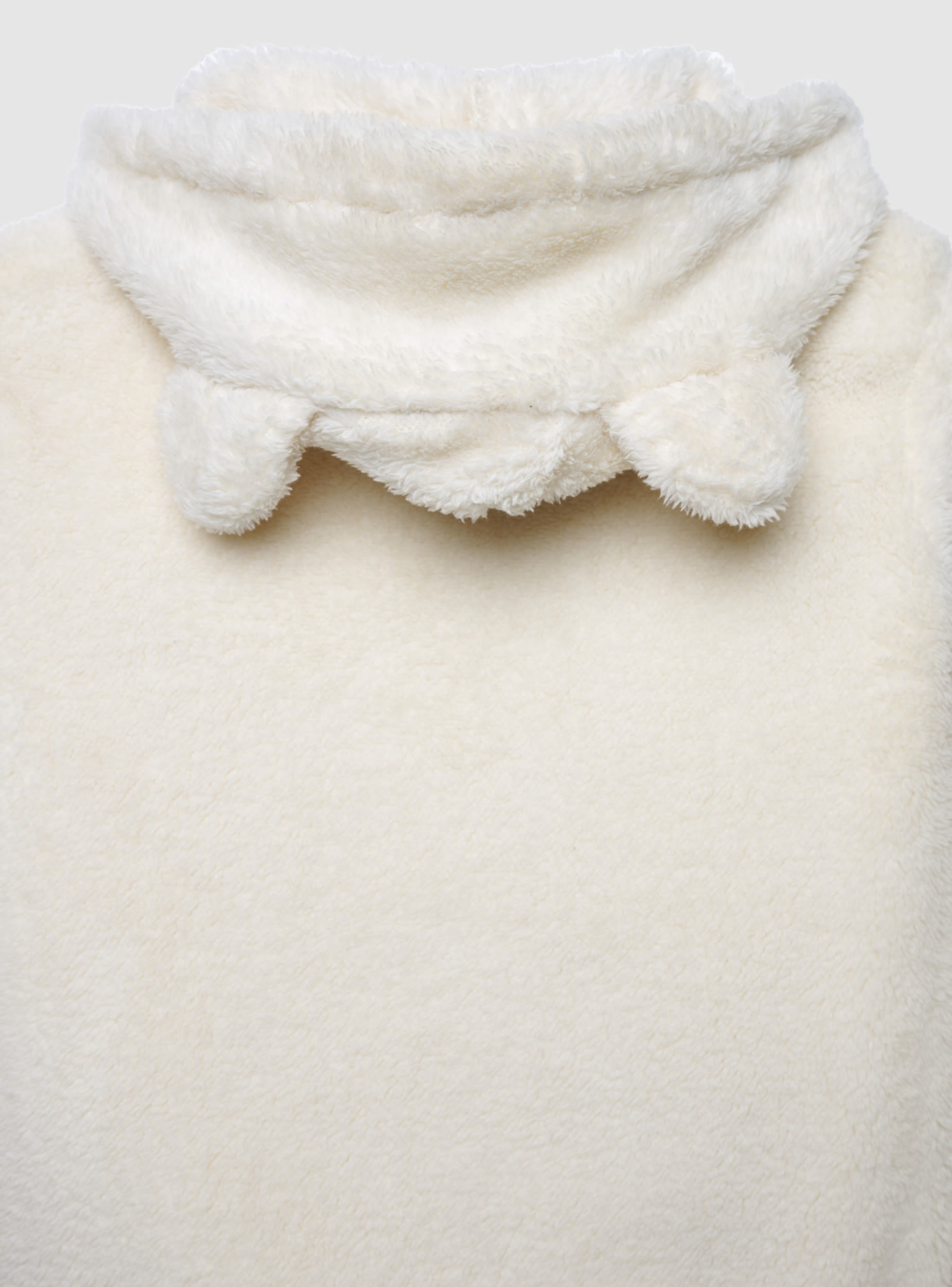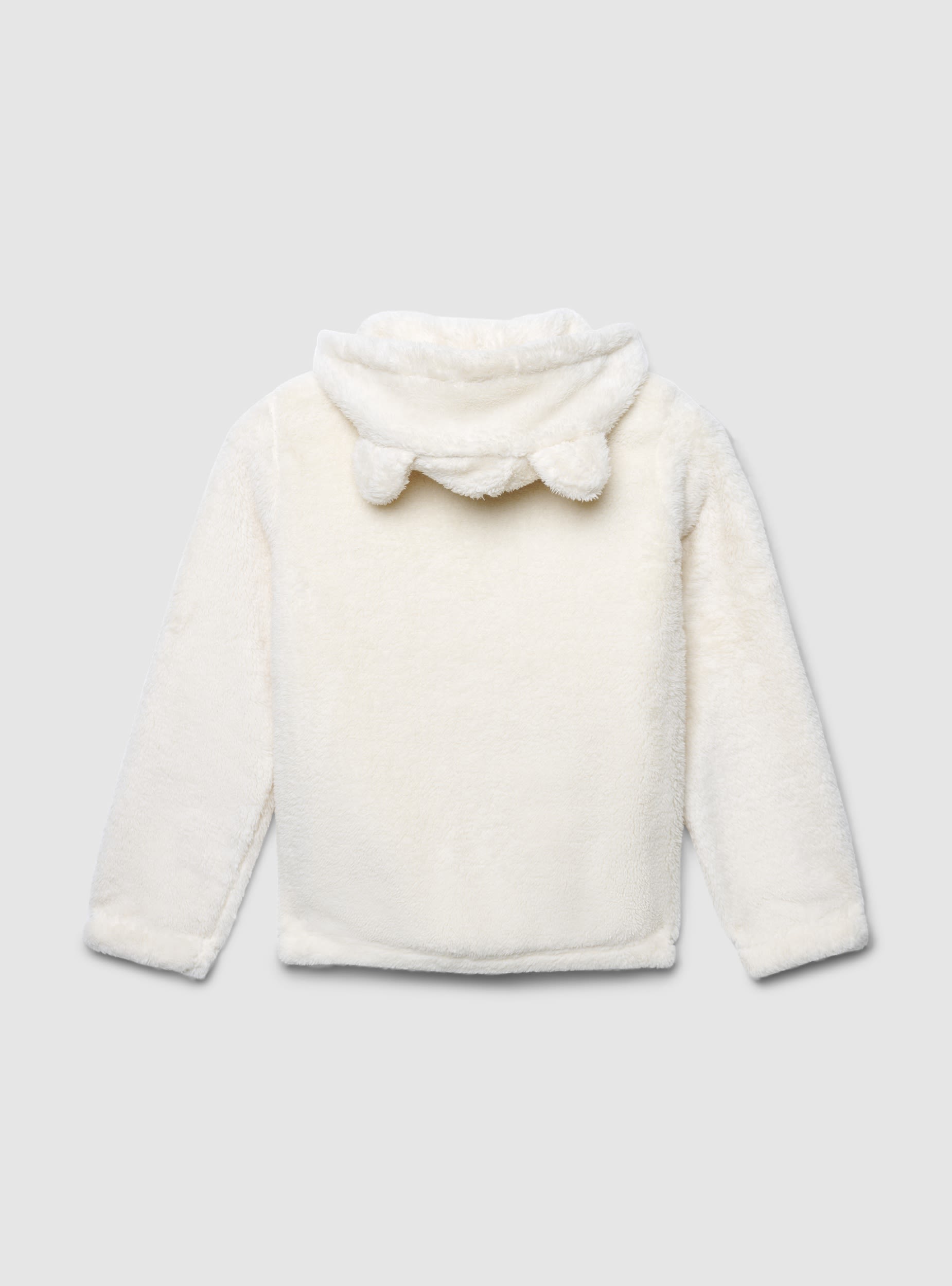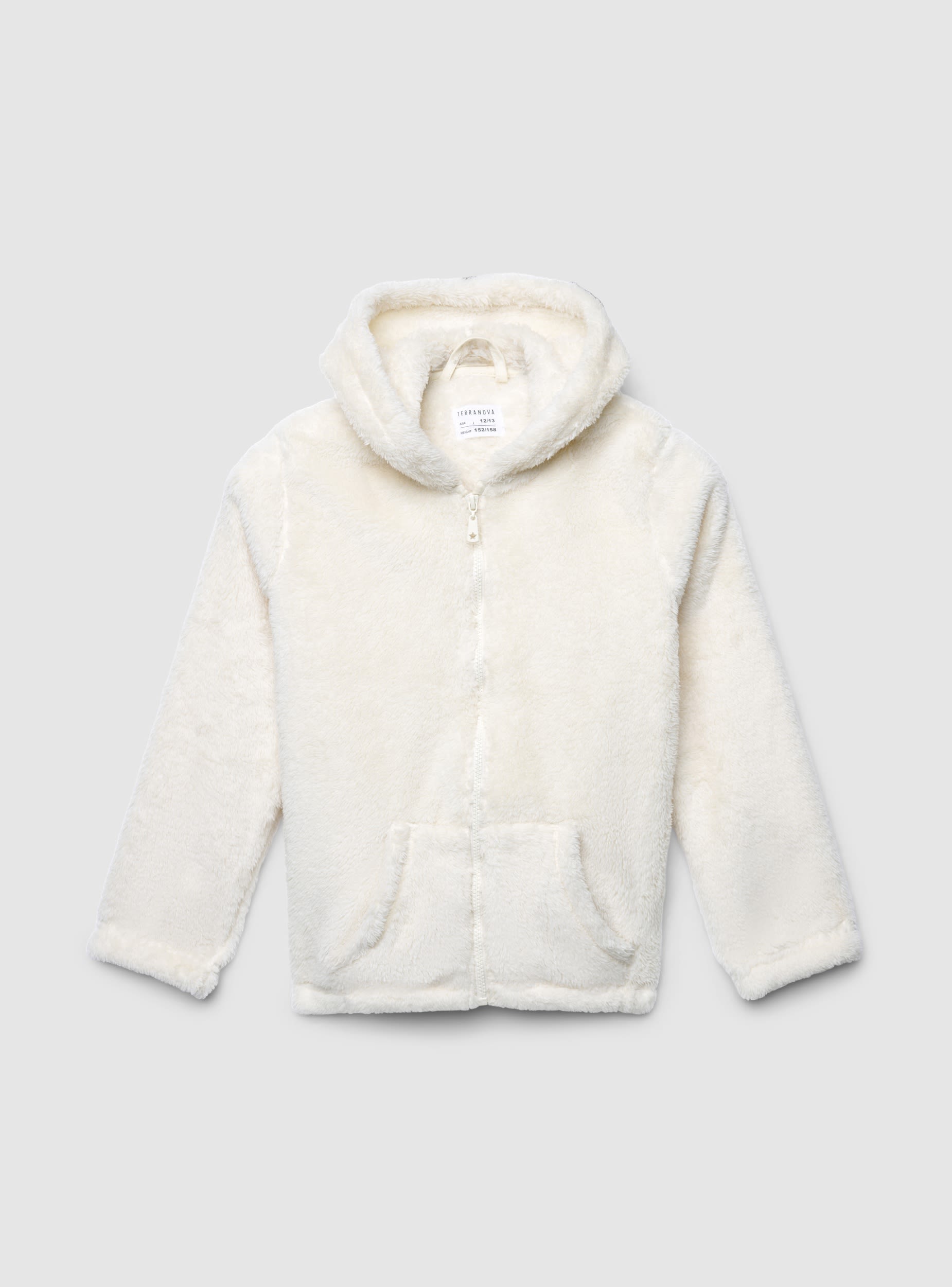 Bluza me kapuç për vajza me zinxhir në pjesën e përparme, perfekte për ditët e rastësishme dhe kohën e lirë. E bërë nga një material i butë sherpa, ka mëngë të gjata dhe xhepa në formë marsupi. Përshtatje e rregullt dhe përfundime elastike në skaje për më shumë rehati. Ideale për t’u veshur mbi bluzë dhe legging ose me xhinse për një pamje të rehatshme dhe të ngrohtë.Detajet
