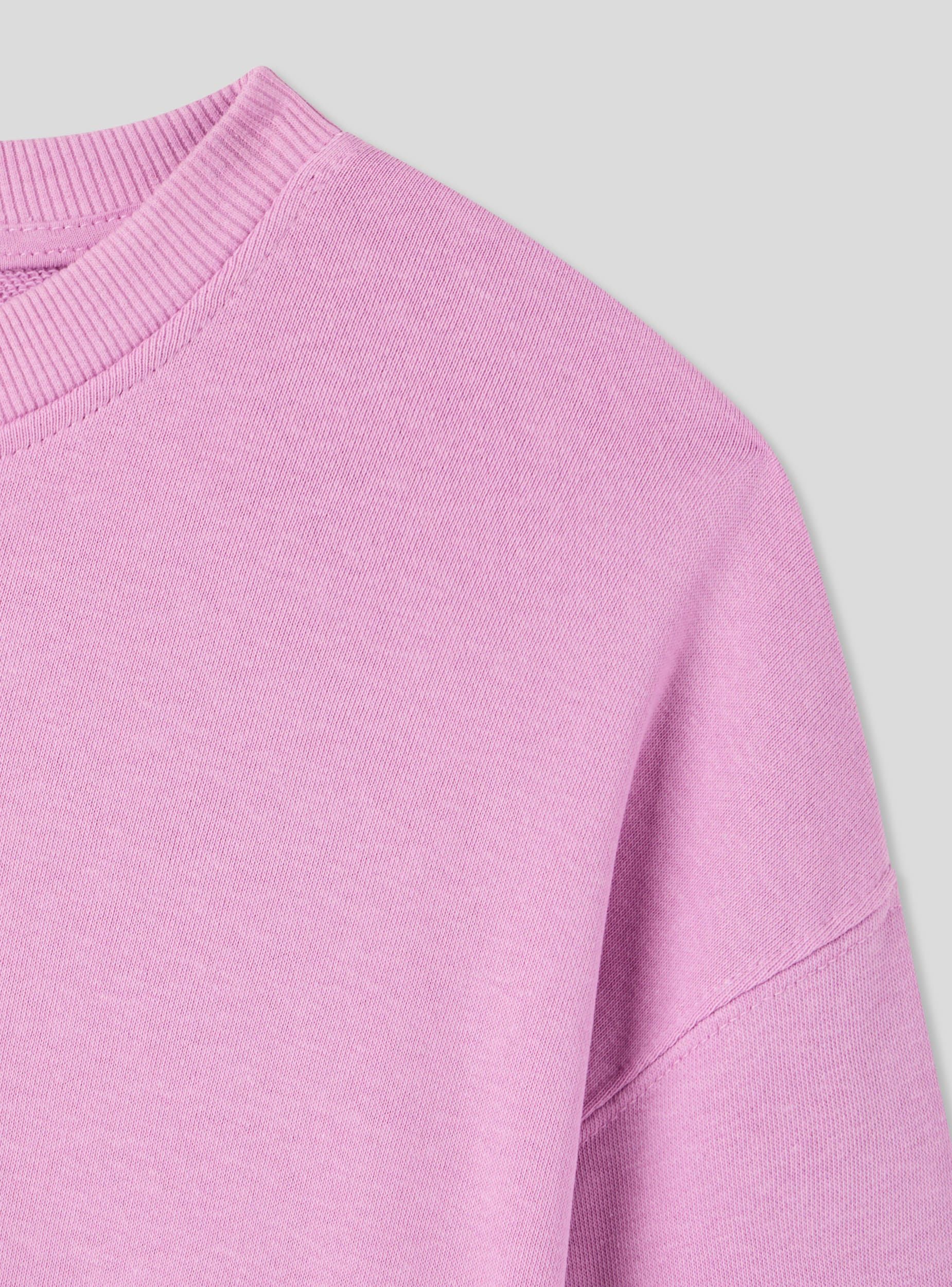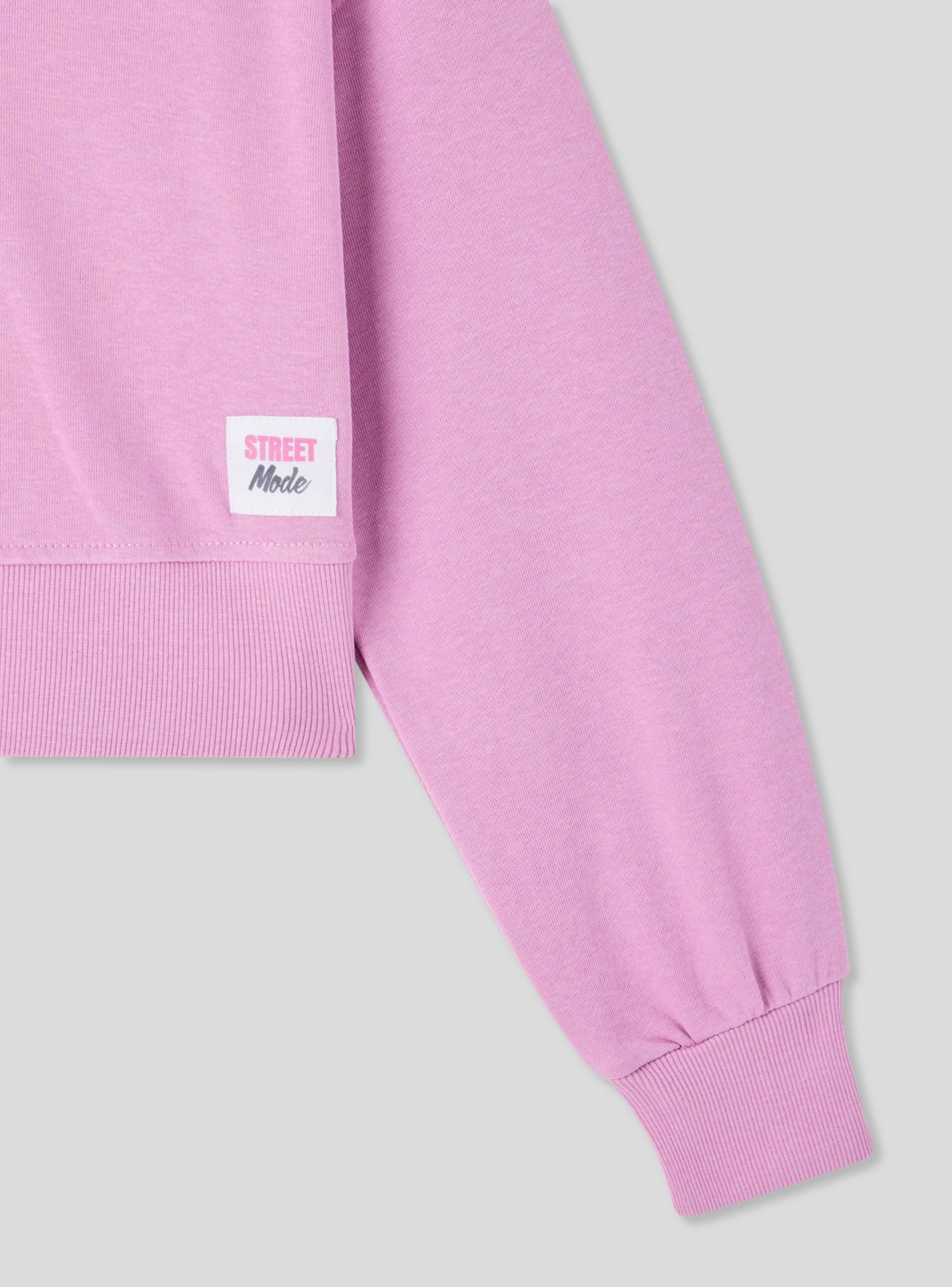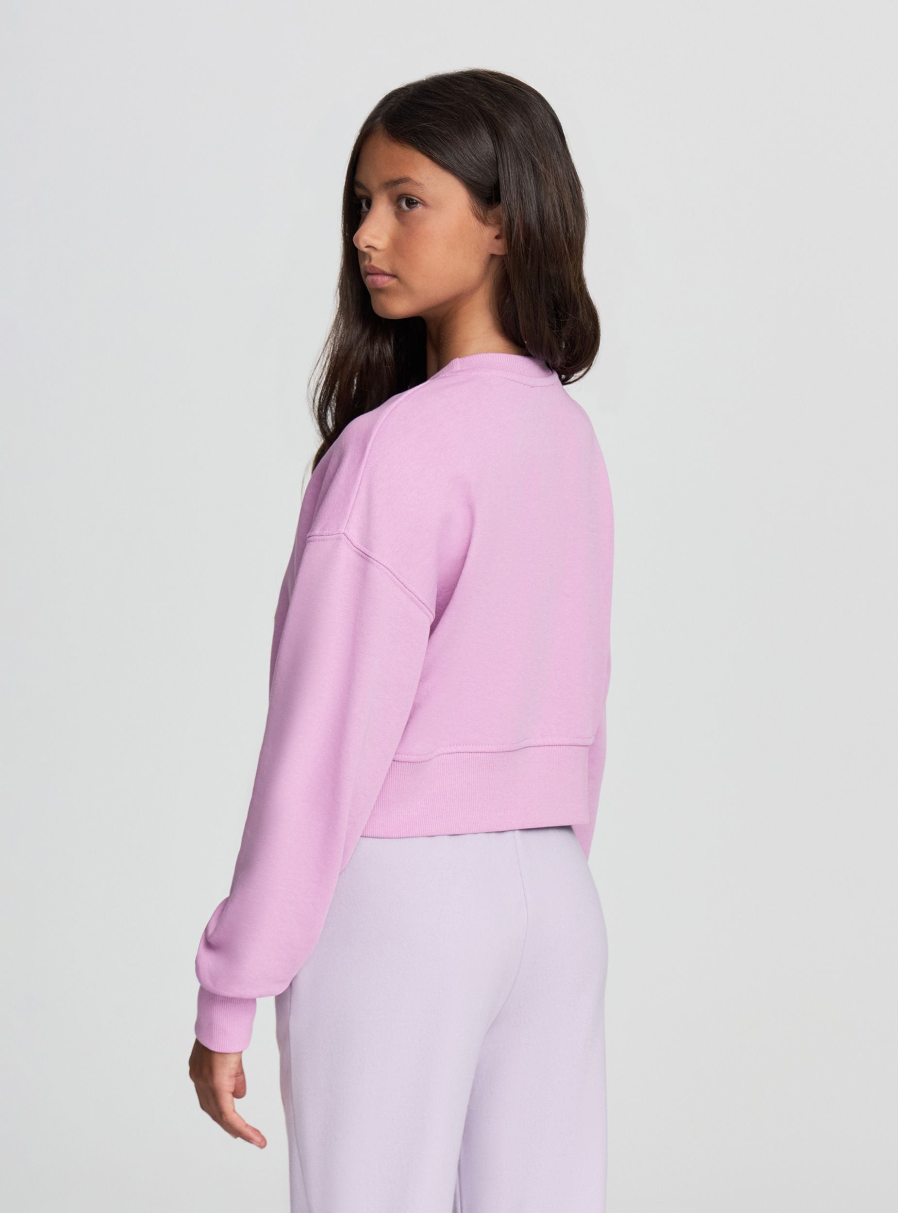Felpa e lehtë për vajza me prerje të shkurtër, ideale për një pamje të rastësishme dhe të shumëanshme. Modeli ka mëngë të gjata me mansheta elastike, qafë rrethore me vijë, pa kapuç dhe pa zinxhir, ofron komoditet dhe liri lëvizjeje. Shkrimi i aplikuar në fund i shton një prekje moderne dhe të veçantë, e përsosur për t'u kombinuar me xhinse ose pantallona sportive për shkollë ose kohë të lirë.