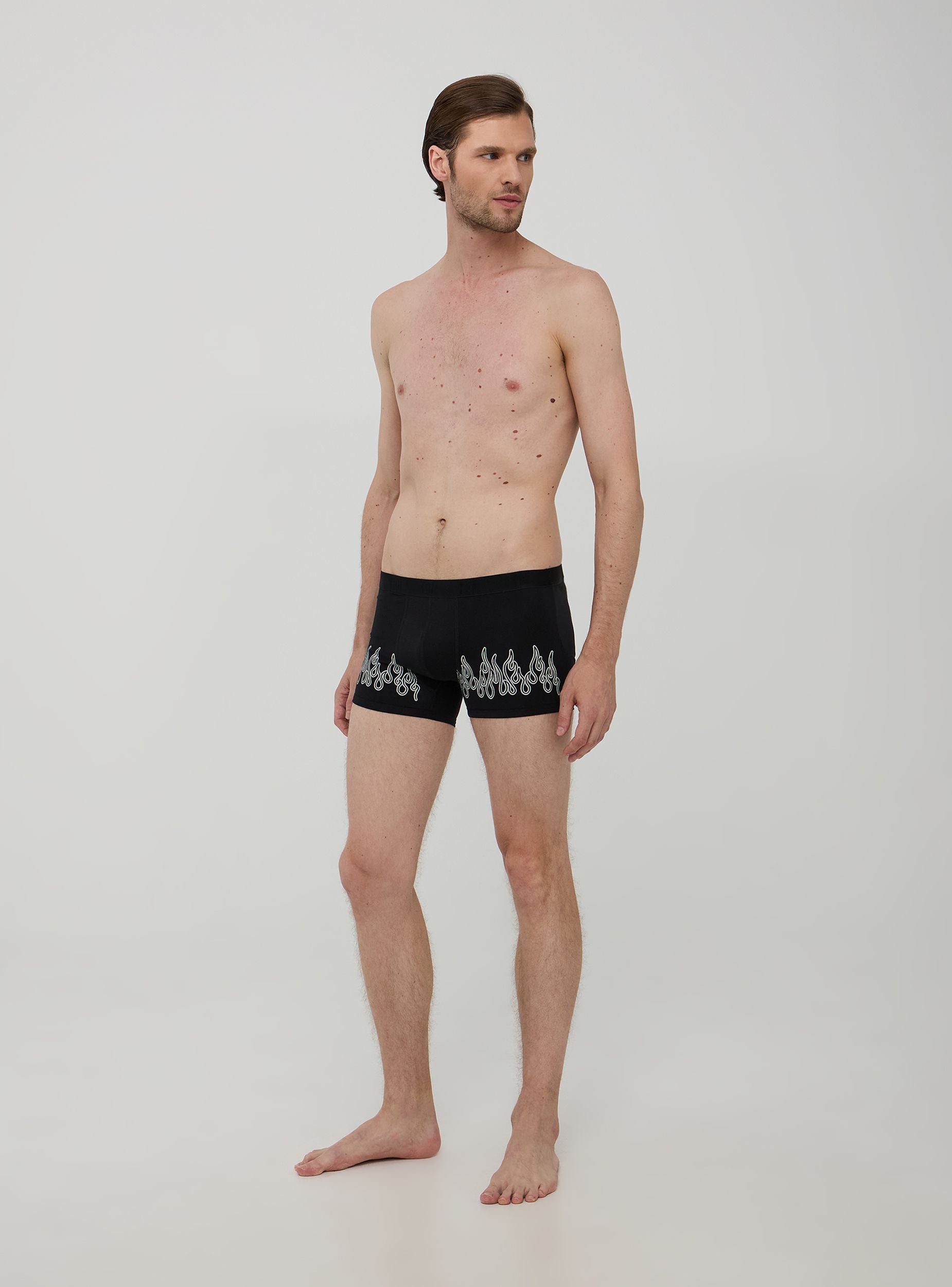 Boxer për burra të realizuar nga pambuku elastik të butë, duke garantuar komoditet dhe ajrosje gjatë gjithë ditës. Kanë një dizajn tërheqës me një model flakësh të bardha që i jep një prekje guximtare dhe të veçantë. Qëndisjet sigurojnë një përshtatje të përsosur, ndërsa elastiku i butë në bel me logon TRN ofron mbështetje më të madhe pa e ngjeshur.Detajet