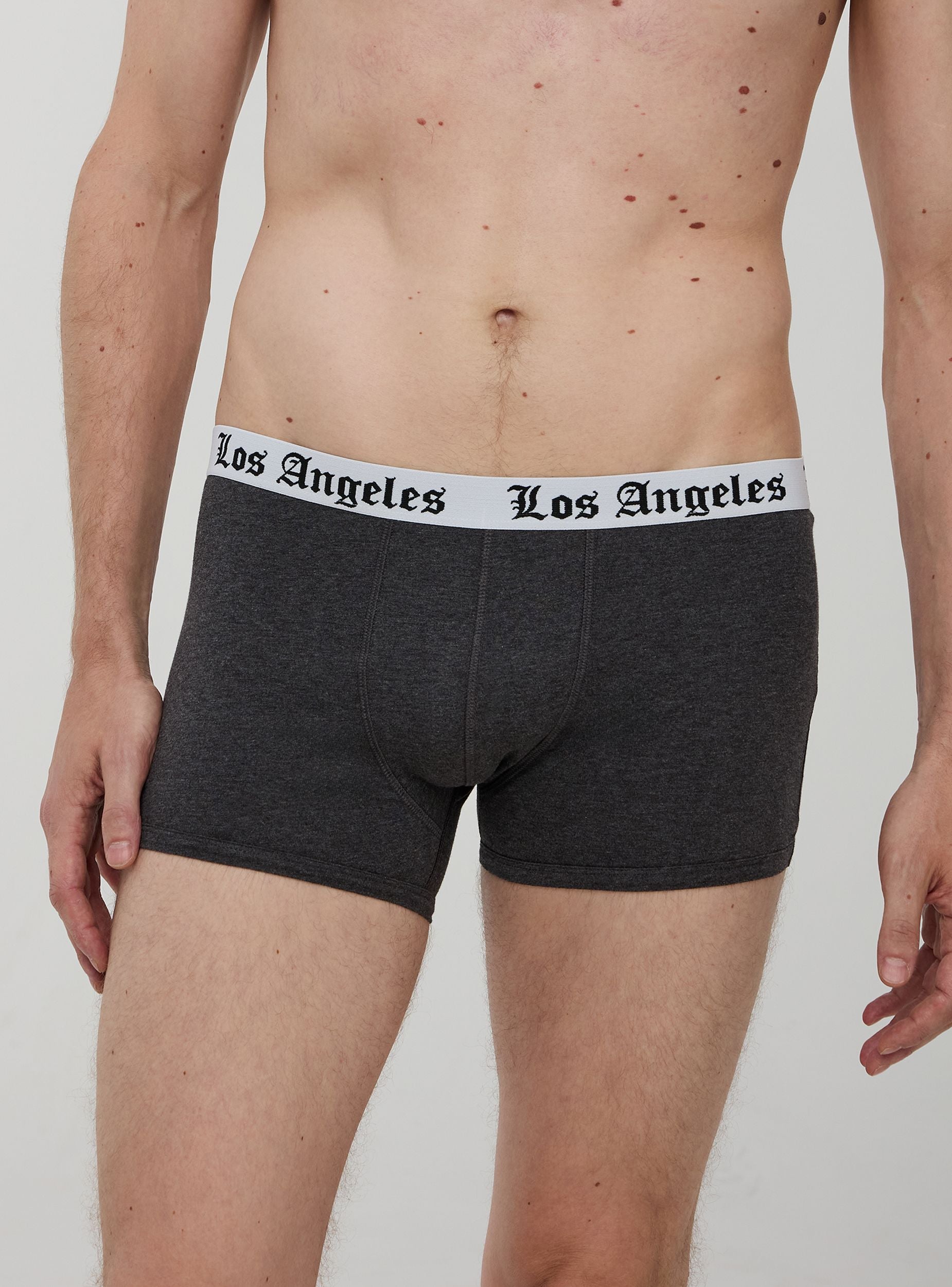 Boxer në pambuk elastik, perfekt për një komoditet të përditshëm. Elastiku në beli, i dekoruar me shkrimin "Los Angeles" në stilin gotik, shton një prekje moderniteti dhe stili urban. Dizajni i thjeshtë dhe linear pa qepje të dukshme, garanton një përshtatje të ngushtë dhe komode. Ideale për përdorim casual dhe të përditshëm, duke kombinuar praktikën dhe estetikën. Shumë mirë edhe si ide dhurate.Detajet