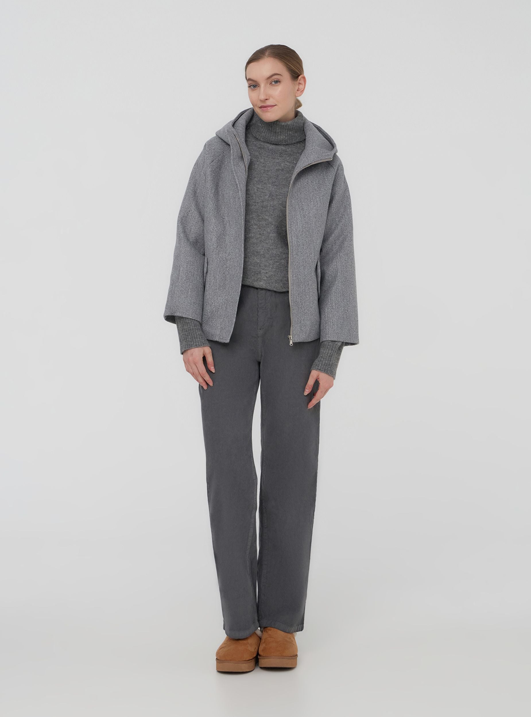 Xhaketë për gra në ngjyrë të vetme, me një linjë të shkurtër dhe moderne, ideale për të përballuar ditët më të freskëta me stil. E pajisur me një kapuç të gjerë që shton një prekje të rastësishme dhe funksionale, mbron efektivisht nga moti i keq pa hequr dorë nga eleganca. Përshtatja e rehatshme dhe shumëanshme përshtatet me raste të ndryshme, duke u kombinuar lehtësisht si me pamje sportive ashtu edhe me veshje më të rafinuara. Ky artikull thelbësor bashkon praktikën dhe dizajnin, duke të lejuar të shprehësh personalitetin tënd me një prekje bashkëkohore.