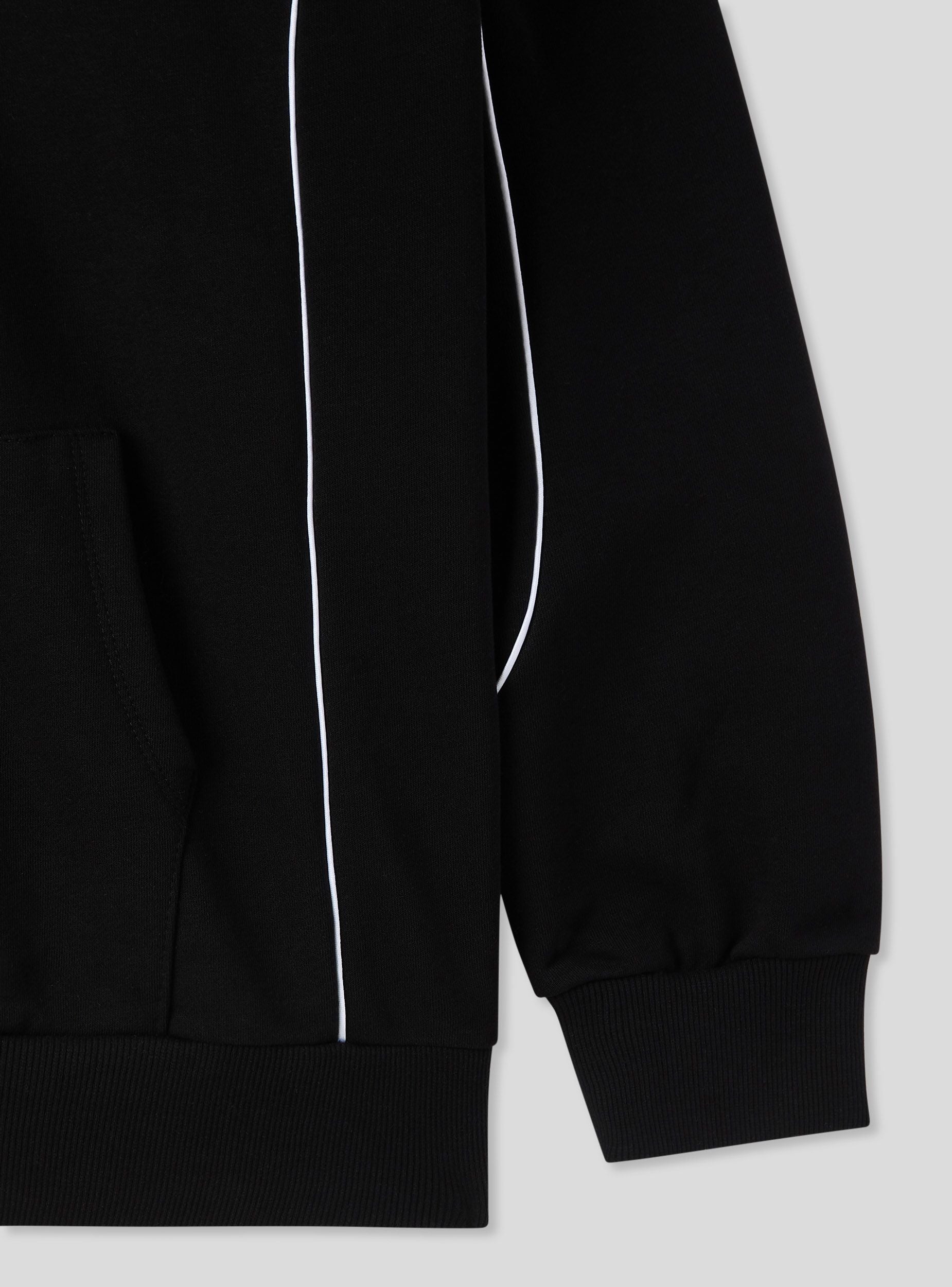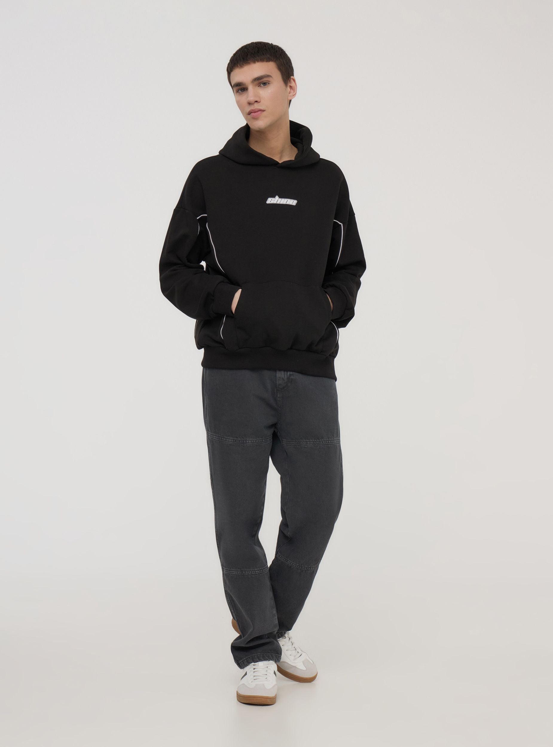 Mëngë të gjata të lehta për burra, pa zip, me kapuç dhe xhep marsupi për një komoditet optimal. Dizajni boxy fit i jep një pamje të relaksuar, e pasuruar me detaje piping dhe shkronja në stil urban në pjesën e përparme. E përsosur për një veshje streetwear, përshtatet lehtësisht me xhinse ose joggers, ideale për kohën e lirë dhe rastet informale me një prekje karakteri.Detajet