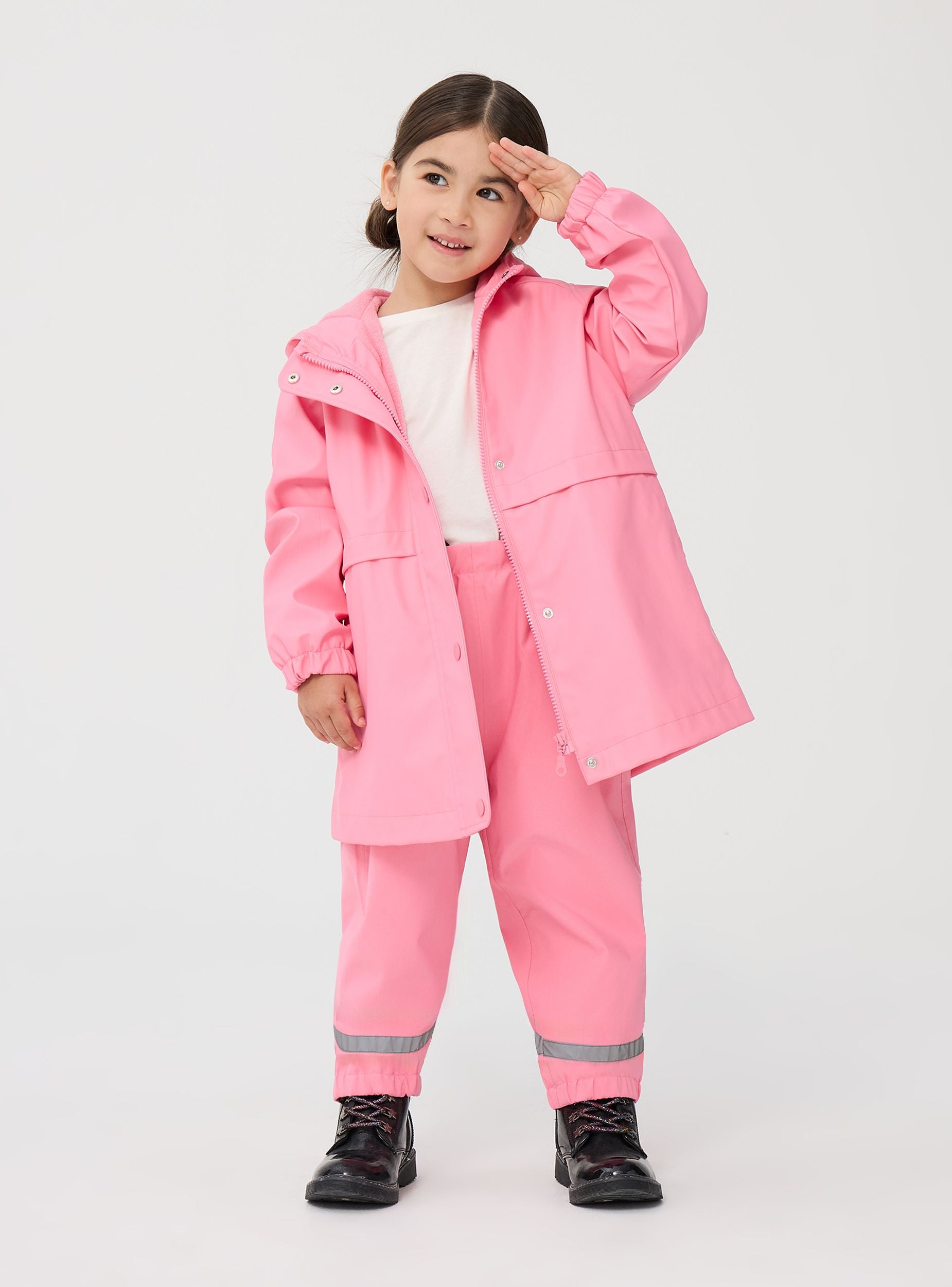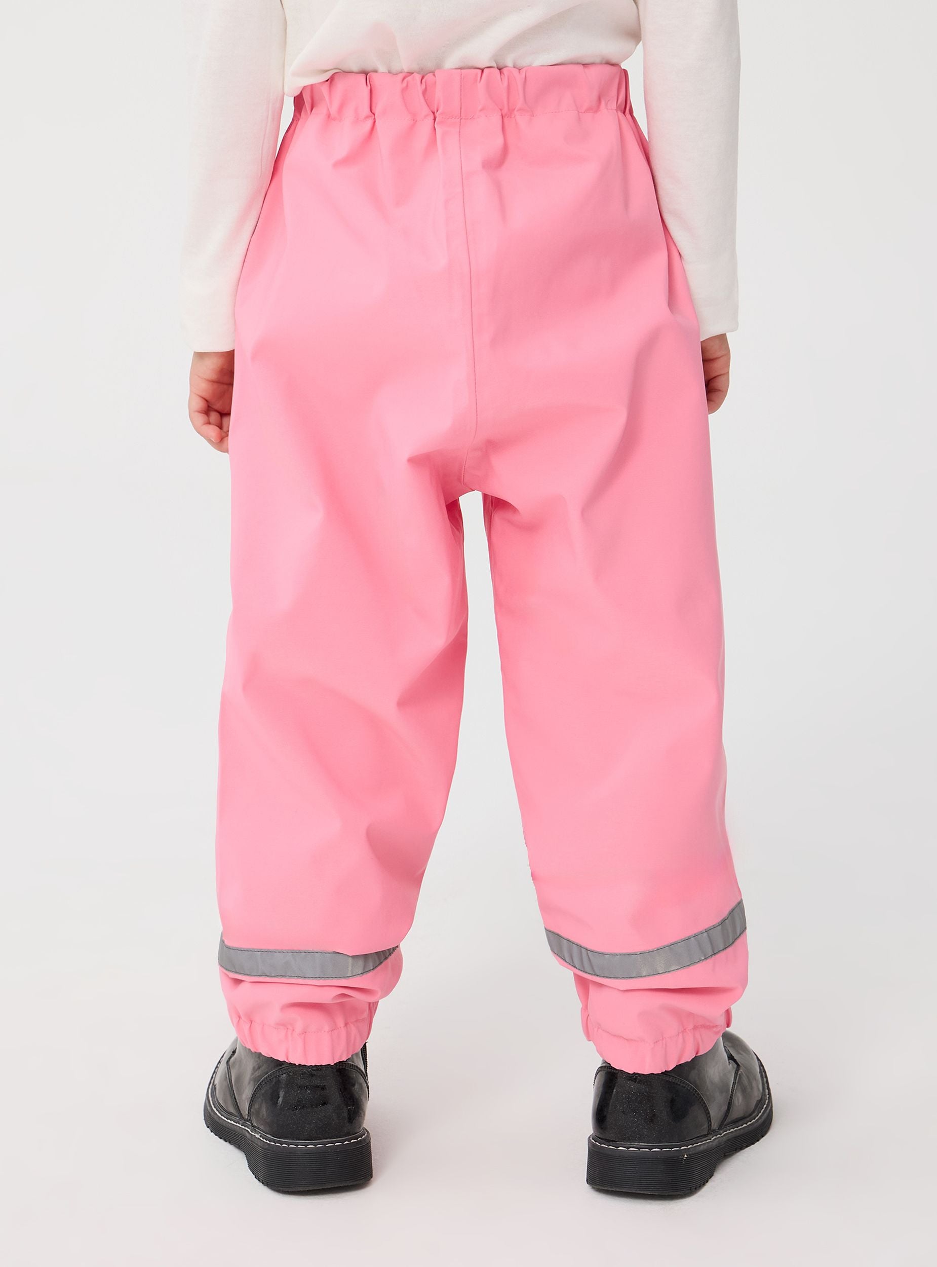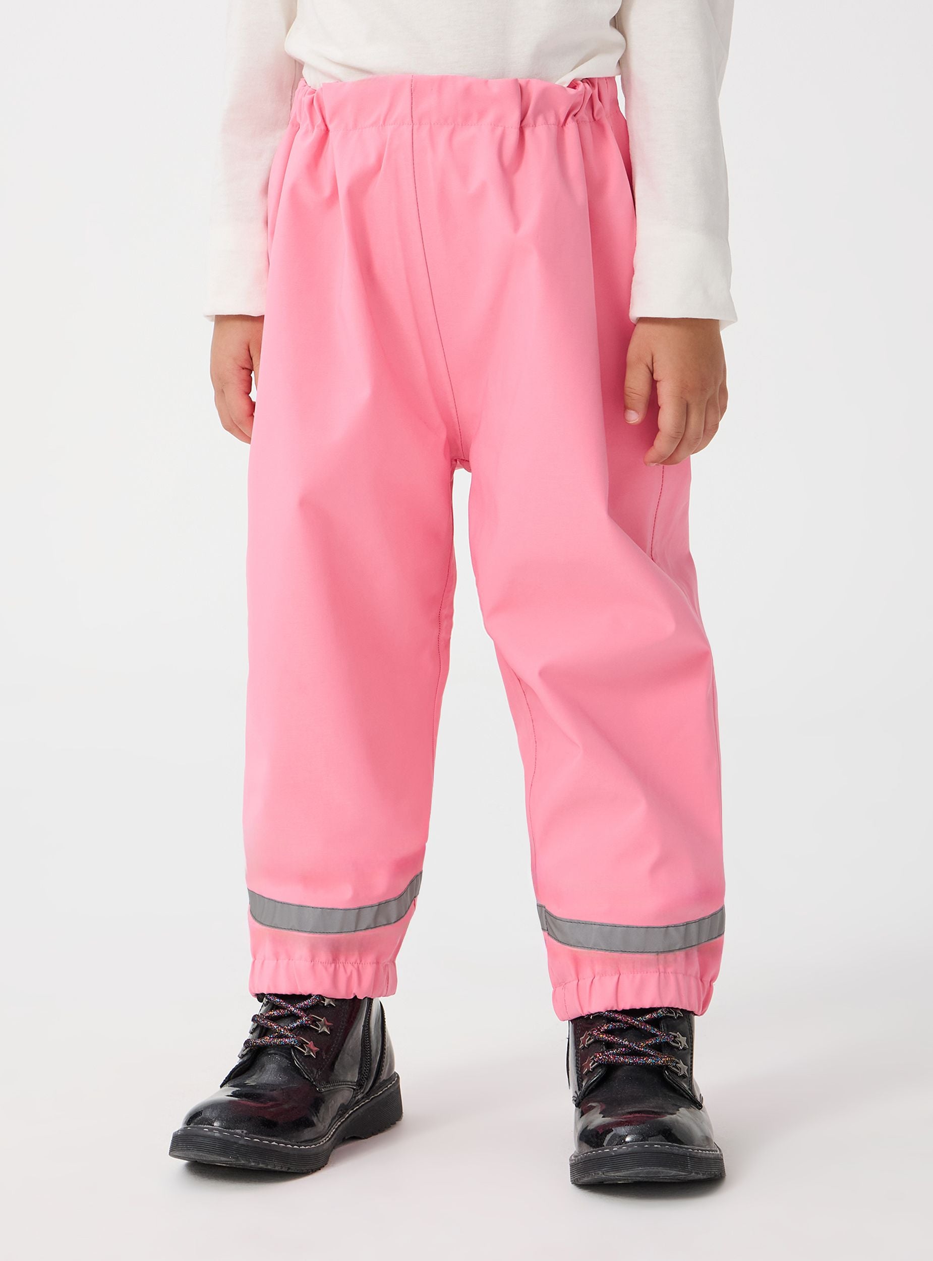 Pantallona impermeabile për vajza, ideale për të mbrojtur nga shiu dhe era. Bandat reflektuese rrisin dukshmërinë në kushte të ndriçimit të dobët, duke ofruar siguri më të madhe. Përshtatja e gjerë dhe elastiku në bel sigurojnë një komoditet optimal. Të realizuara në stof impermeabil, ato sigurojnë që uji të mos depërtojë, duke e mbajtur vajzën të thatë dhe të mbrojtur. Fundet e këmbëve janë elastike dhe kanë një elastik shtesë për t'u vendosur nën këmbët që ndihmon në mbajtjen e pantallonave fort në vend, duke parandaluar që të ngjiten dhe duke mbrojtur më mirë nga moti i keq. Të përsosura për aktivitetet në natyrë, këto pantallona kombinojnë funksionalitetin dhe komoditetin, duke i bërë ato një shtesë të domosdoshme në gardërobën dimërore.Detajet