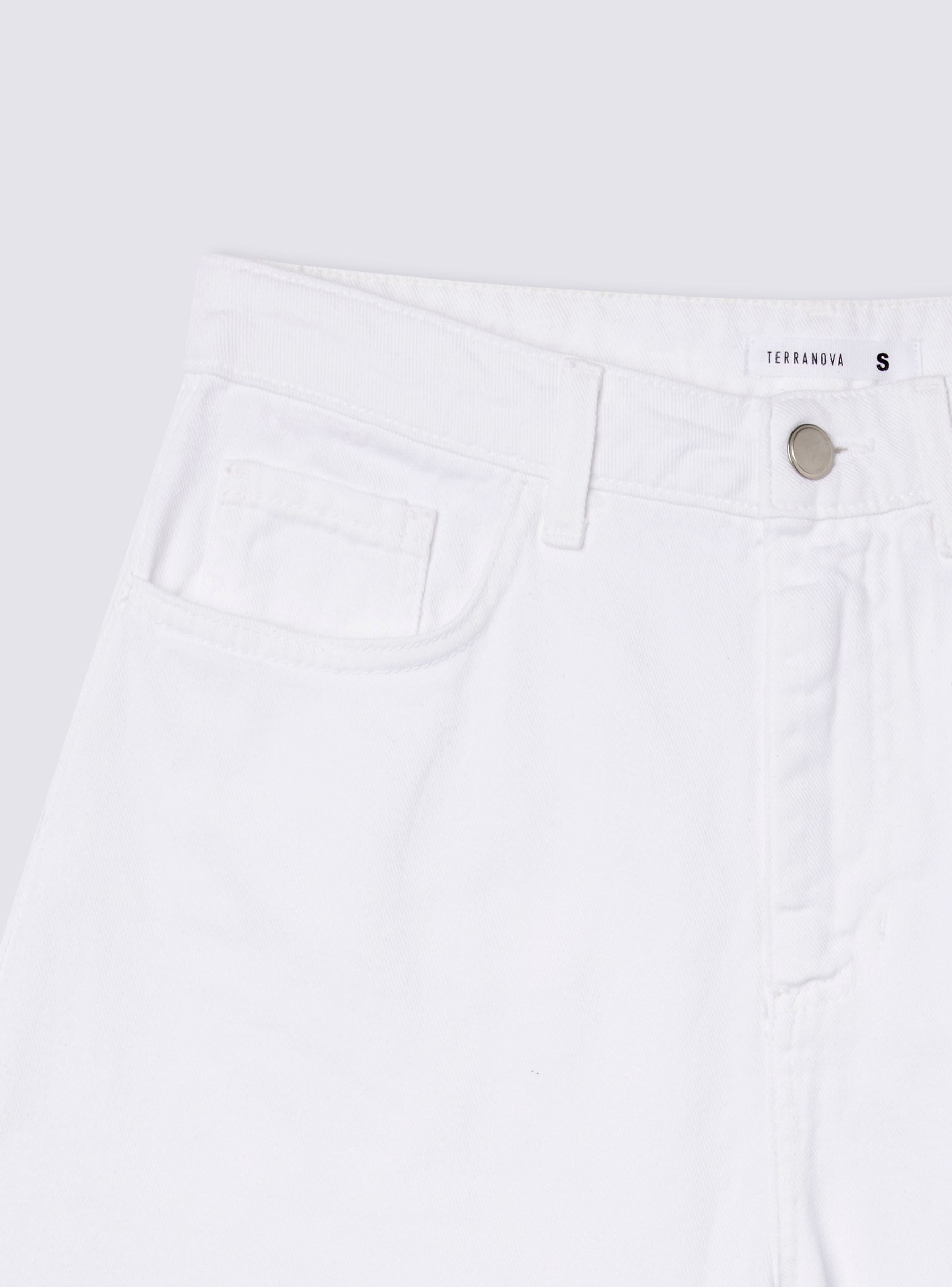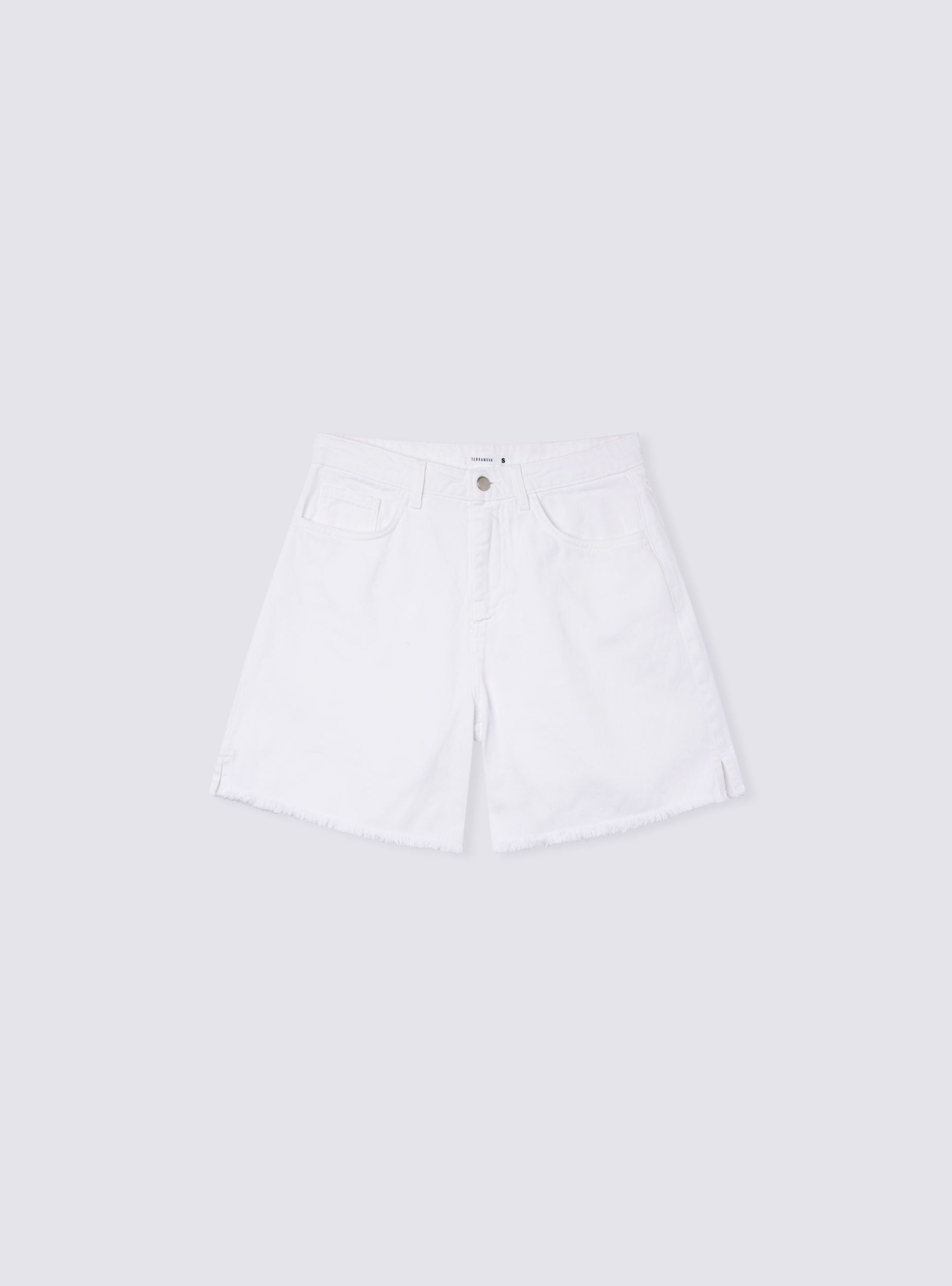 Pantalona të shkurtra për gra në stil xhins, ideale për një pamje casual dhe të shumëanshme. Kanë një mbyllje me buton dhe zinxhir, xhepa në pjesën e përparme dhe të pasme për praktikë dhe çarje anësore që shtojnë një prekje stili. Të përshtatshme për kombinime me bluzë dhe sandale për ditët e verës ose me triko të lehta për një pamje më sportive.Detajet