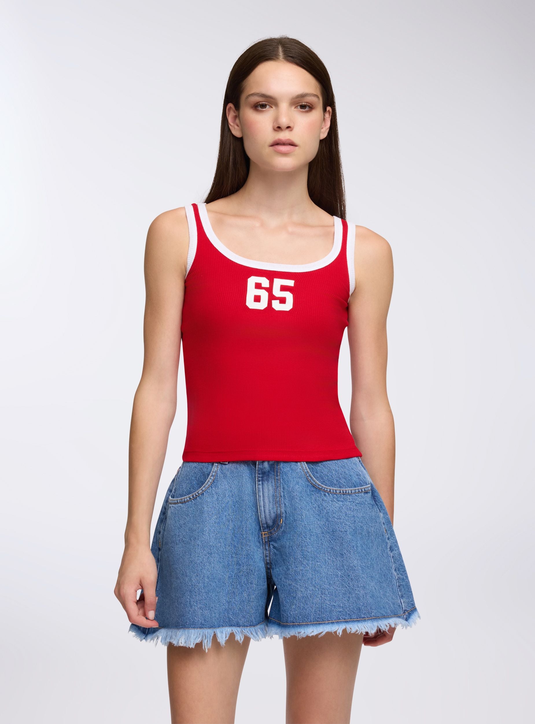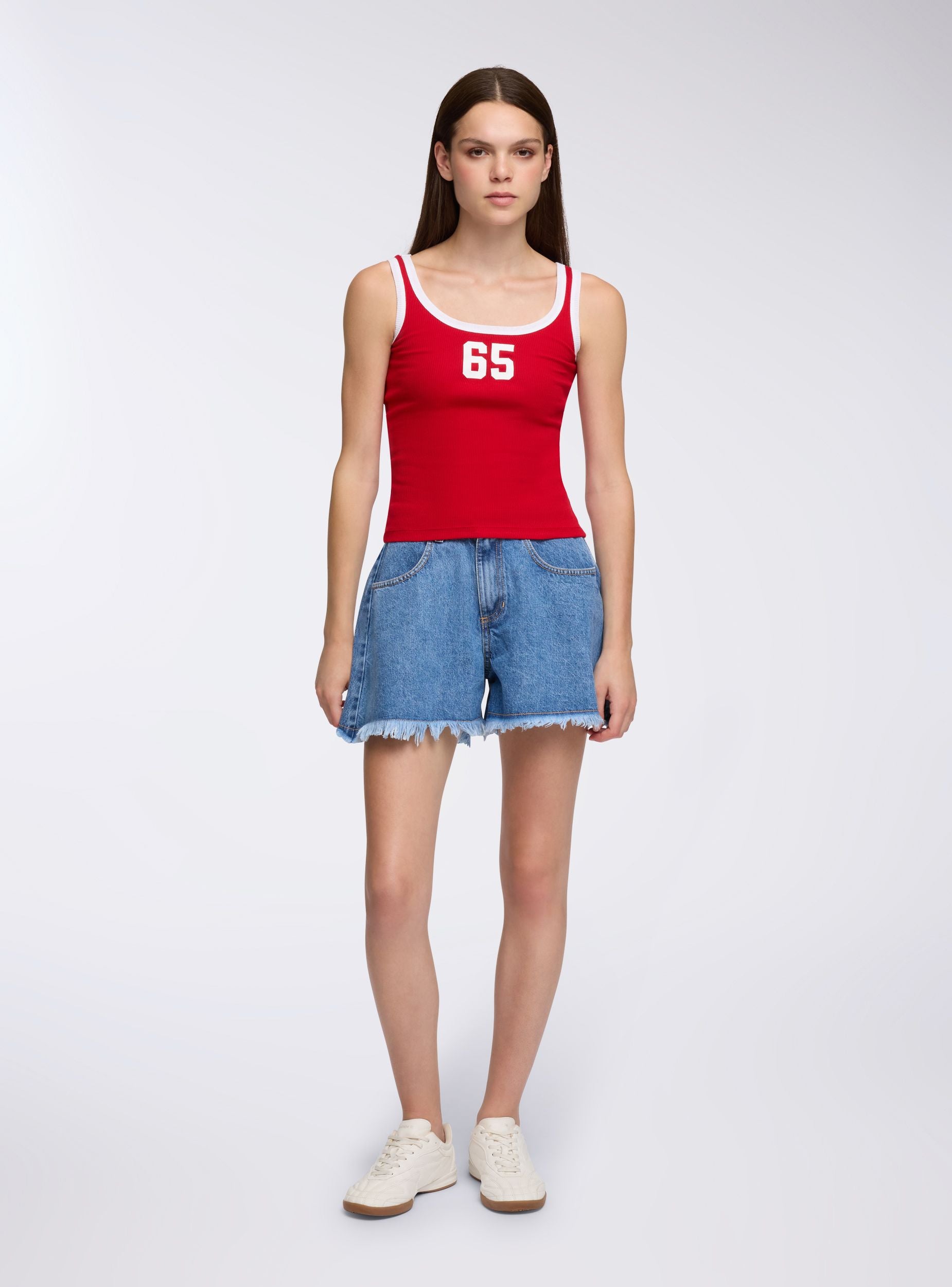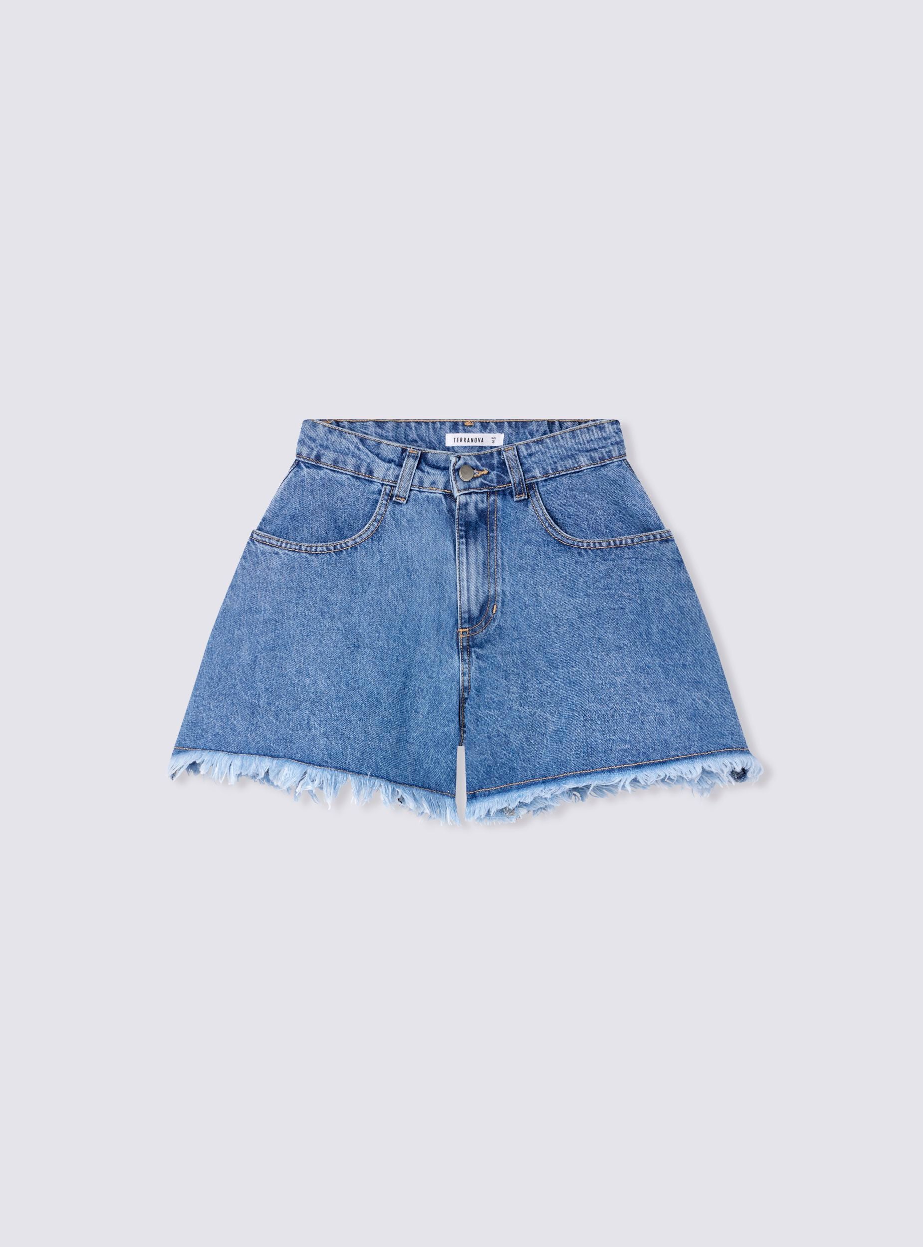 Pantallona të shkurtra për gra nga denim, ideale për një stil casual dhe të shumëanshëm. Kanë një bel mesatar dhe një mbyllje me buton dhe zinxhir, duke siguruar rehati dhe praktikë. Dizajni përfshin xhepa në pjesën e përparme dhe të pasme, të përshtatshme për të mbajtur sende të vogla. Fundi me franja shton një prekje origjinaliteti, duke i bërë të përshtatshëm për kombinime me bluzë dhe sandale për ditët e verës.Detajet