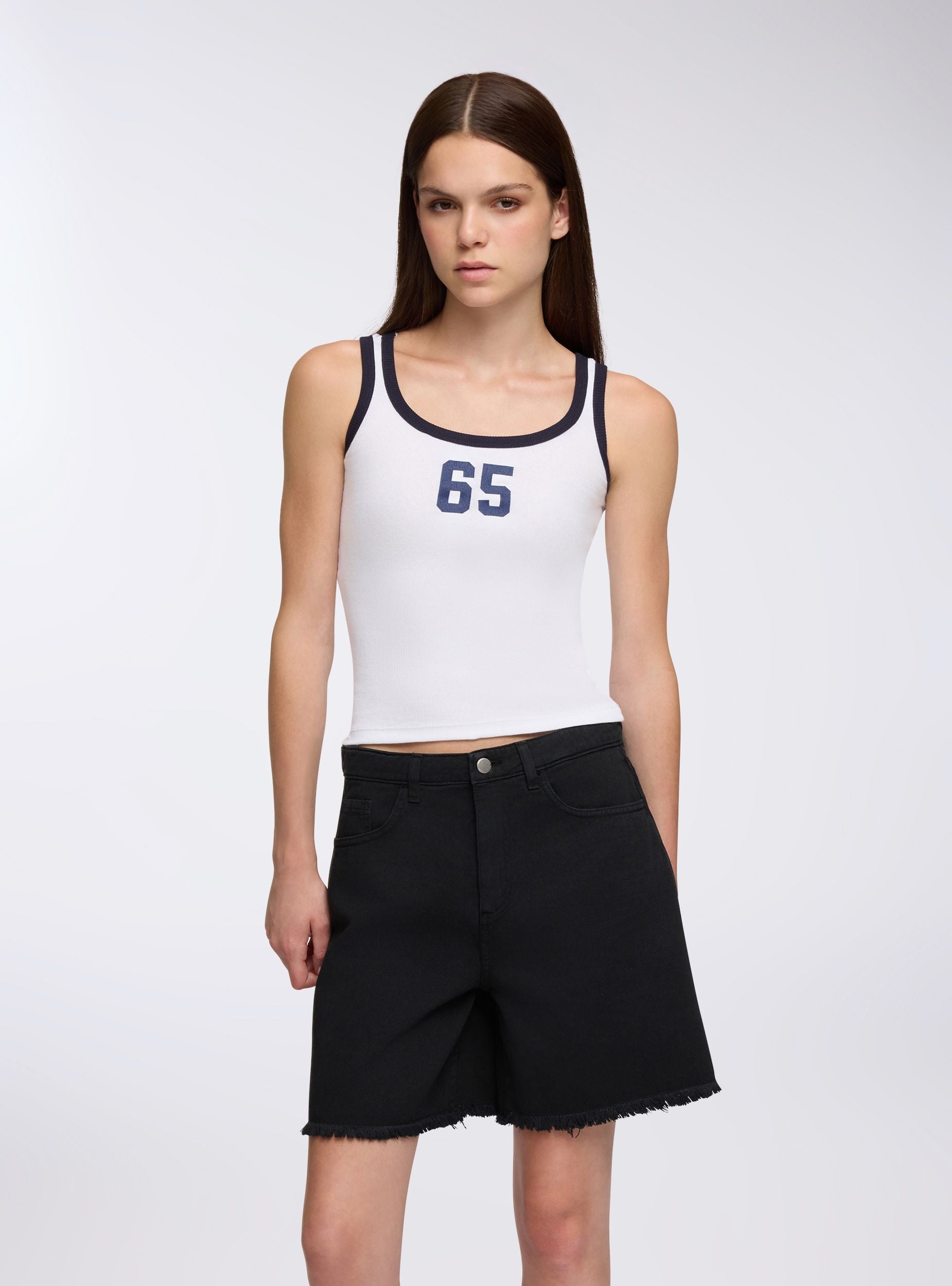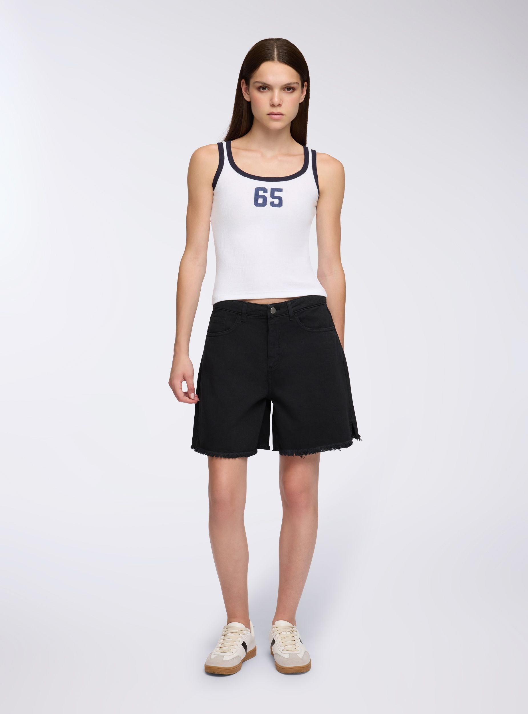 Pantallona të shkurtra për femra në stil xhinsi, ideale për një pamje casual dhe të shumëanshme. Kanë mbyllje me buton dhe zinxhir, xhepa në pjesën e përparme dhe të pasme për praktikë dhe çarje anësore që shtojnë një prekje stili. Të përshtatshme për kombinime me bluzë dhe sandale për ditët e verës ose me bluzë të lehtë për një pamje më sportive.Detajet