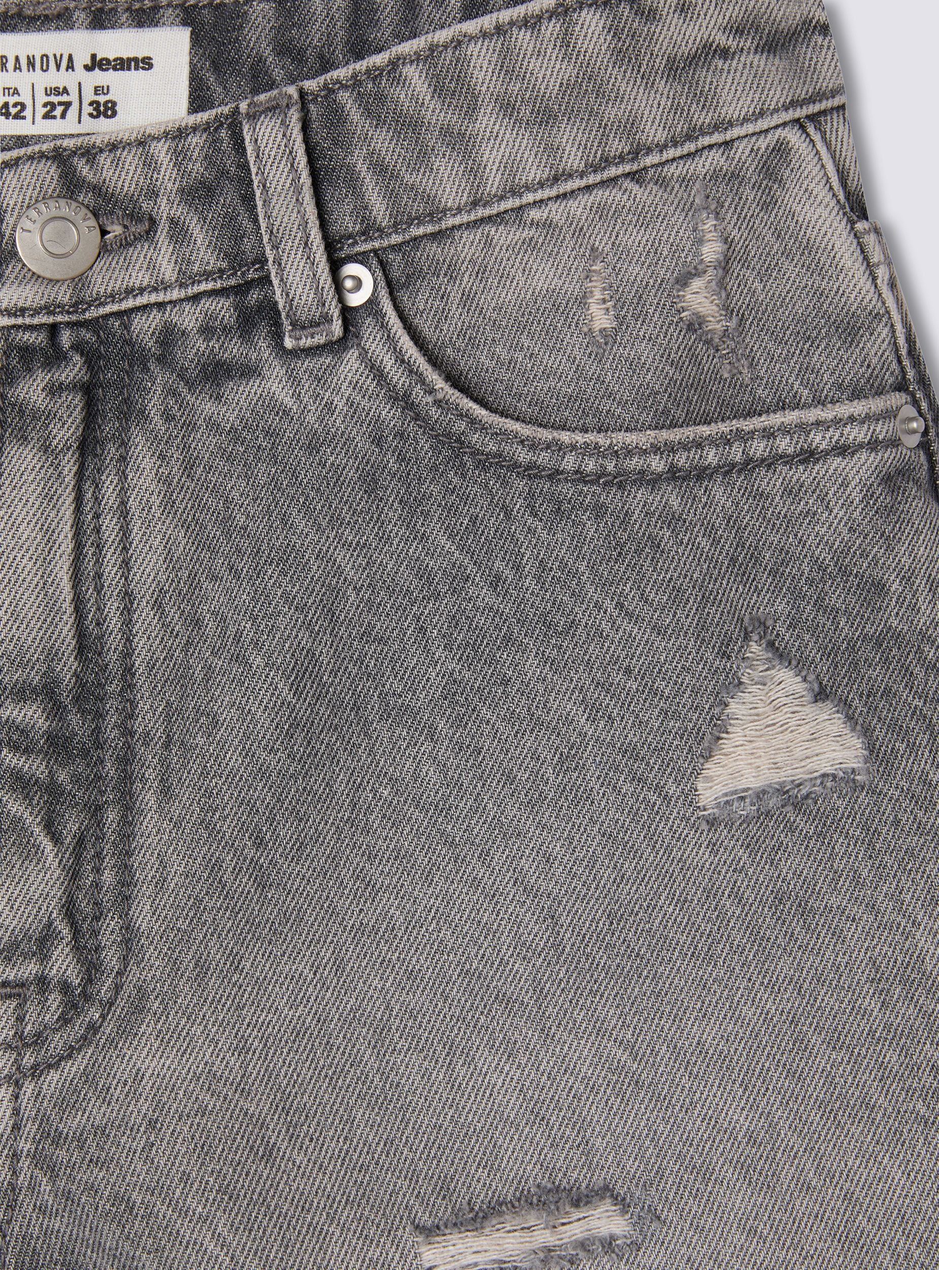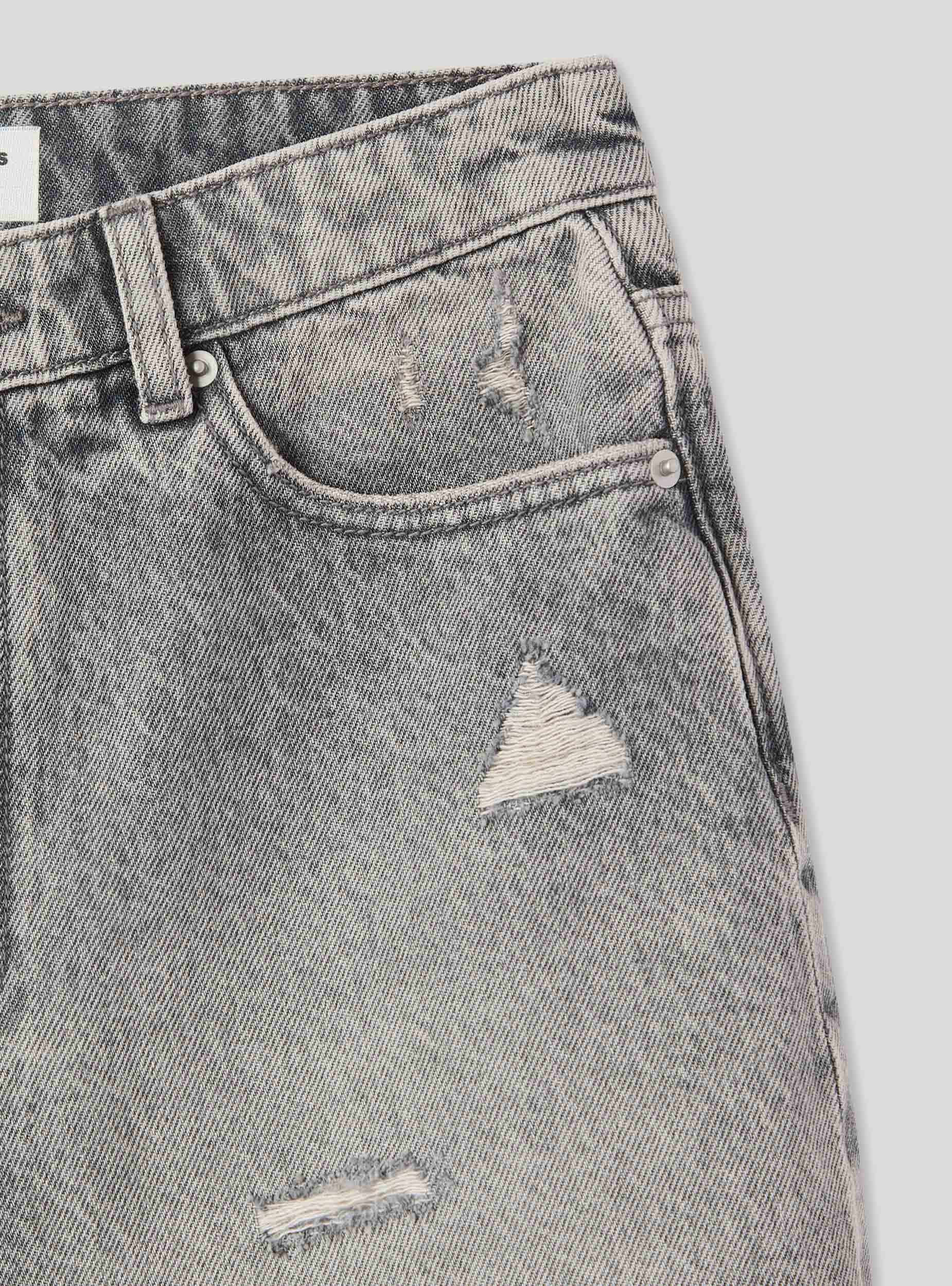 Shkurtër pantallona për gra në stilin mom, të karakterizuara nga një larje denim gri që ofron një pamje bashkëkohore dhe të shumëanshme. Mbyllja me buton dhe zip siguron një përshtatje komode, ndërsa rripat në bel lejojnë personalizimin e veshjes me një brez. Modeli me pesë xhepa garanton praktikë, i pasuruar me çarje të vogla dhe një fund të çarë për një prekje të guximshme. Të përsosur me një t-shirt dhe sneakers për një pamje të rastësishme, ose me një këmishë dhe çizme për një veshje më të rafinuar dhe në modë.Detajet
