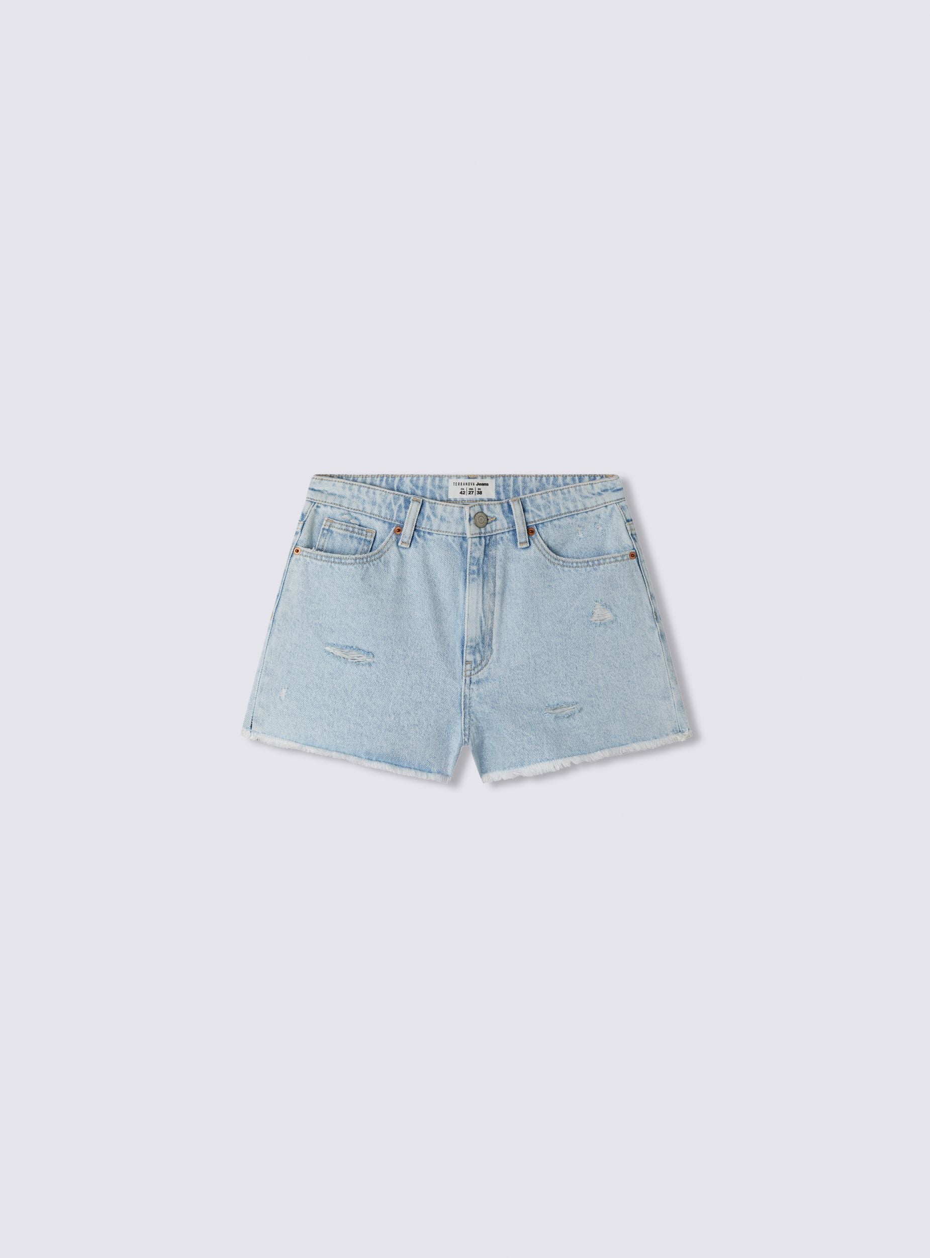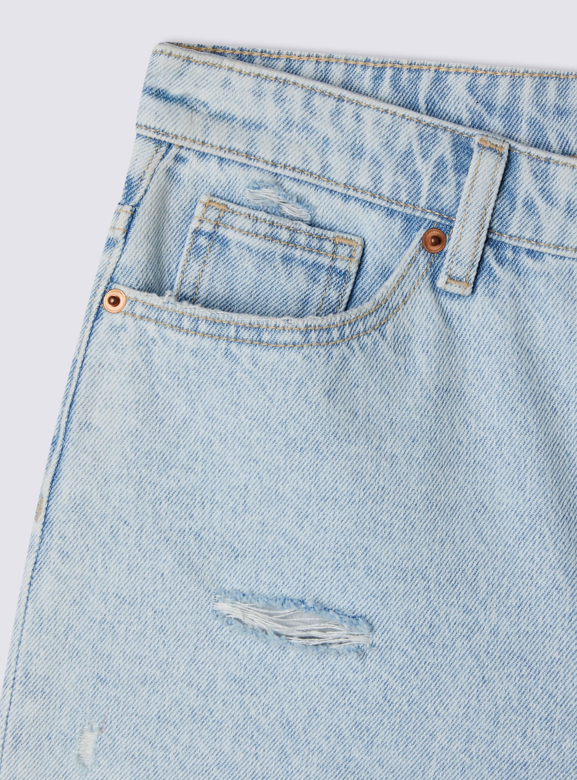 Pantallona të shkurtra për gra në stilin mom, me larje denim të lehtë, perfekte për një pamje freskët dhe në modë. Mbyllja me buton dhe zinxhir garanton një përshtatje komode, ndërsa rripat në bel lejojnë shtimin e një brez për një prekje personale. Modeli me pesë xhepa ofron praktikë, ndërsa të voglat grimca dhe fundi i çarë japin një efekt të vjetër dhe modern. Ideale me një t-shirt dhe sneakers për një veshje të rastësishme, ose me një top të ngushtë dhe sandale për një pamje më femërore dhe në modë.Detajet