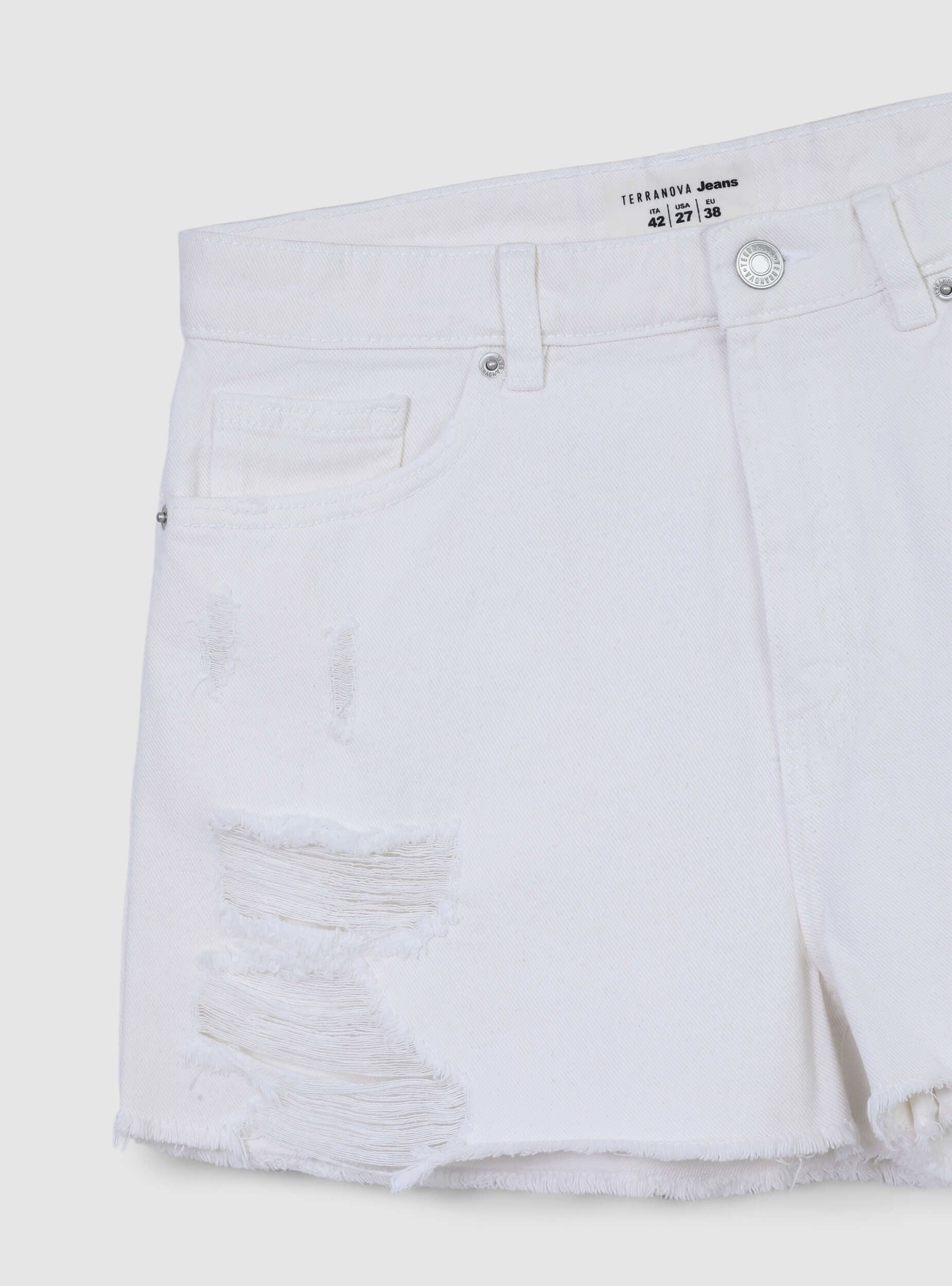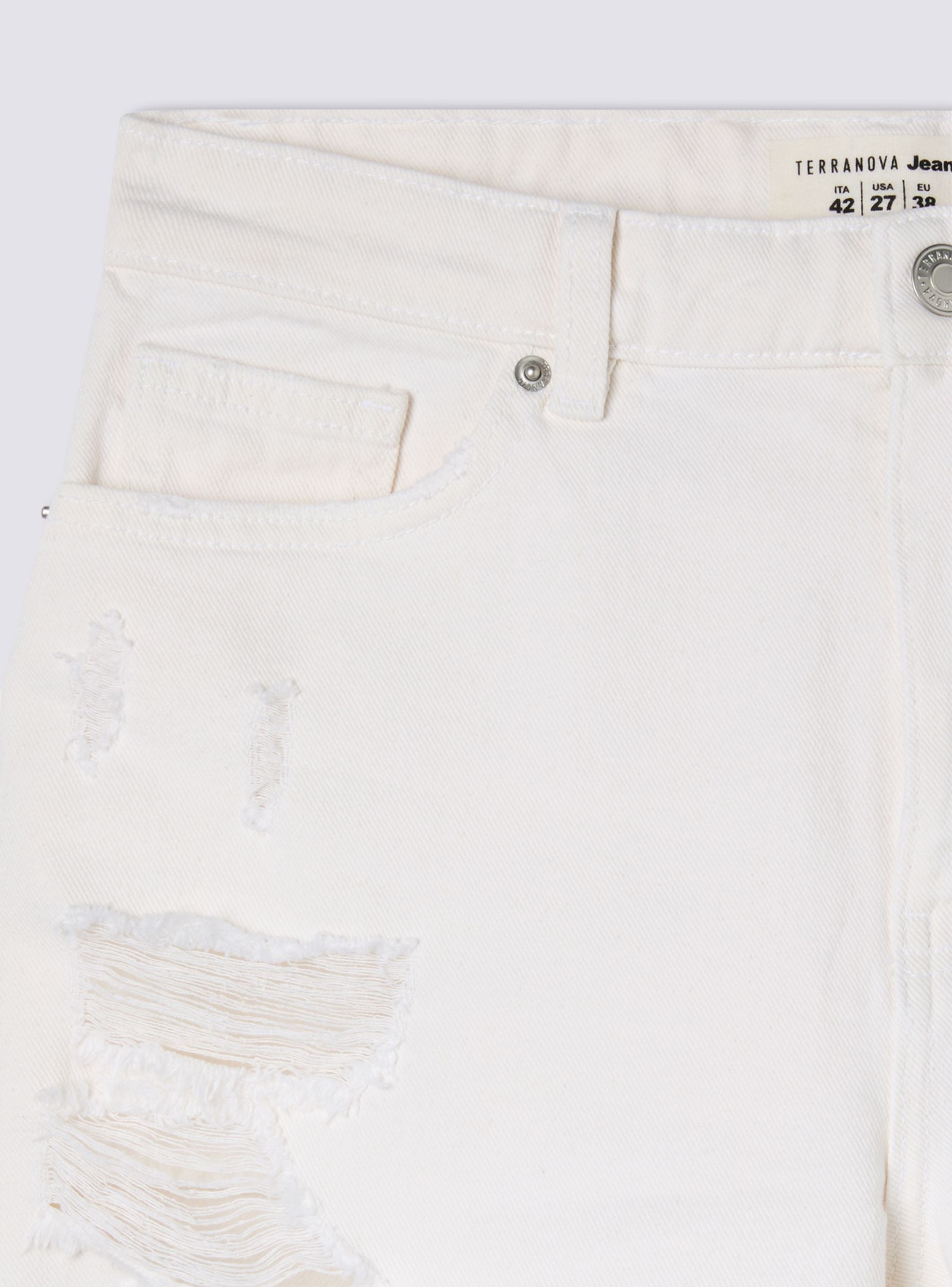 Pantalonat e shkurtra për gra nga xhinsi me larje të bardhë denim, të karakterizuara nga një dizajn mom fit që thekson belin dhe vlerëson siluetën. Modeli ka një mbyllje me zinxhir dhe buton, pesë xhepa funksionalë dhe bel të hapur për të shtuar një brez. Detajet me çarje të gjera dhe fund të çarë i japin një pamje të guximshme dhe moderne. Perfekte për një outfit veror, ato kombinohen me një top të shkurtër të lidhur dhe ballerina për një përzierje feminiteti dhe karakteri, ideale për kohën e lirë dhe daljet në qytet.Detajet