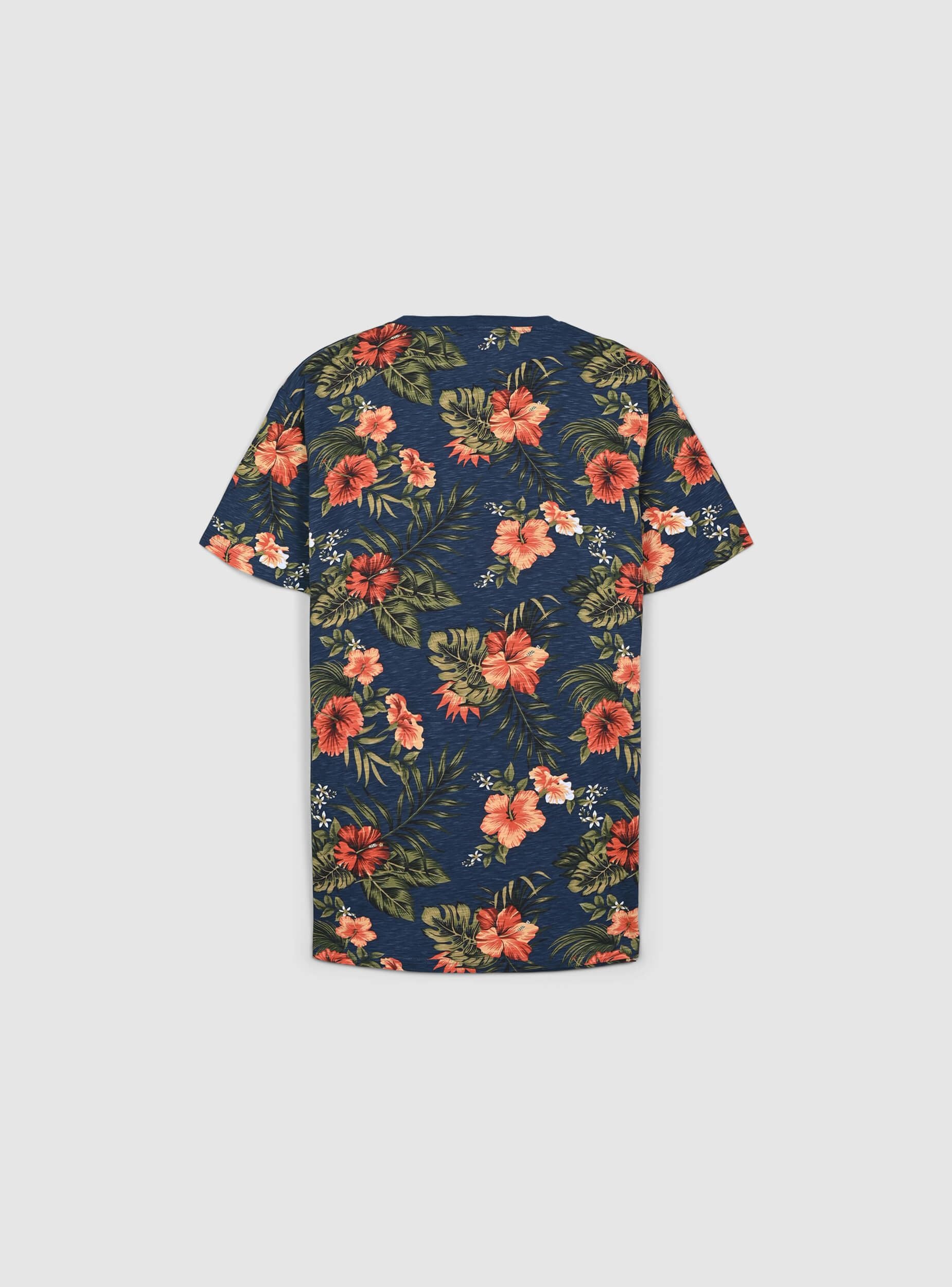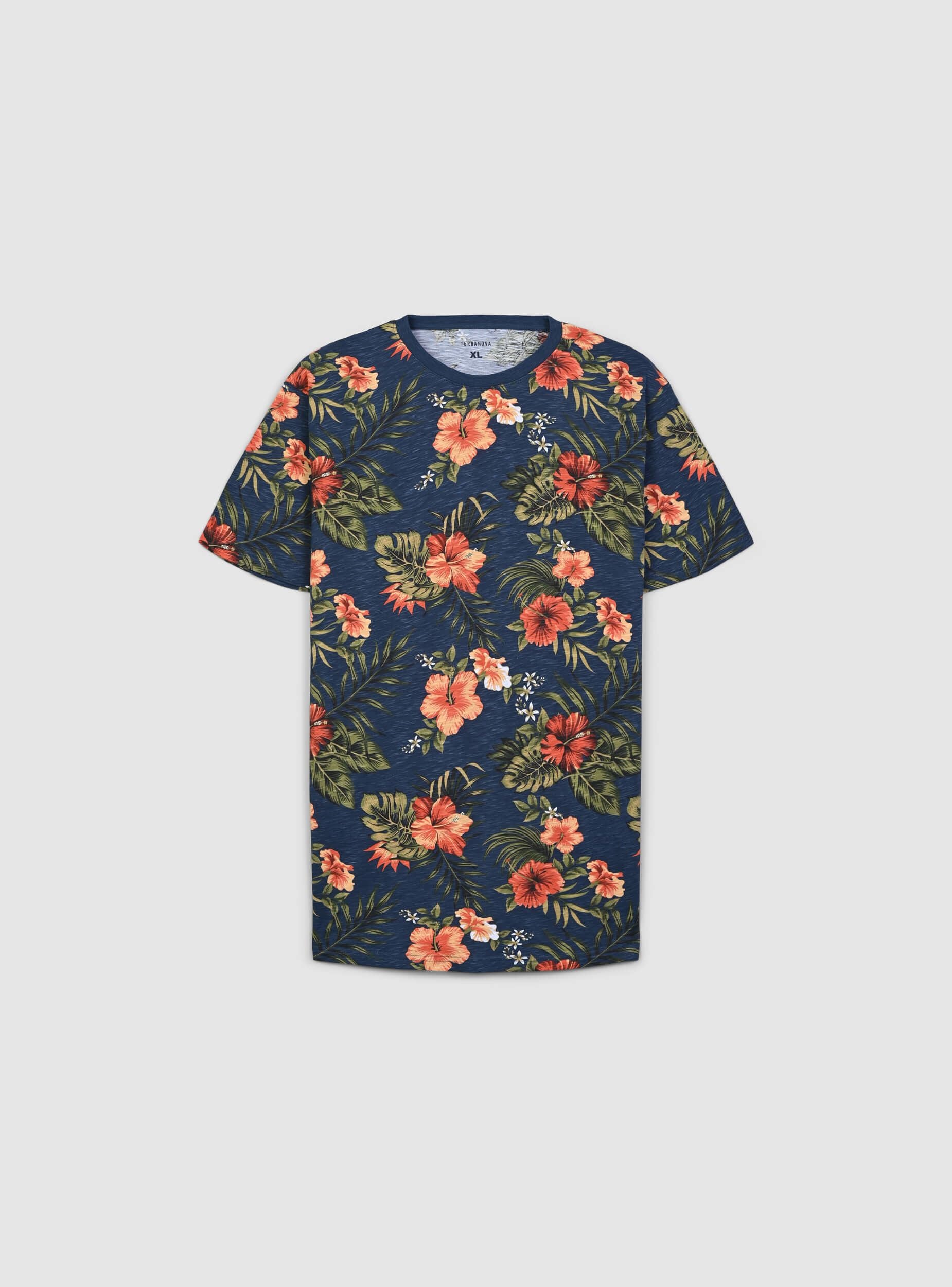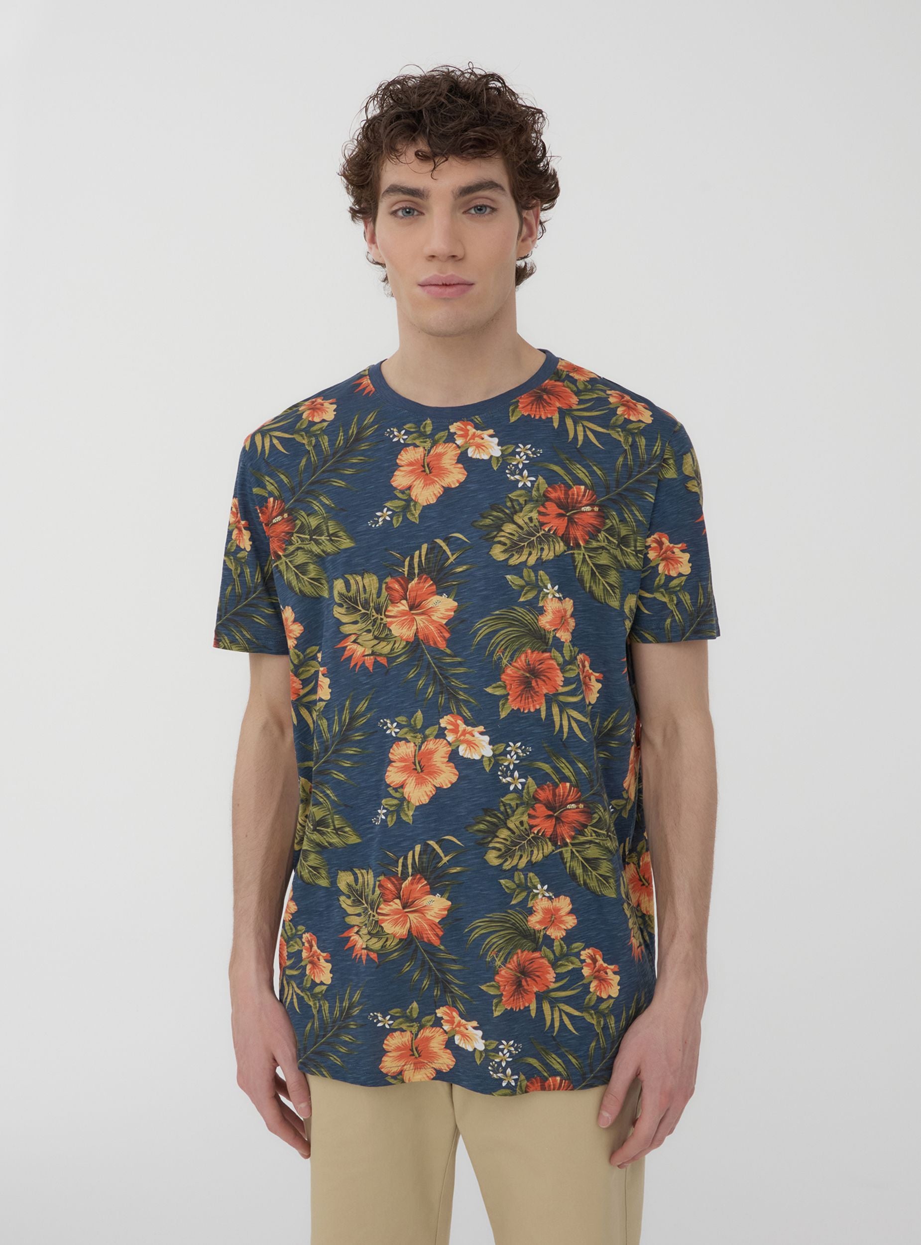T-shirt për burra me mëngë të shkurtra dhe qafë rrethore, e dekoruar me një fantazi të gjallë lulesh me ngjyra që i jep një prekje ekzotike dhe origjinale. E përsosur për verën, ajo kombinohet lehtësisht me bermuda ose xhinse për një pamje të rastësishme dhe të relaksuar, ideale për kohën e lirë, pushime ose mbrëmje informale. Dizajni i freskët dhe i lehtë e bën atë një zgjedhje të shkëlqyer për të shtuar personalitet dhe stil në gardërobën verore.Detajet