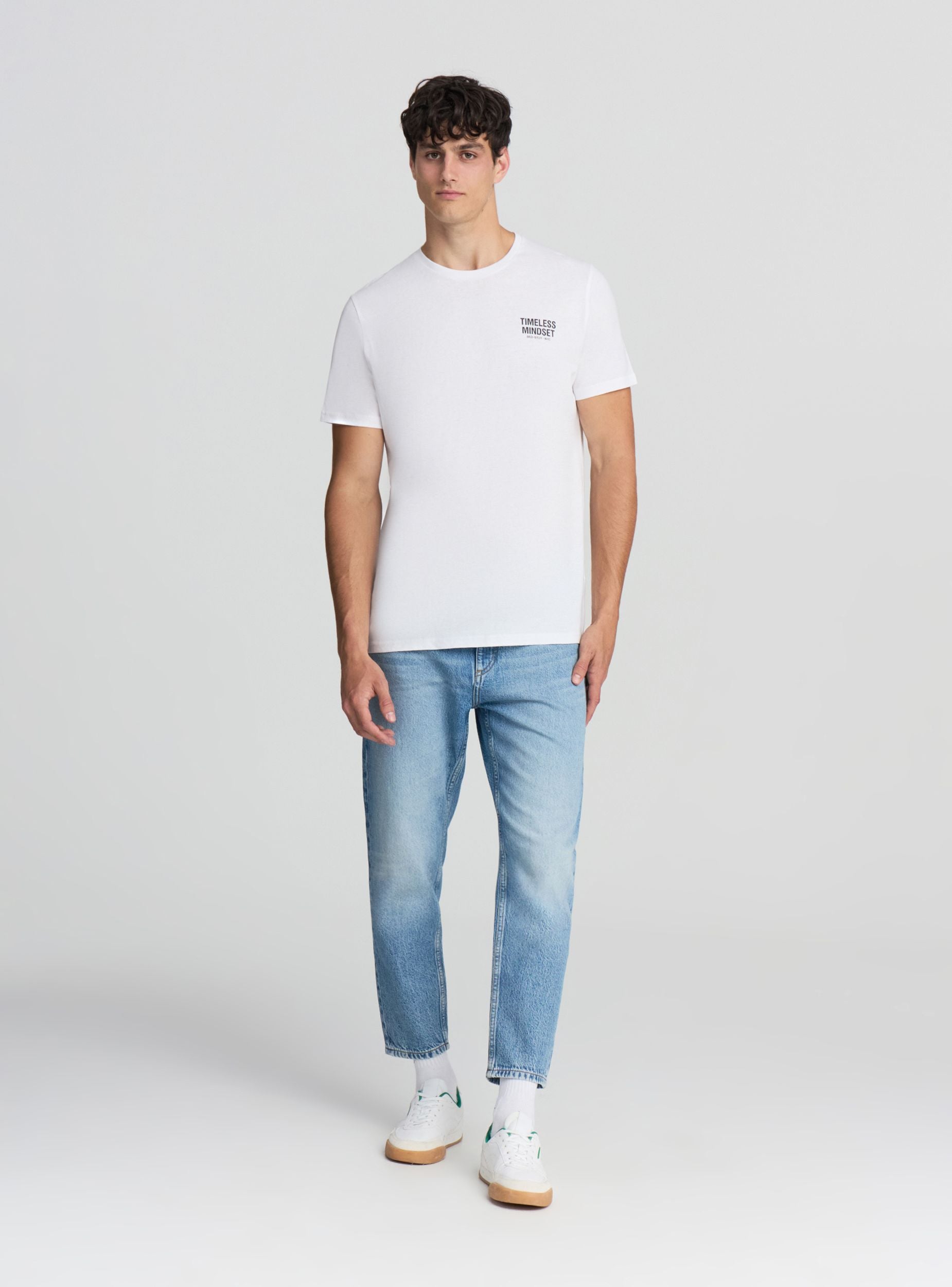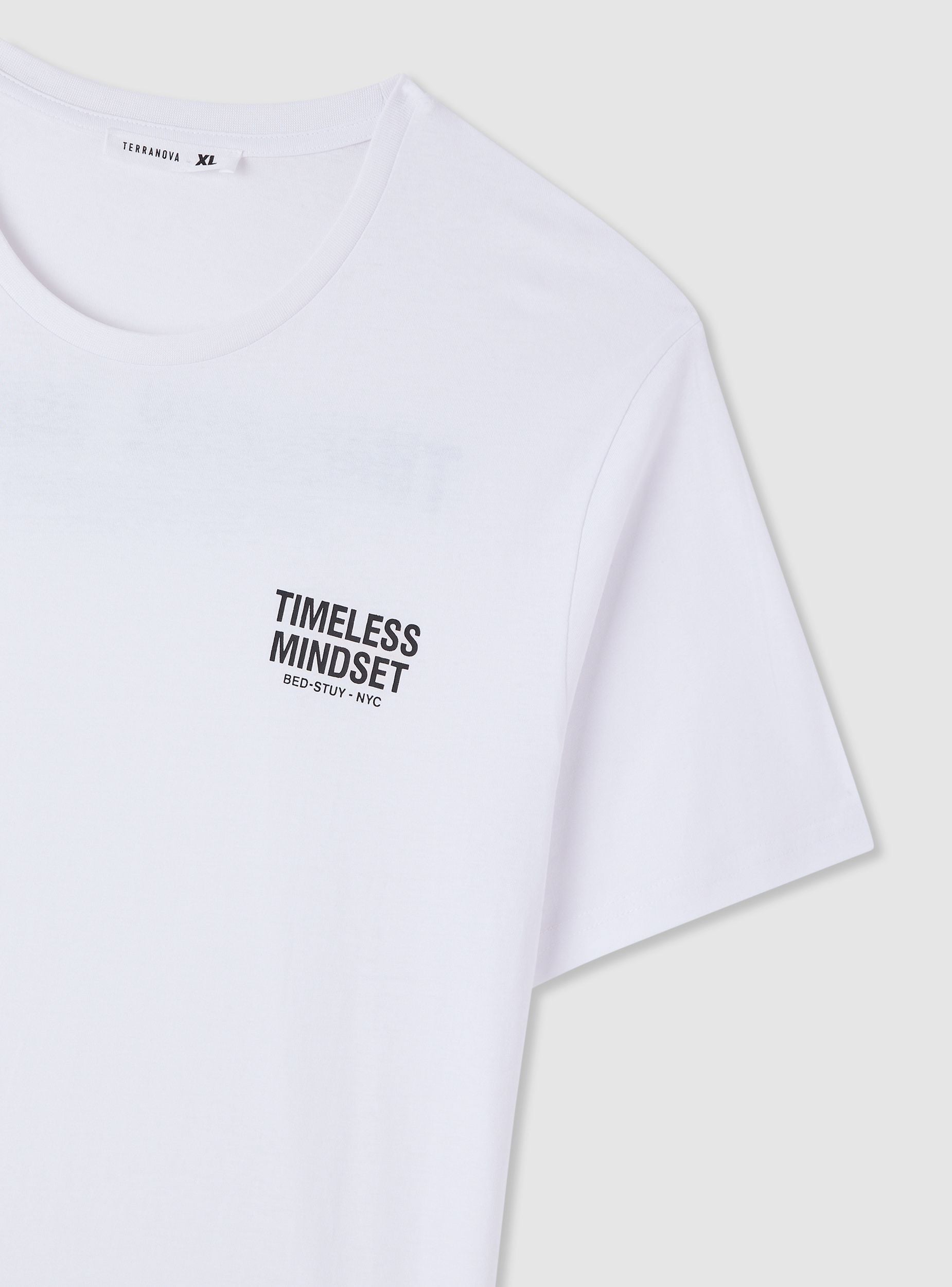 Të gjitha përshkrimi i magjisë për një pamje të rastësishme dhe të shumëanshme. Ka një shkrim të printuar si në pjesën e përparme ashtu edhe në atë të prapme, e përsosur për të shtuar një prekje dalluese në veshjet e përditshme. Prerja e rregullt dhe mëngët e shkurtra e bëjnë të rehatshme për t'u veshur në çdo rast, nga koha e lirë deri te kombinimet me xhinse ose bermuda. Mëngë e rrumbullakët dhe fantazia me shkrim përfundojnë dizajnin.