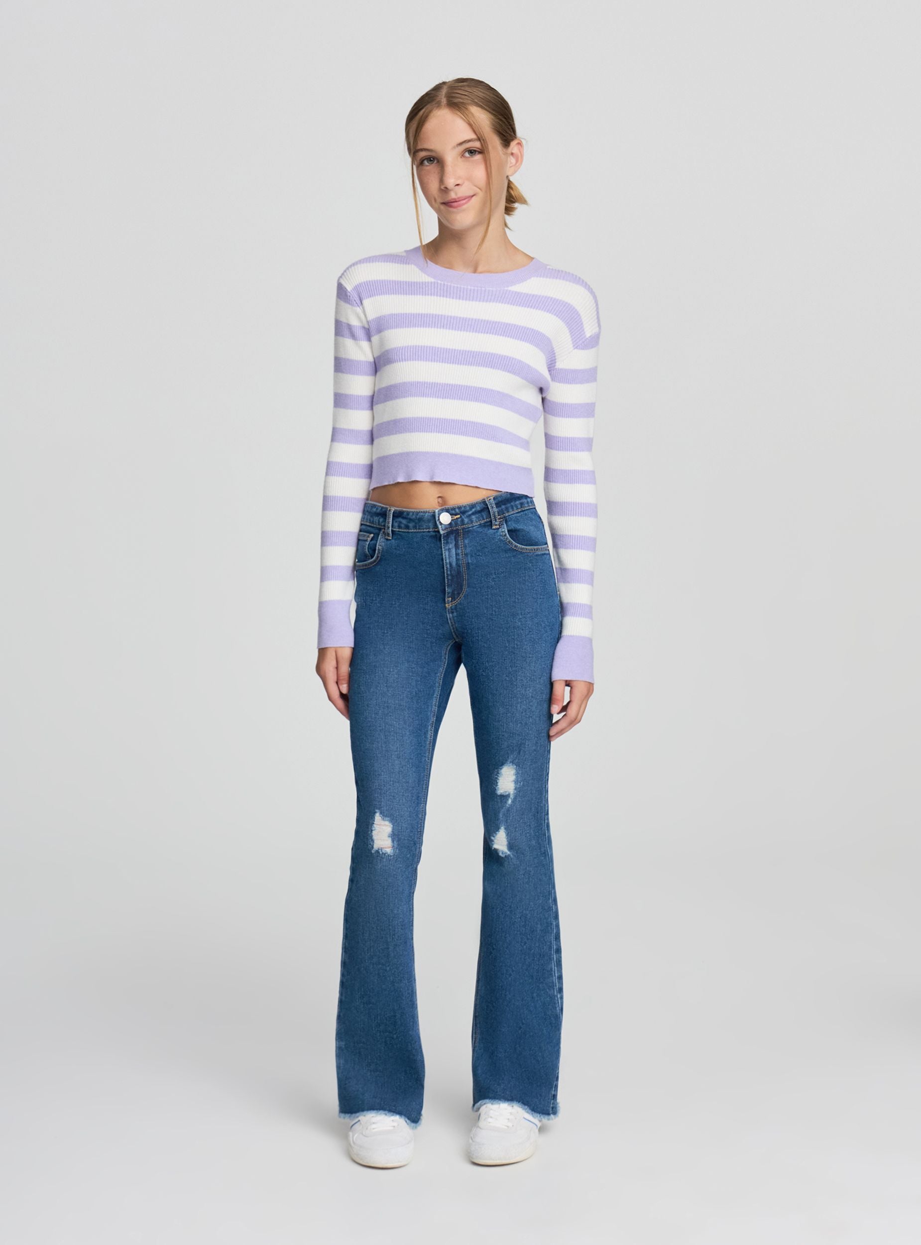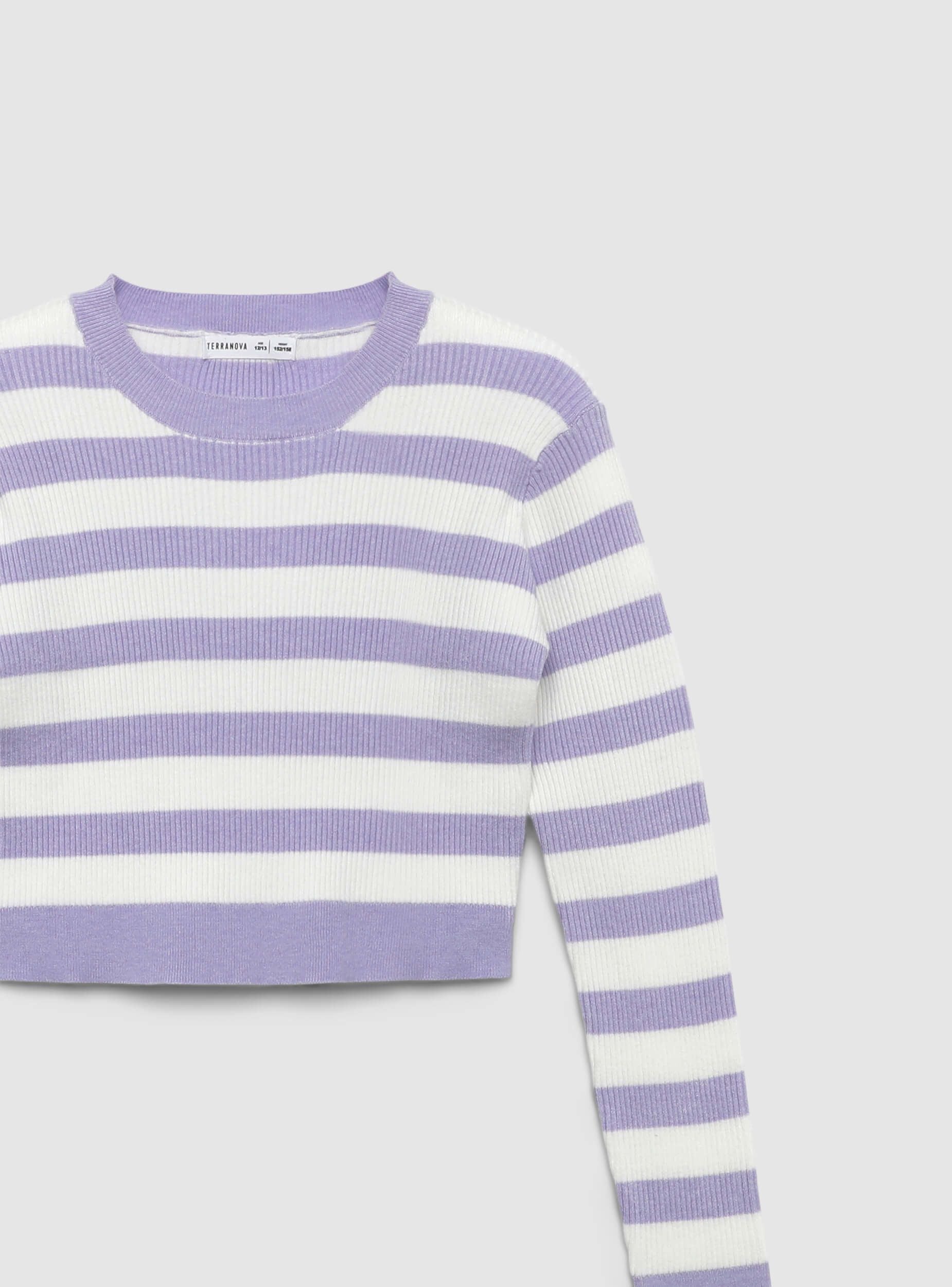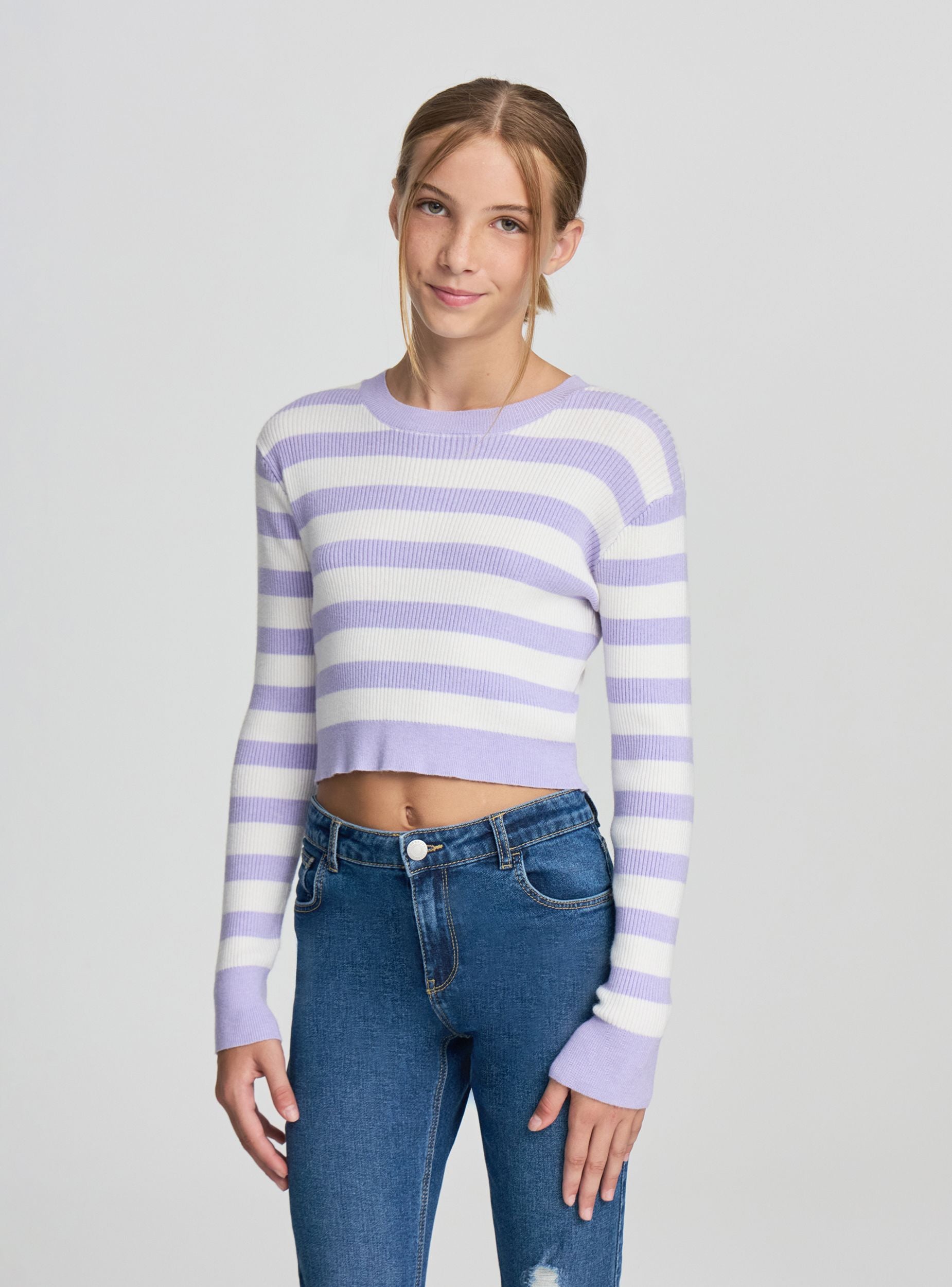 Majica za devojčice sa dugim rukavima, savršena za ležerne i svestrane kombinacije. Kroj koji seče naglašava moderne outfite, idealna za kombinovanje sa farmerkama ili suknjama visokog struka. Okrugli izrez i rebrasta obrada pružaju udobnost i prilagodljivost. Šara na prugice dodaje dinamičan dodir, čineći ovu majicu pogodnom kako za školu, tako i za slobodno vreme.Detalji