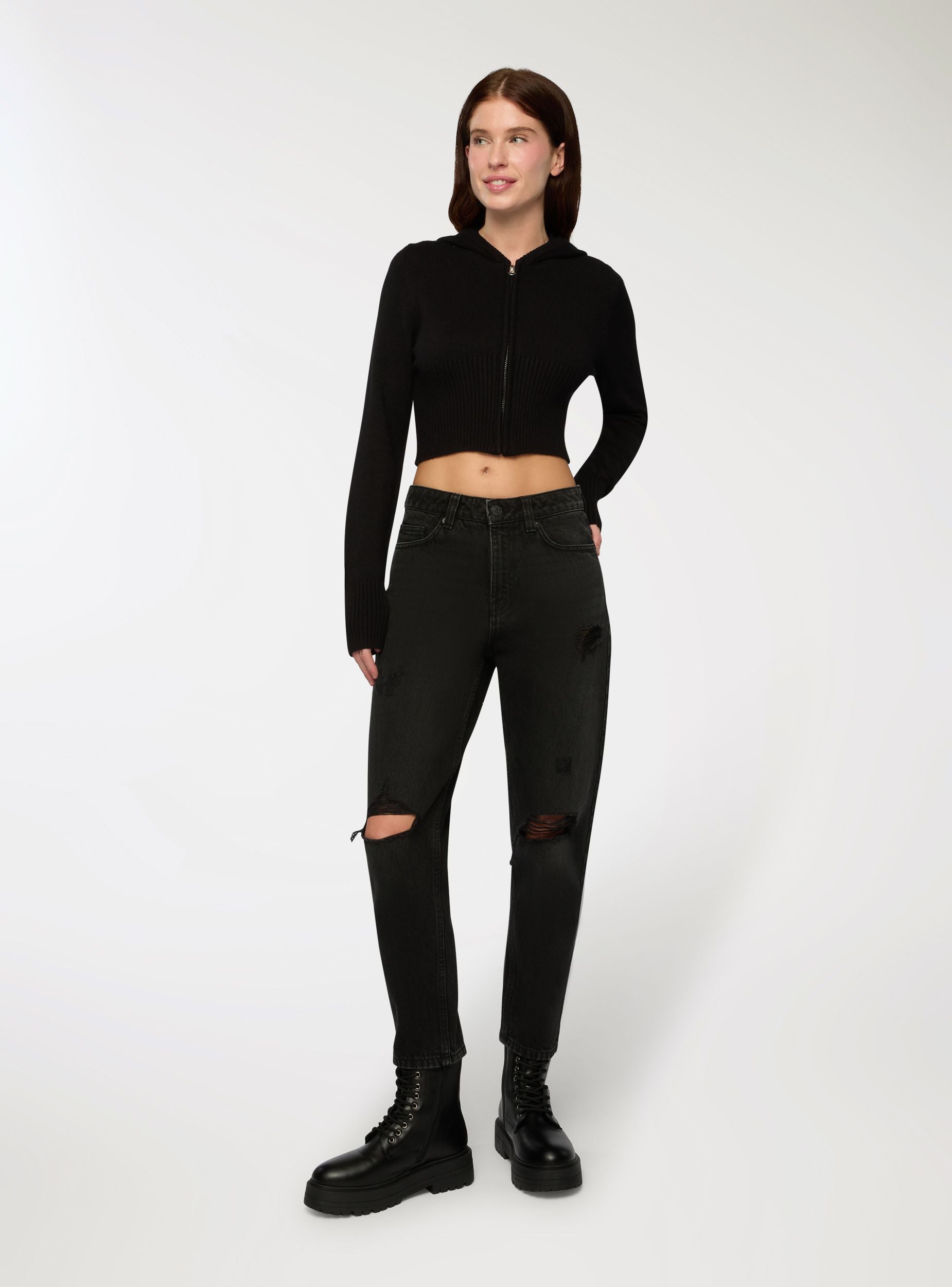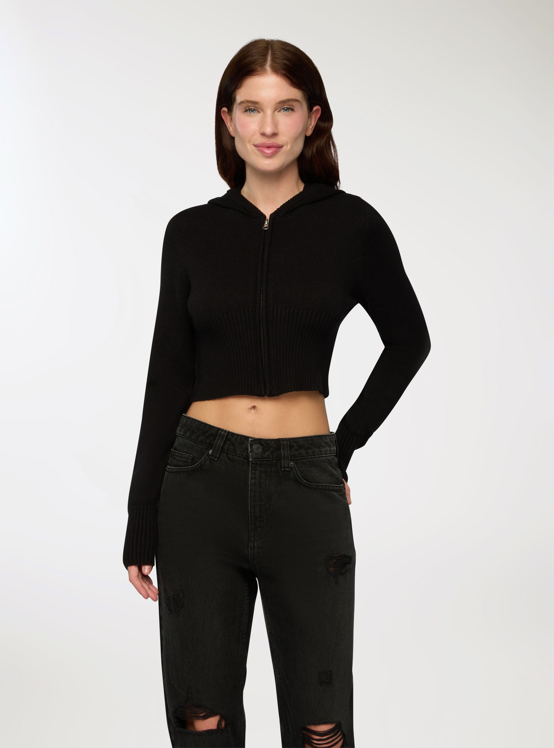 Ženska crop majica sa kapuljačom i rajsferšlusom. Ovaj ležerni komad se izdvaja po kratkom i pripijenom dizajnu, idealnom za moderne i dinamične kombinacije. Prednji rajsferšlus dodaje praktičnost i stil, dok kapuljača pruža sportski šmek. Savršena za kombinovanje sa farmerkama ili trenerkama, ova majica je svestrana i pogodna za različite neformalne prilike.Detalji