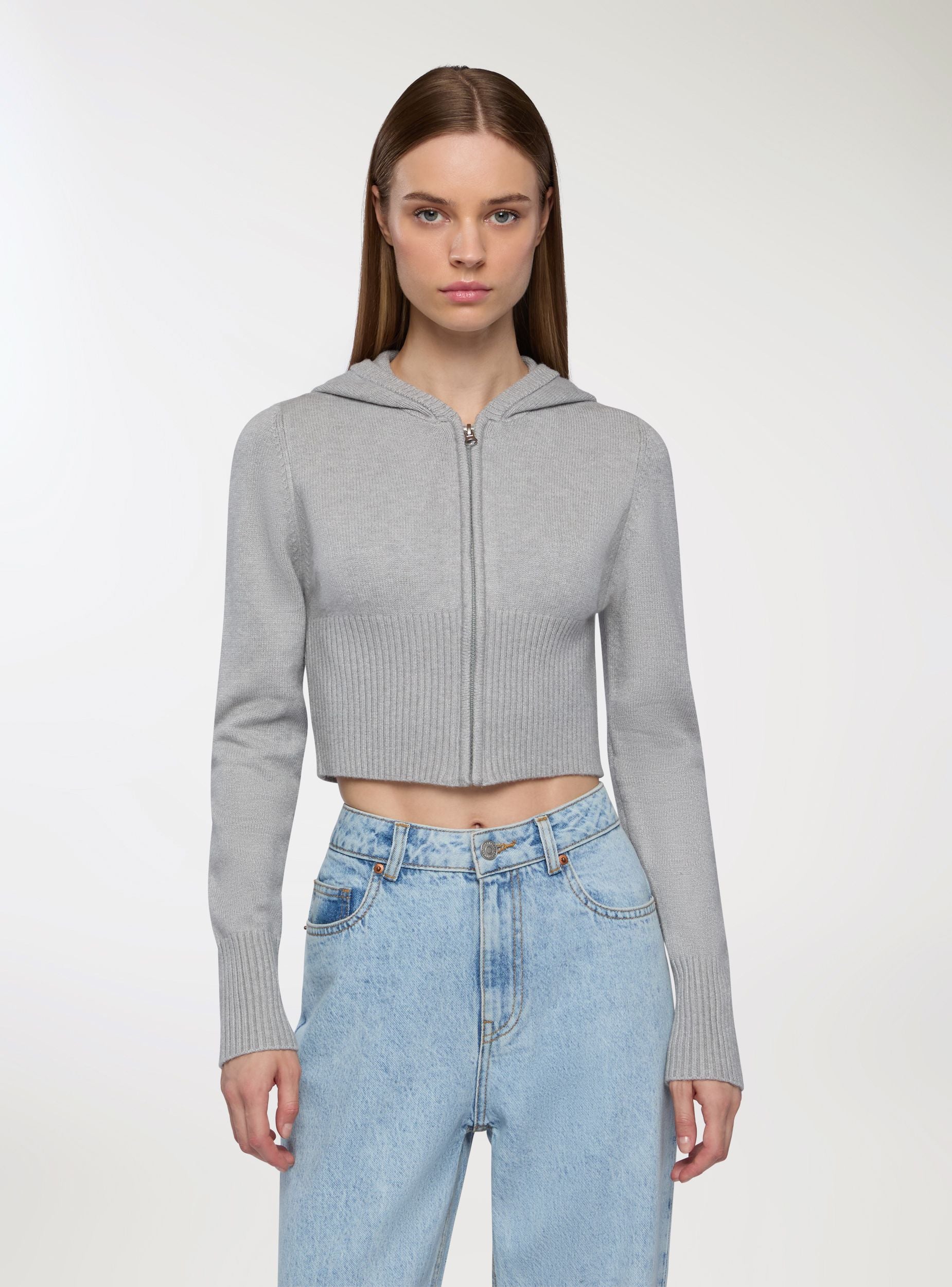 Ženska crop majica sa kapuljačom i rajsferšlusom. Ovaj ležerni komad ističe se kratkim i uskim dizajnom, idealnim za moderne i dinamične outfite. Prednji rajsferšlus dodaje praktičnost i stil, dok kapuljača daje sportski prizvuk. Savršena za kombinovanje sa farmerkama ili trenerkama, ova majica je svestrana i pogodna za različite neformalne prilike.Detalji