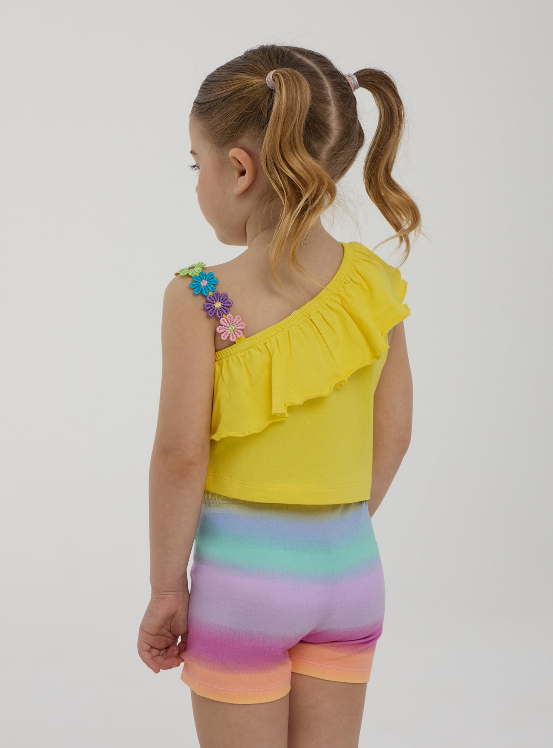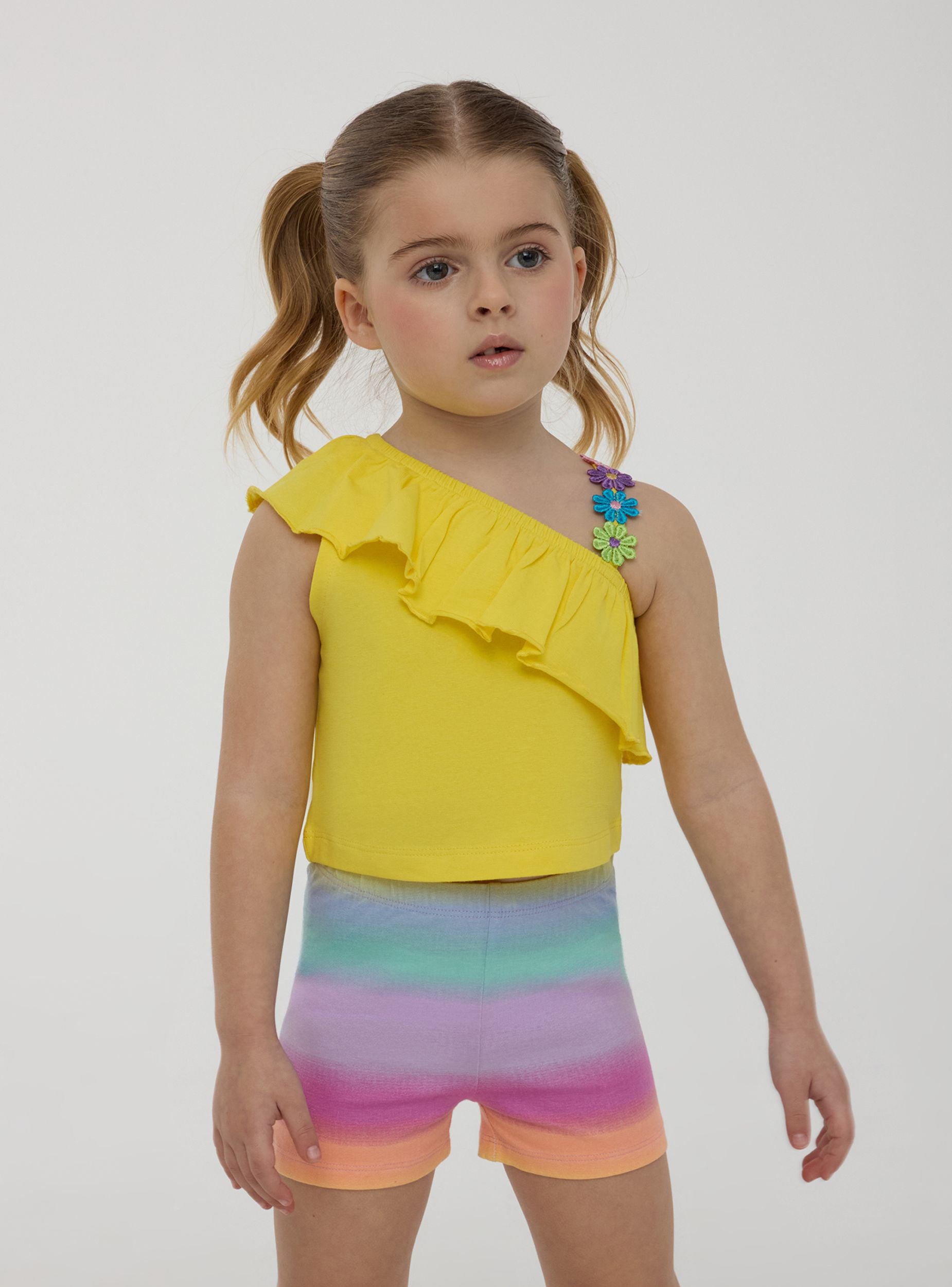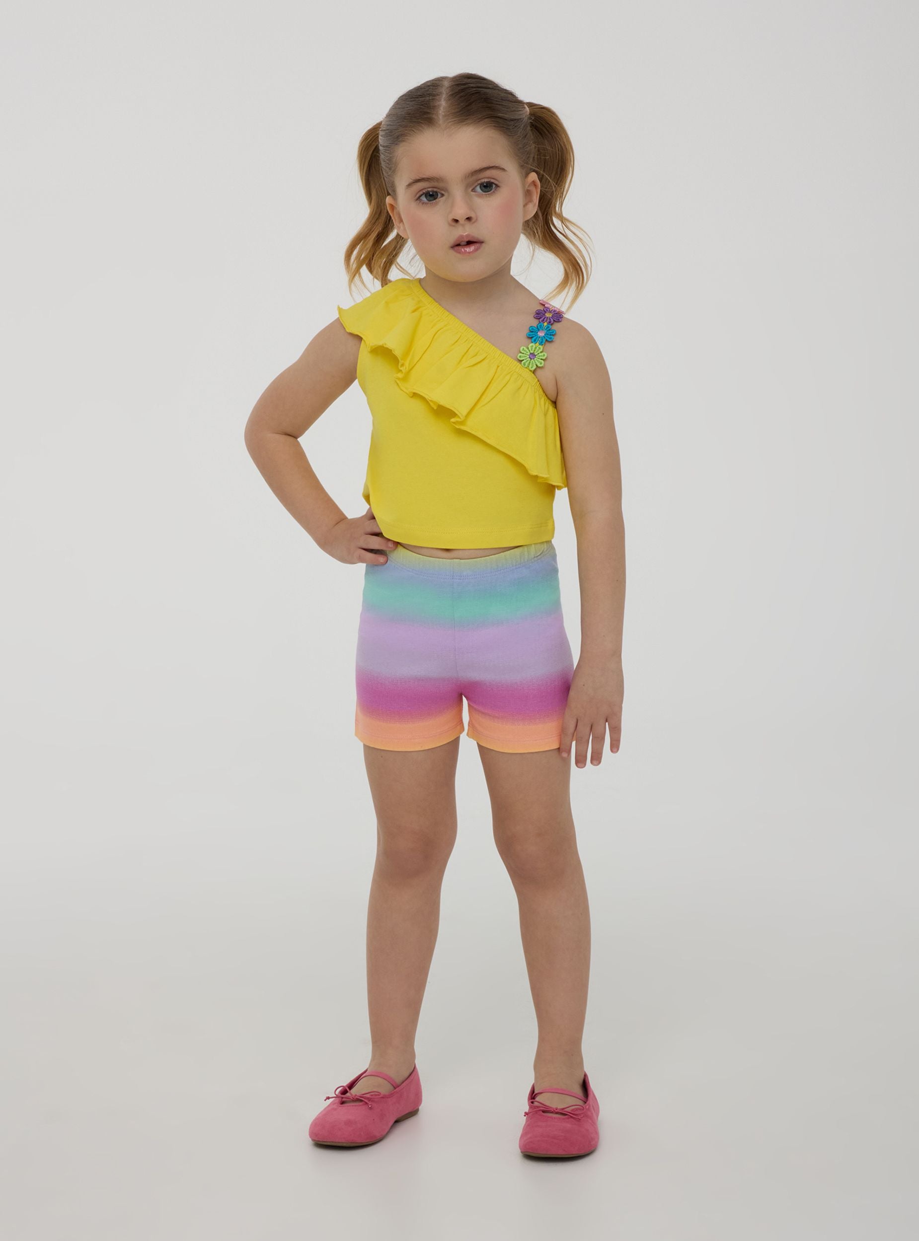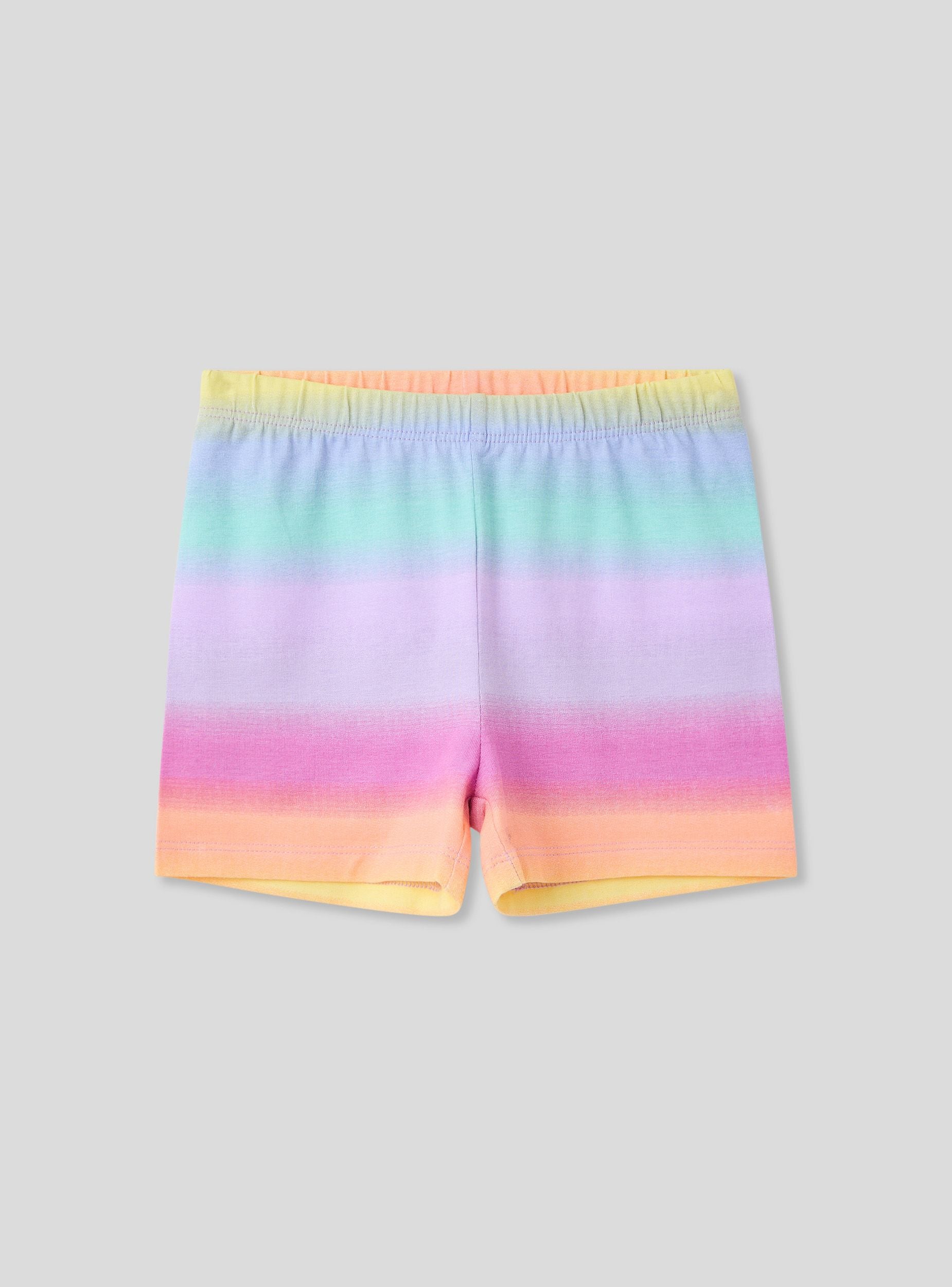Leggins za devojčice sa živopisnim i razigranim dizajnom, karakterisani višebojnim prugastim uzorkom koji dodaje veselu i dinamičnu notu izgledu. Model sa širokim nogavicama pruža usklađen i udoban kroj, savršen za svakodnevno kretanje. Elastična tkanina garantuje slobodu pokreta, čineći ih idealnim za slobodno vreme i aktivnosti na otvorenom. Savršeni su za kombinovanje sa majicama i patikama za praktičan i stilizovan izgled.