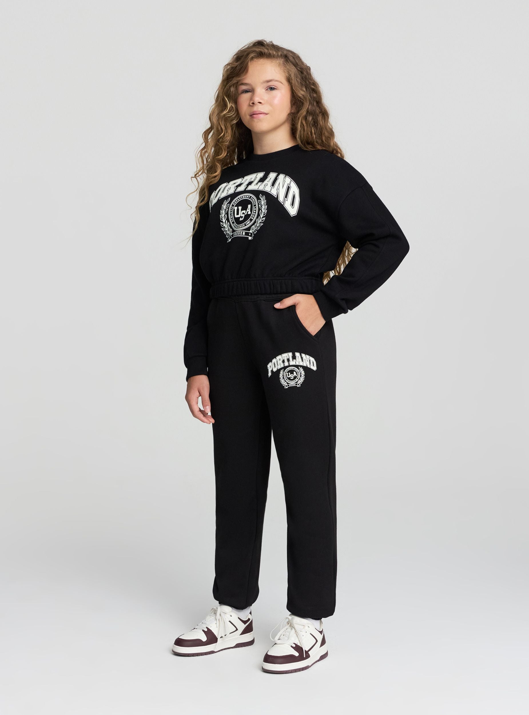 Pantalone trenerke za devojčice, teški, idealni za slobodno vreme i svakodnevne aktivnosti. Imaju udoban elastični pojas i bočne nagnute džepove za praktičnost. Ukrasni natpis dodaje dozu sportskog stila. Savršeni za kombinovanje sa majicama i duksericama za sportski i udoban izgled.Detalji