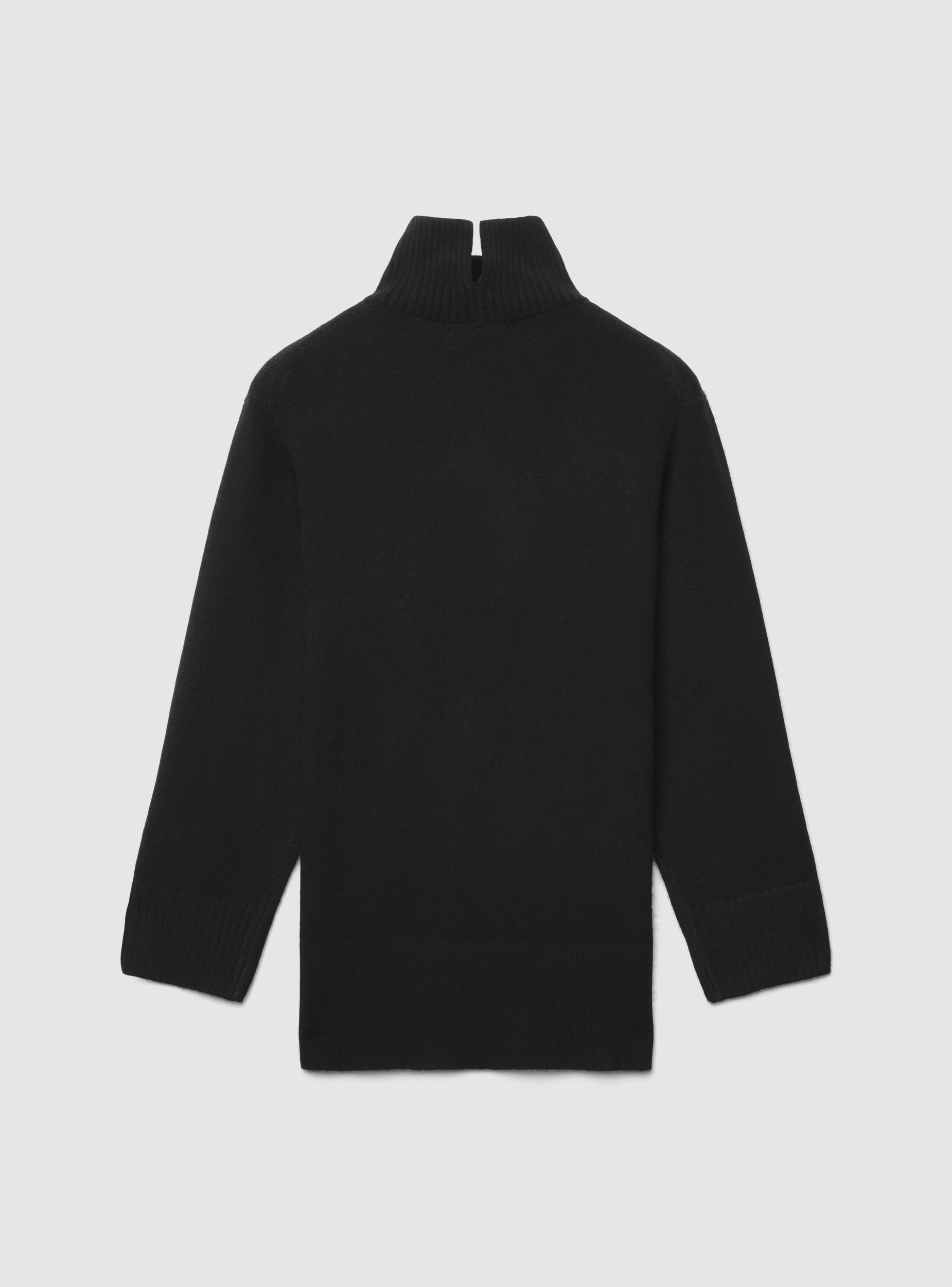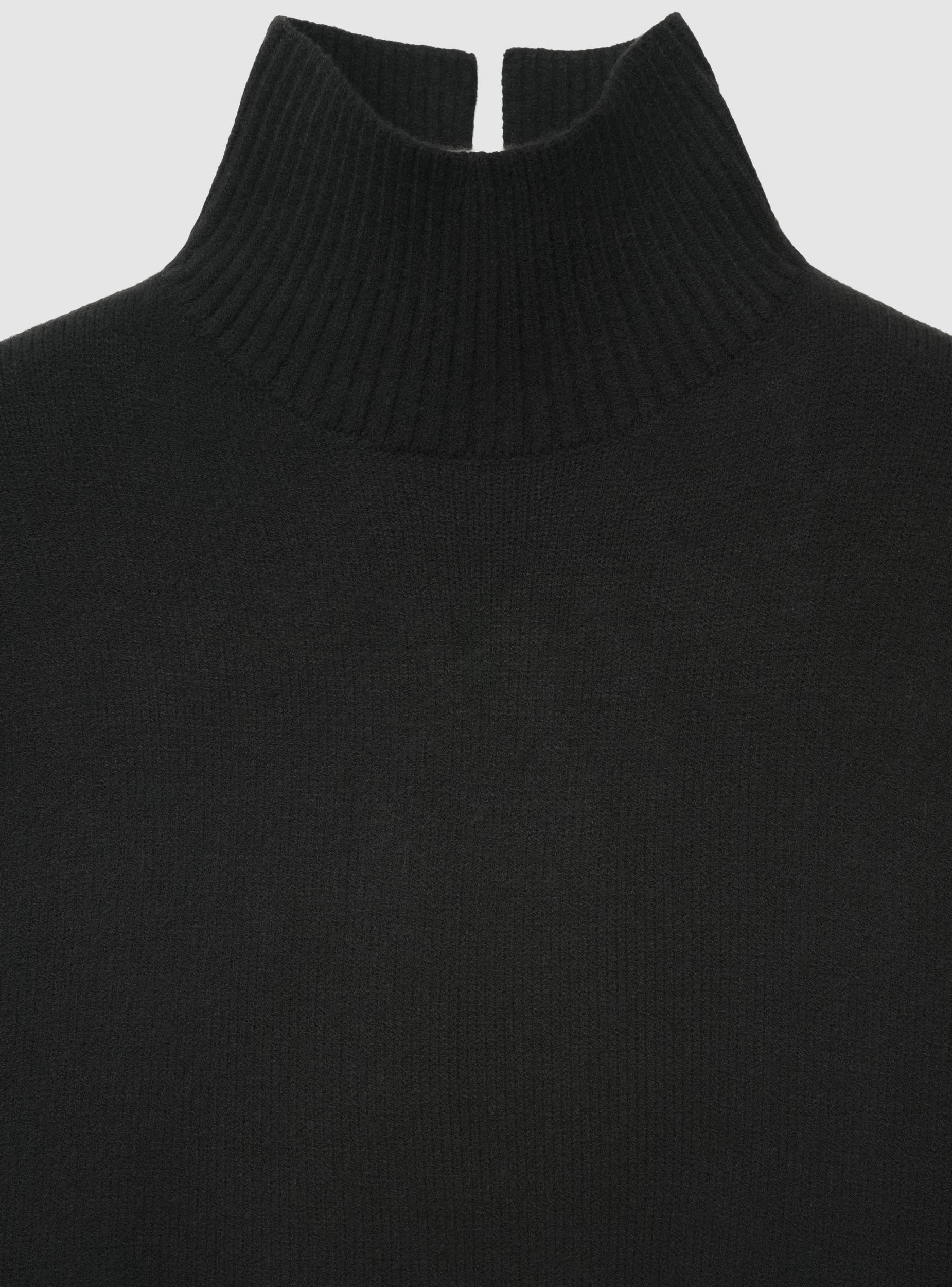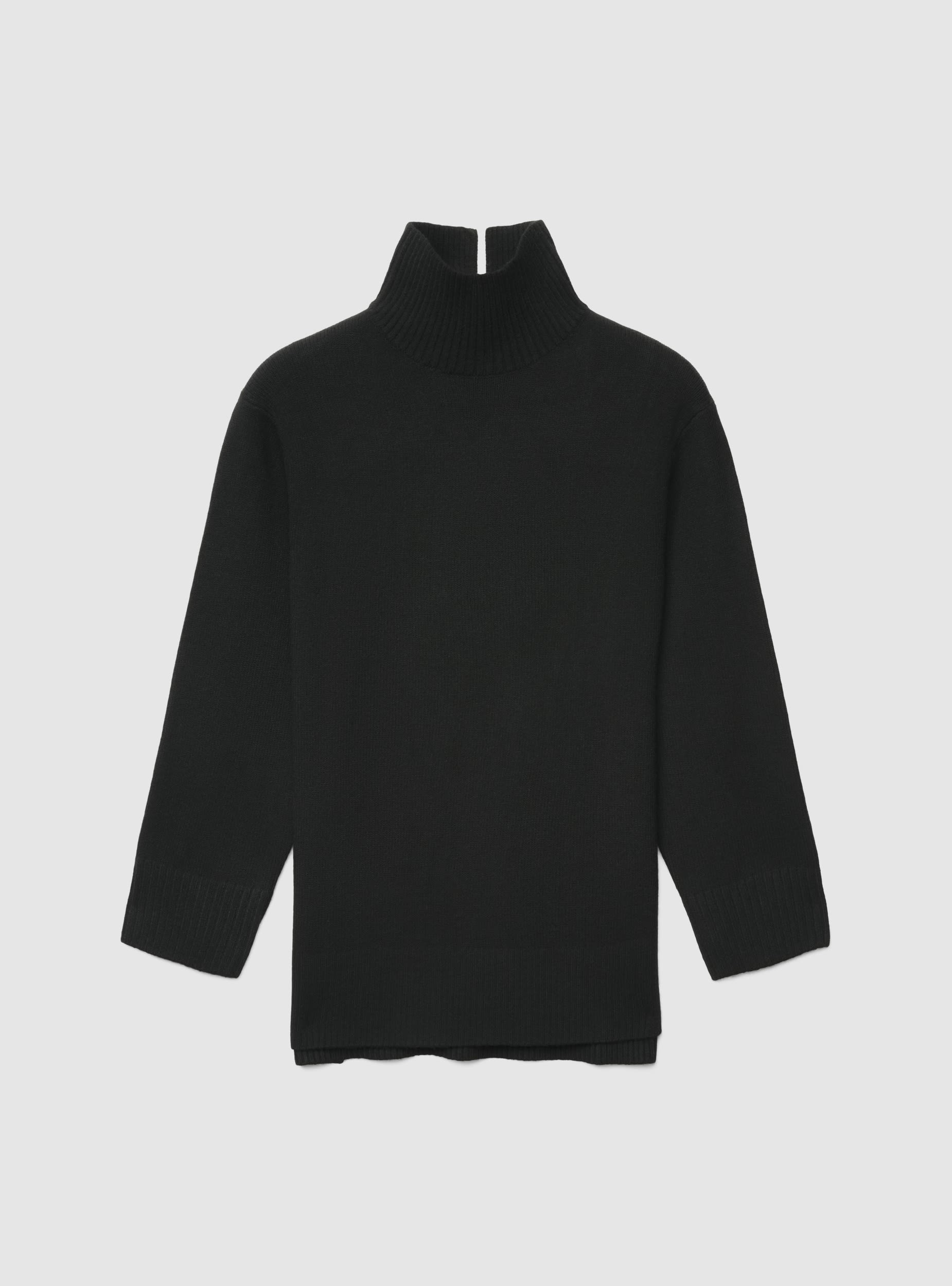 Ženska dolčevita majica jednobojna, sa dugim rukavima i bočnim prorezima koji daju pokret i modernost izgledu. Visoki okovratnik nežno obavija vrat, pružajući osećaj topline i udobnosti, idealno za zimsku sezonu. Savršena za kombinovanje sa uskim farmerkama ili širokim pantalonama, to je svestran komad koji spaja jednostavnost i stil u suštinskom, ali uvek modernom dizajnu.Detalji