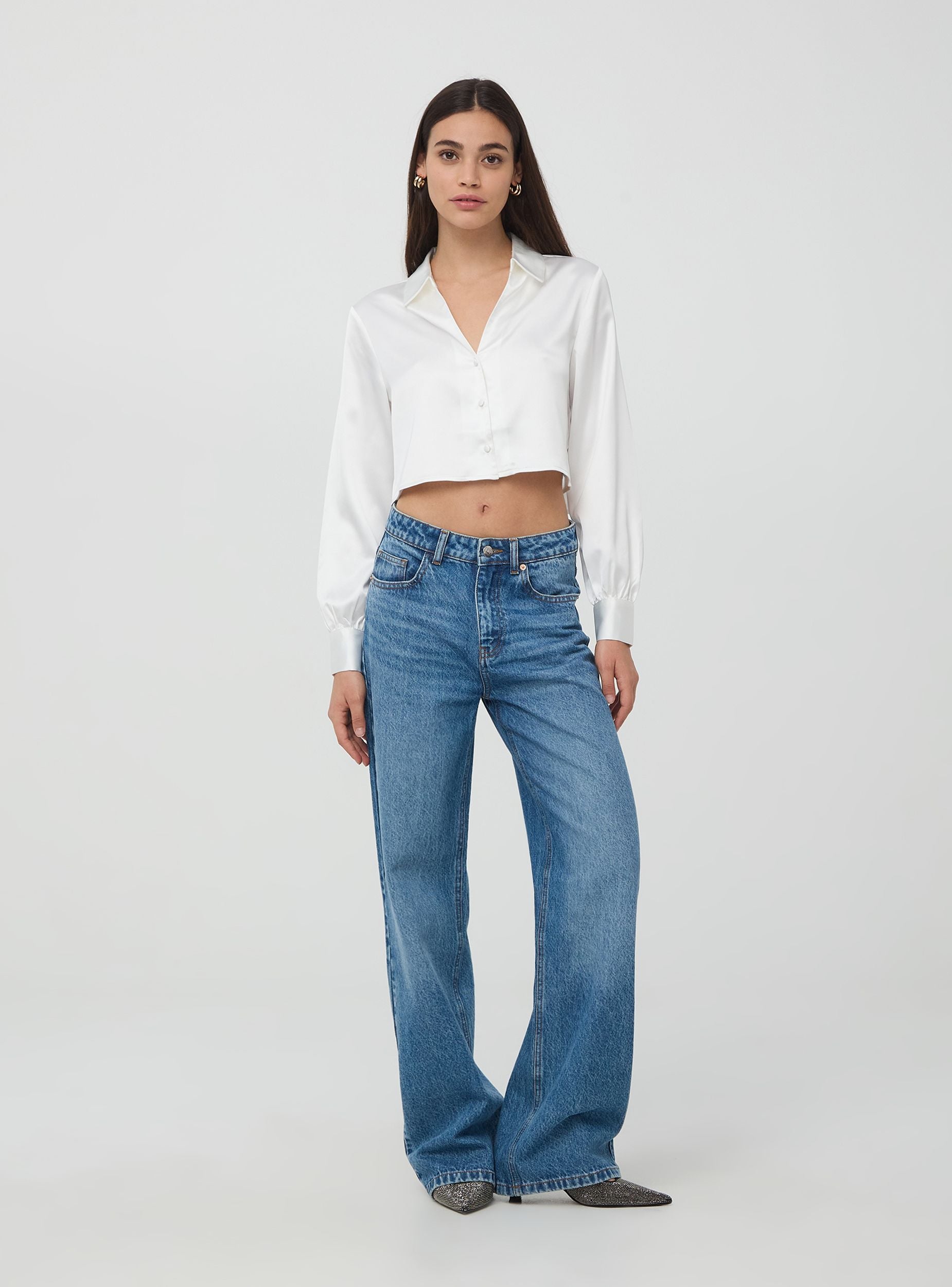 Ženski farmerke u srednje plavoj boji, dizajnirane za one koji vole da se ističu. Njihovo pranje u srednje plavoj boji, wideleg model sa 5 džepova i srednjim strukom. Wideleg linija, u kombinaciji sa srednjim strukom, garantuje udobnost i slobodu kretanja, omogućavajući ti da iskažeš svoju jedinstvenost u svakoj prilici. Bilo da šetaš gradom ili uživaš u posebnoj večeri, ove farmerke će biti tvoj stilizovani saveznik, obavijajući obline sa elegancijom i modernom.