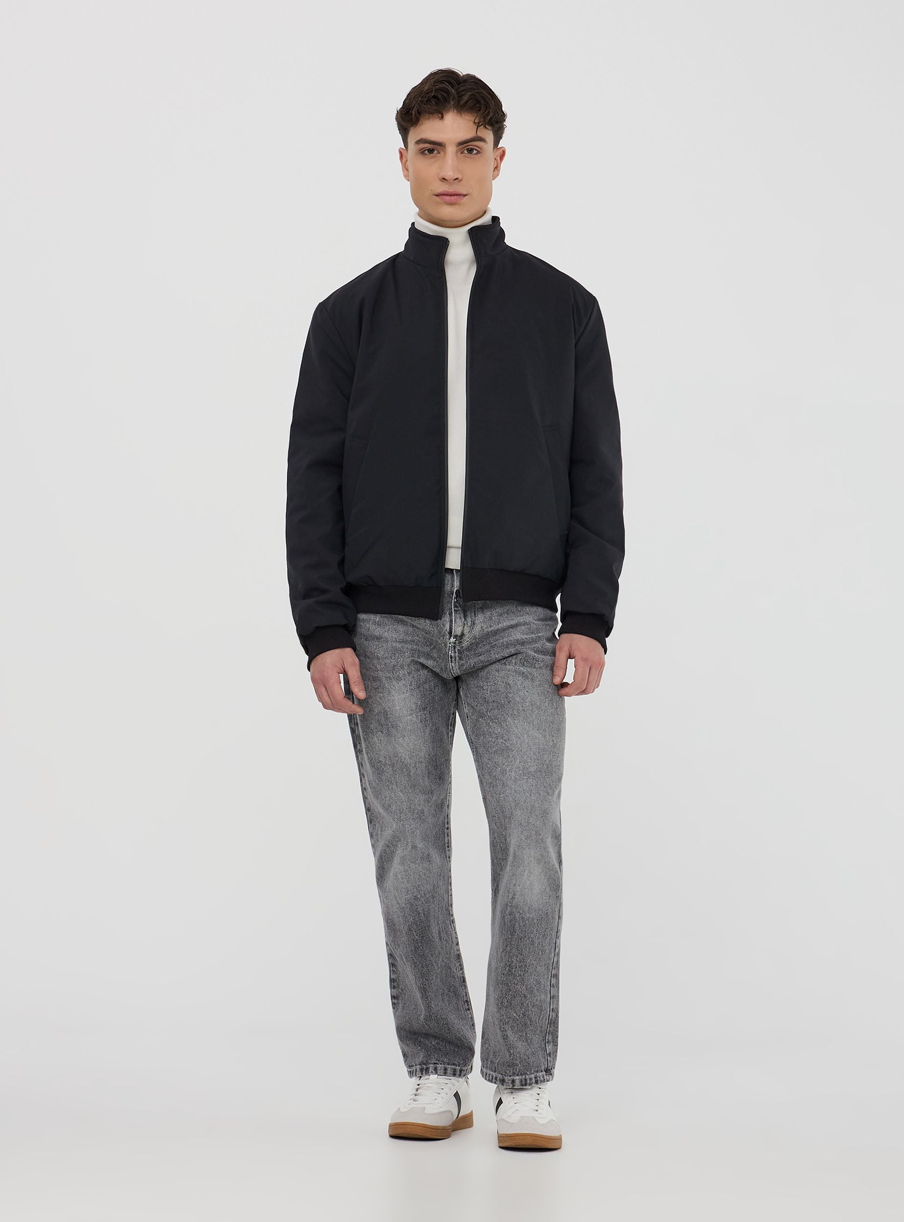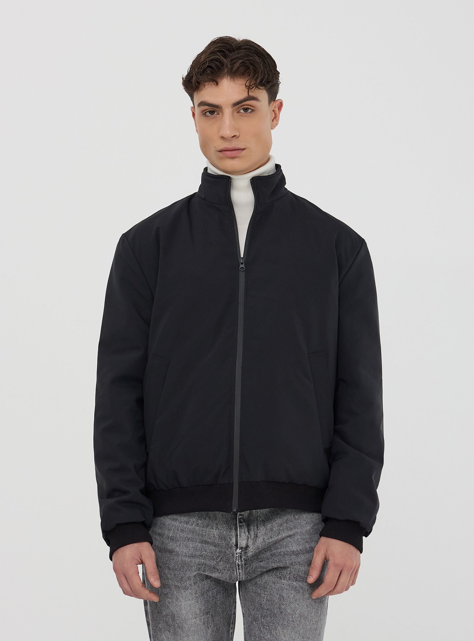 Muški jakna sa jednostavnim i modernim dizajnom. Karakteriše je glatka površina bez vidljivih podstava, što joj daje čist i rafiniran izgled. Jakna ima prednje zatvaranje sa rajsferšlusom koje se proteže do kragne, koja je blago podignuta radi dodatne zaštite. Bočne džepove su nagnuti i opremljeni preklopima, što doprinosi praktičnosti i minimalističkom dizajnu komada. Manžetne i donji rub su rebrasti, pružajući usku i udobnu prilagodbu. Model bez kapuljače, idealan za ležeran ali sređen izgled.Detalji