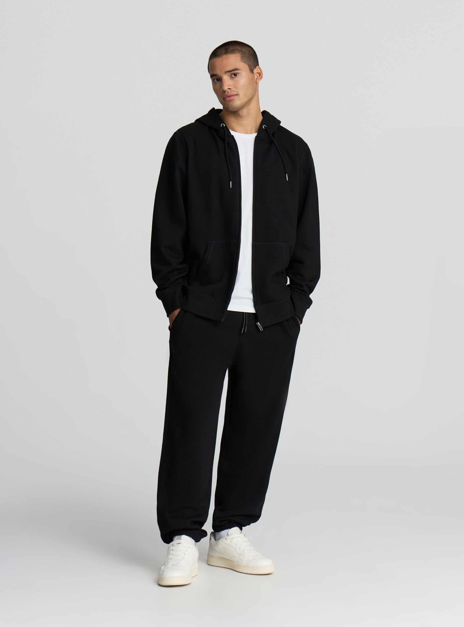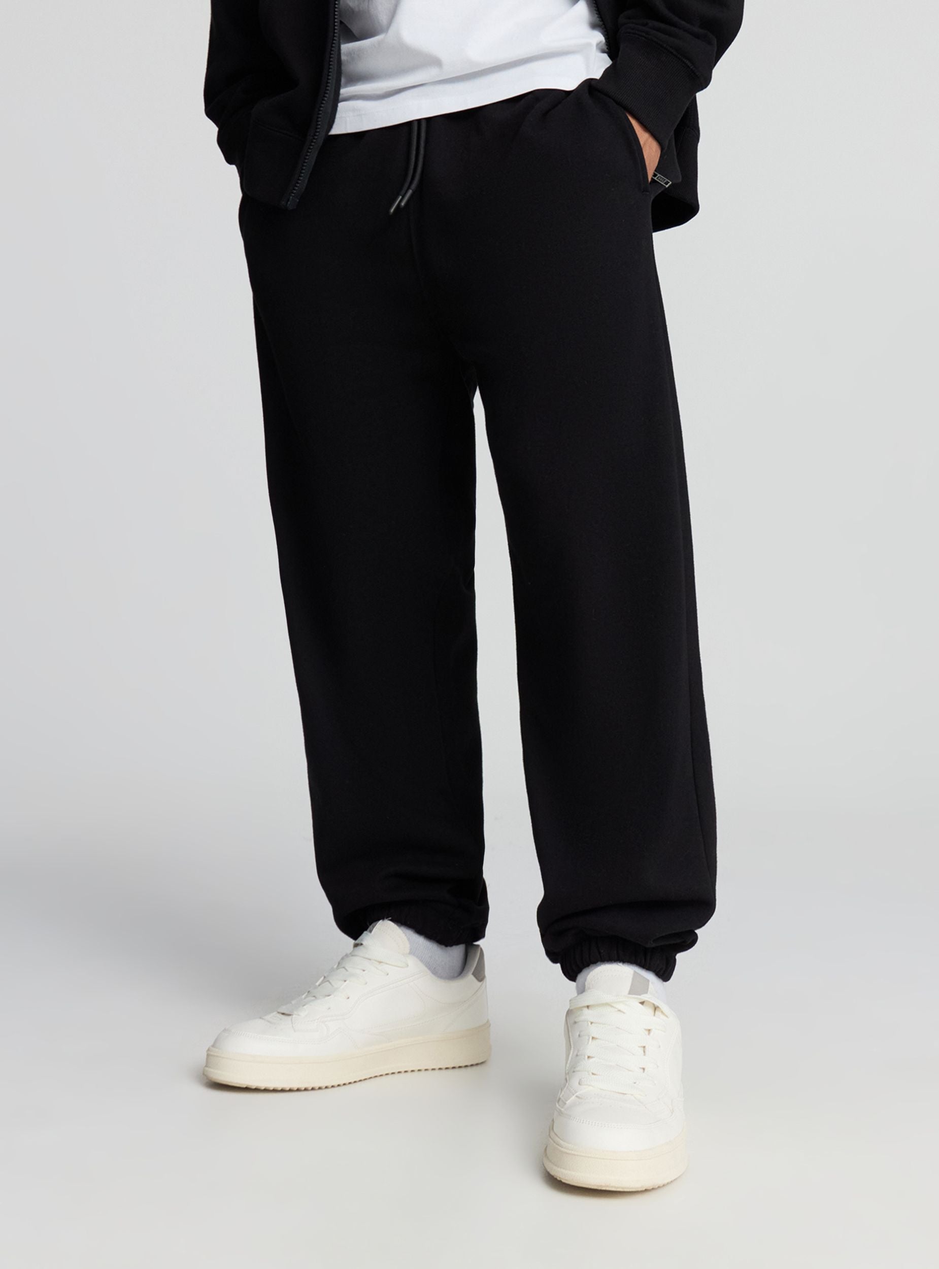 Muški teški jogger pantaloni idealni za slobodno vreme i svakodnevne aktivnosti, karakterišu se regular fit krojem i jednostavnim dizajnom u jednoj boji. Opremljeni su podesivom šnrom u struku, bočnim džepovima i manžetama na donjem delu nogavica, pružajući udobnost i praktičnost. Savršeni su za kombinovanje sa majicama ili duksericama za sportski i opušten izgled.