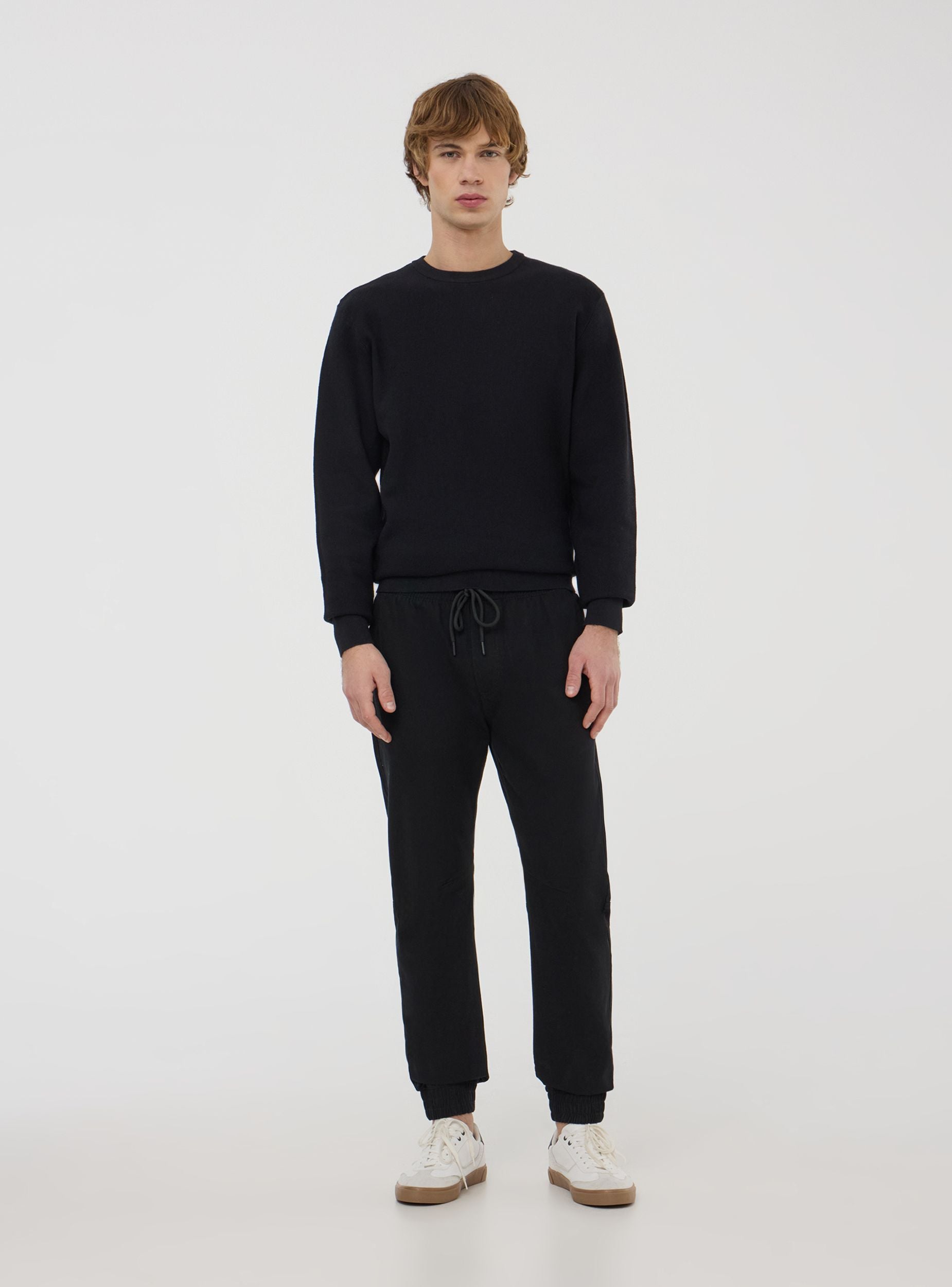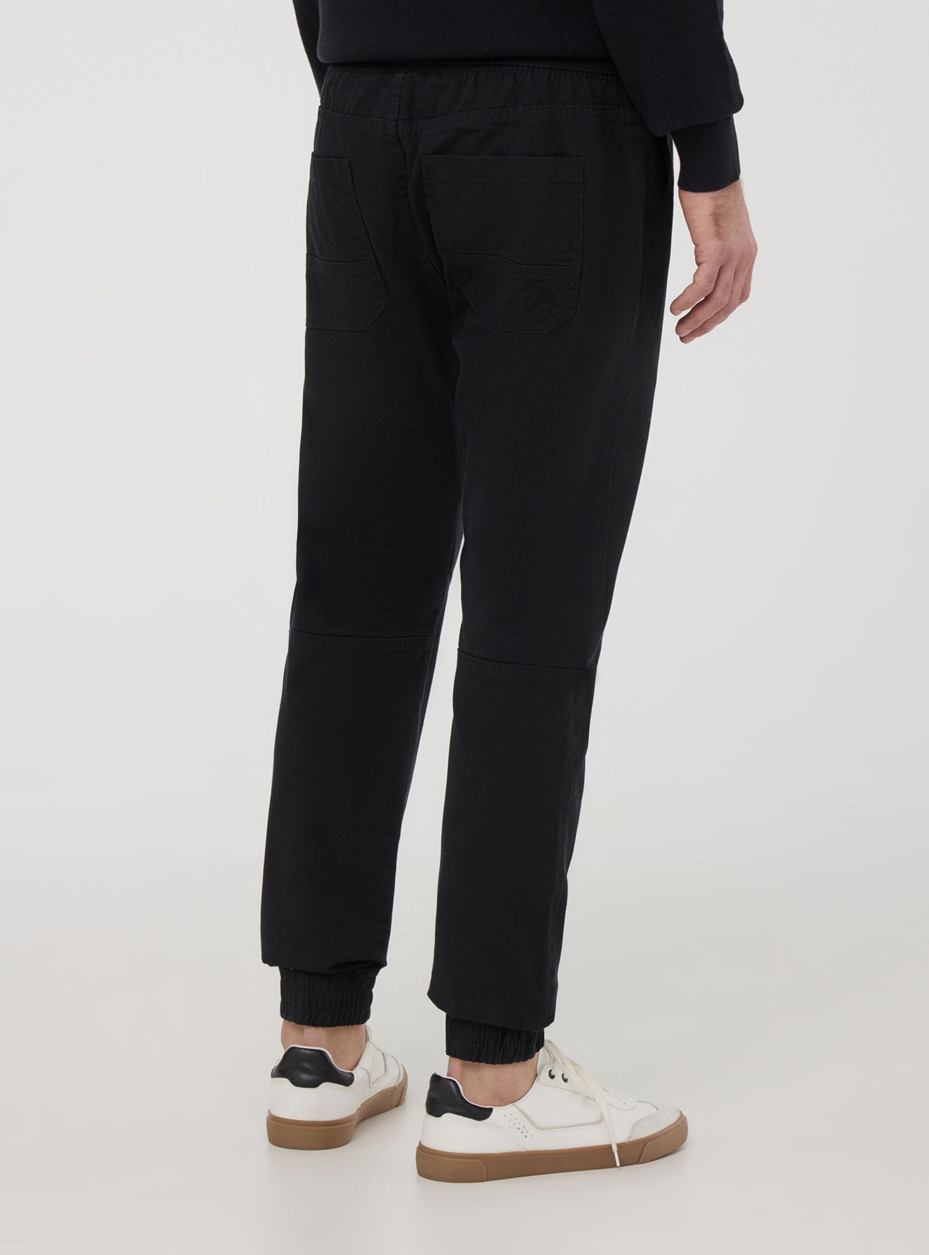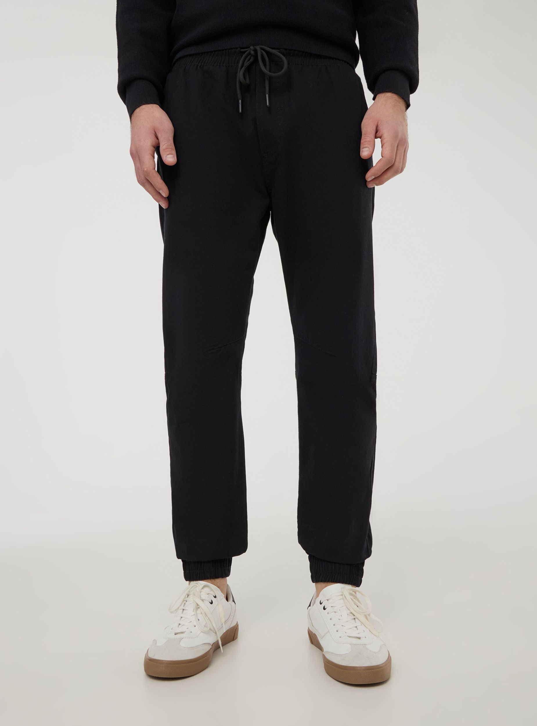 Muški jogger pantaloni, idealni za ležeran i dinamičan izgled. Karakterišu ih jednobojni dizajn, udobna podesiva vrpca, elastičan pojas i manžetne na dnu za savršeno pristajanje. Opremljeni praktičnim bočnim i zadnjim džepovima, lako se kombinuju sa majicama i duksericama za slobodno vreme ili sportske aktivnosti.