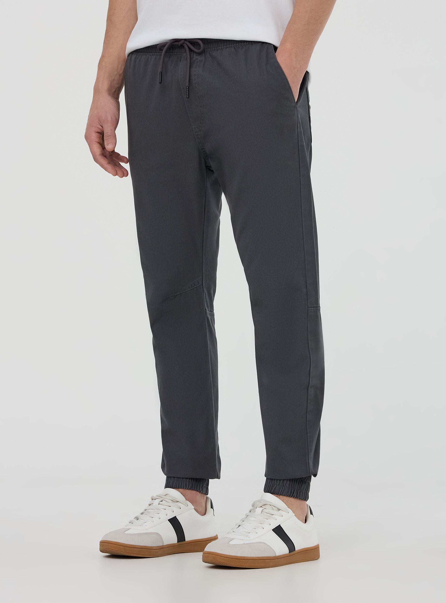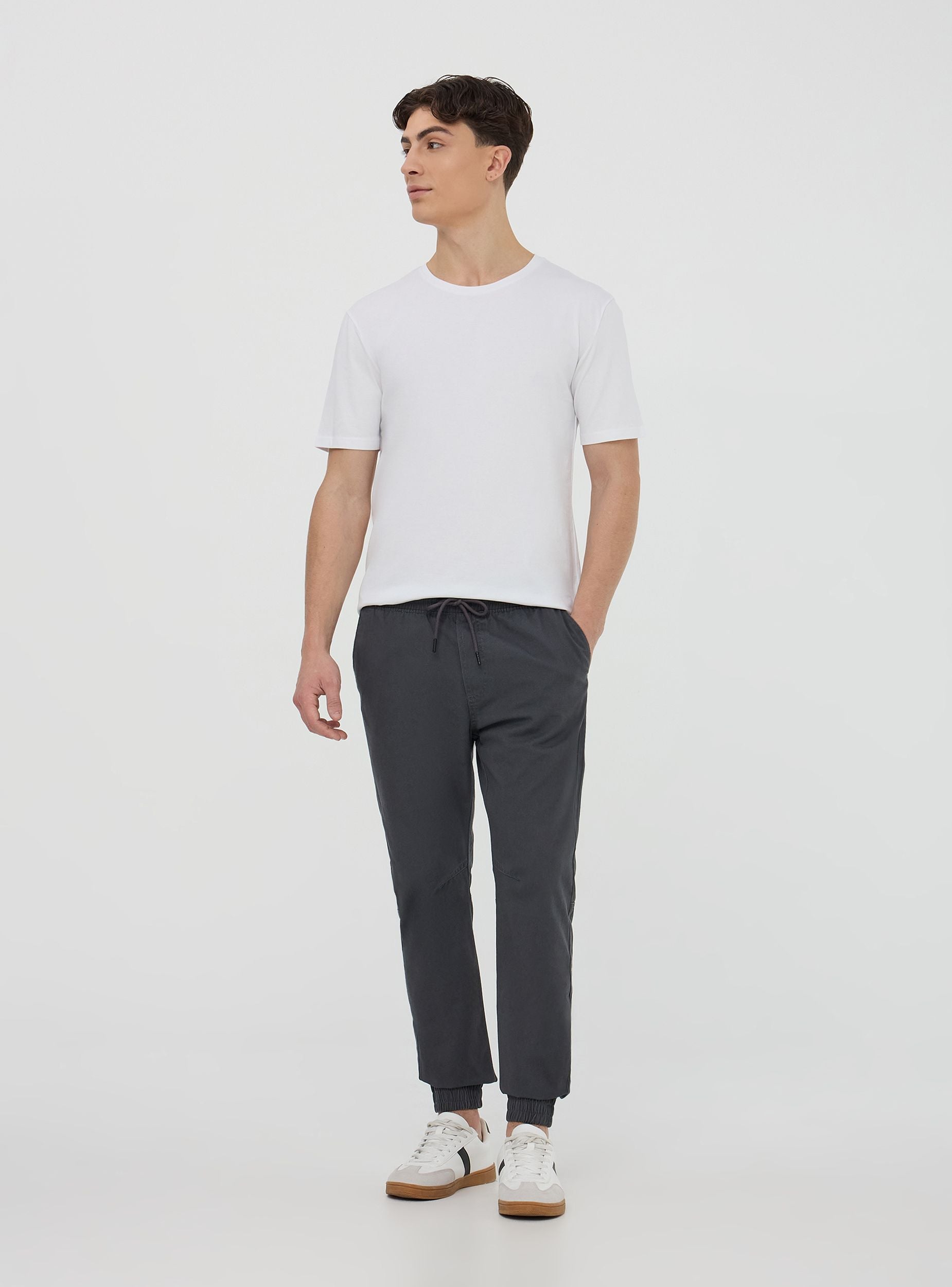Muški jogger pantaloni, idealni za ležeran i dinamičan izgled. Karakterišu ih jednobojni dizajn, udobna podesiva žica, elastična traka u struku i manžetne na dnu za savršeno pristajanje. Opremljeni su praktičnim bočnim i zadnjim džepovima, lako se kombinuju sa majicama i duksericama za slobodno vreme ili sportske aktivnosti.Detalji