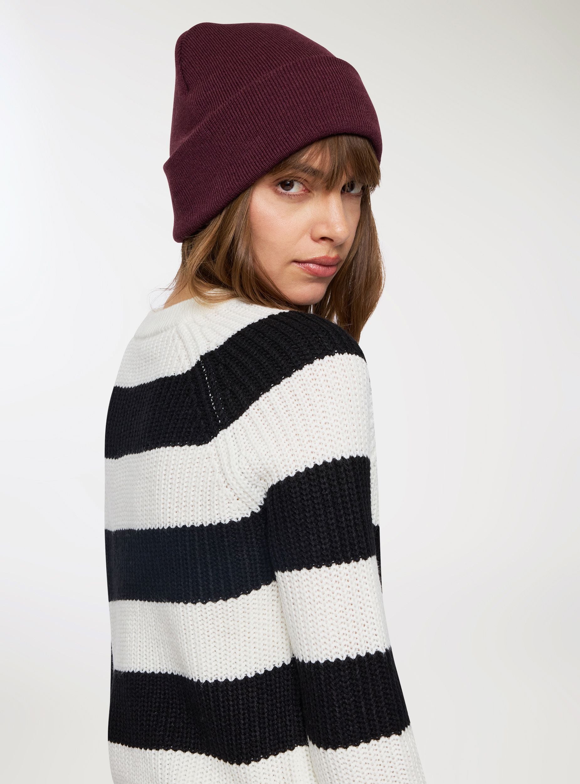 Ženski osnovni šešir u jednobojnoj boji, svestran i uvek aktuelan. Nezaobilazan dodatak za suočavanje sa hladnom sezonom sa stilom. Ovaj šešir spaja jednostavnost i suštinu u bezvremenskom dizajnu. Čista linija i klasični obod čine ga savršenim za upotpunjavanje svake kombinacije, od najopuštenijih do najurbanijih. Mekan i udoban, lako se prilagođava svakoj obliku lica i obezbeđuje toplinu i zaštitu tokom najhladnijih dana. Praktičan za kombinovanje sa kaputima, jaknama ili pernatim jaknama, to je osnovni komad koji nikada ne izlazi iz mode i pokazuje se kao pobednički izbor u svakoj prilici.