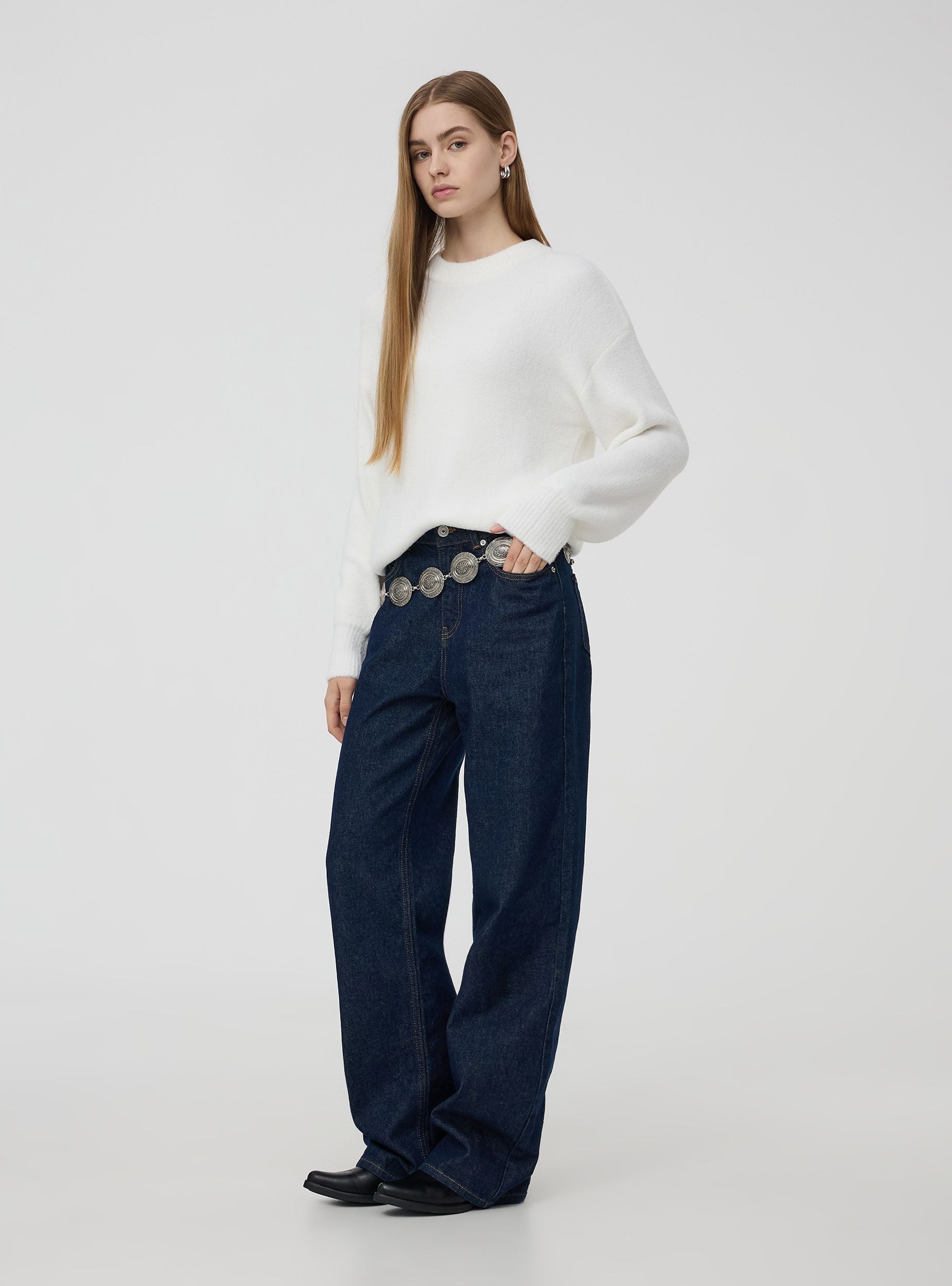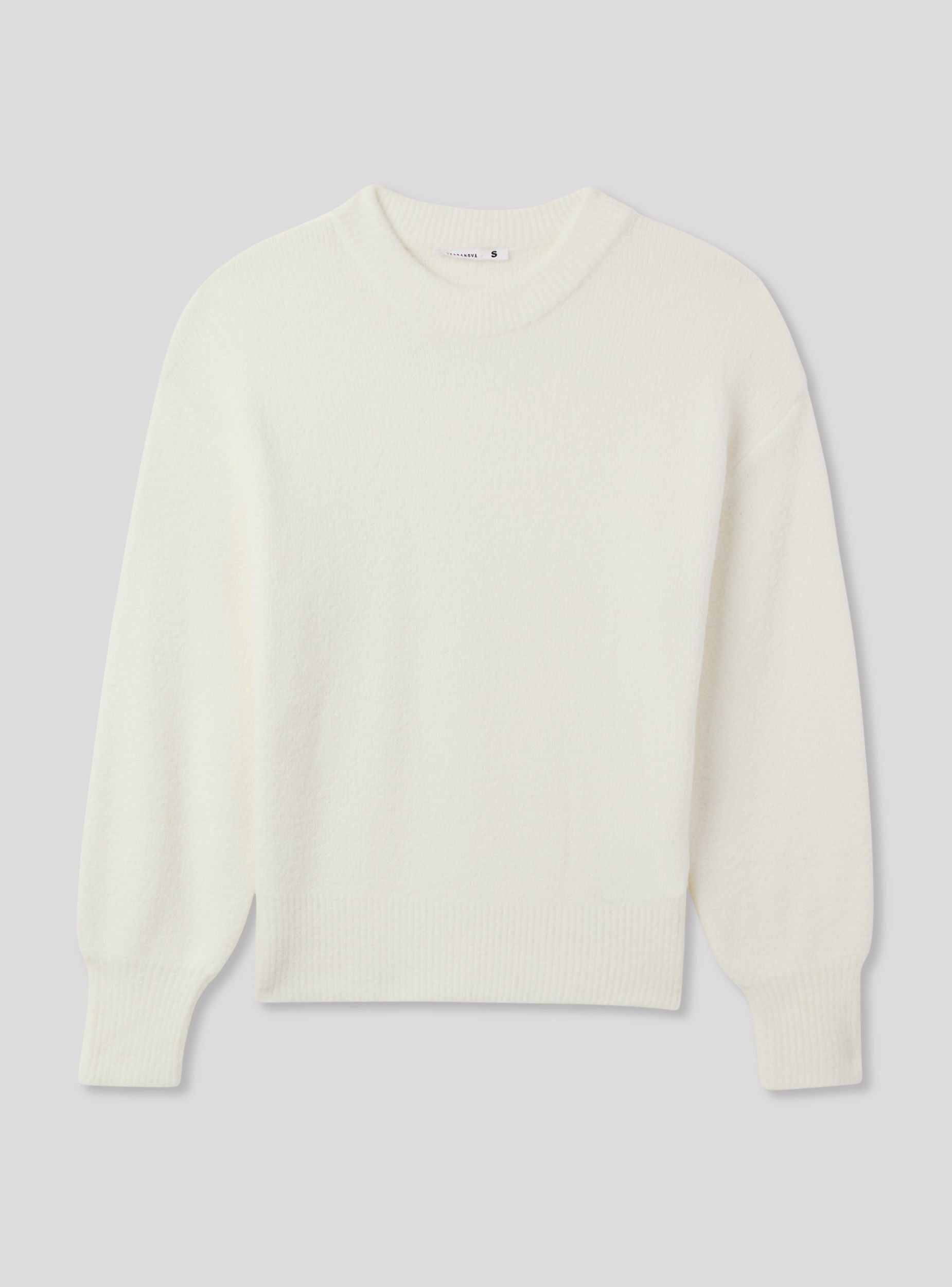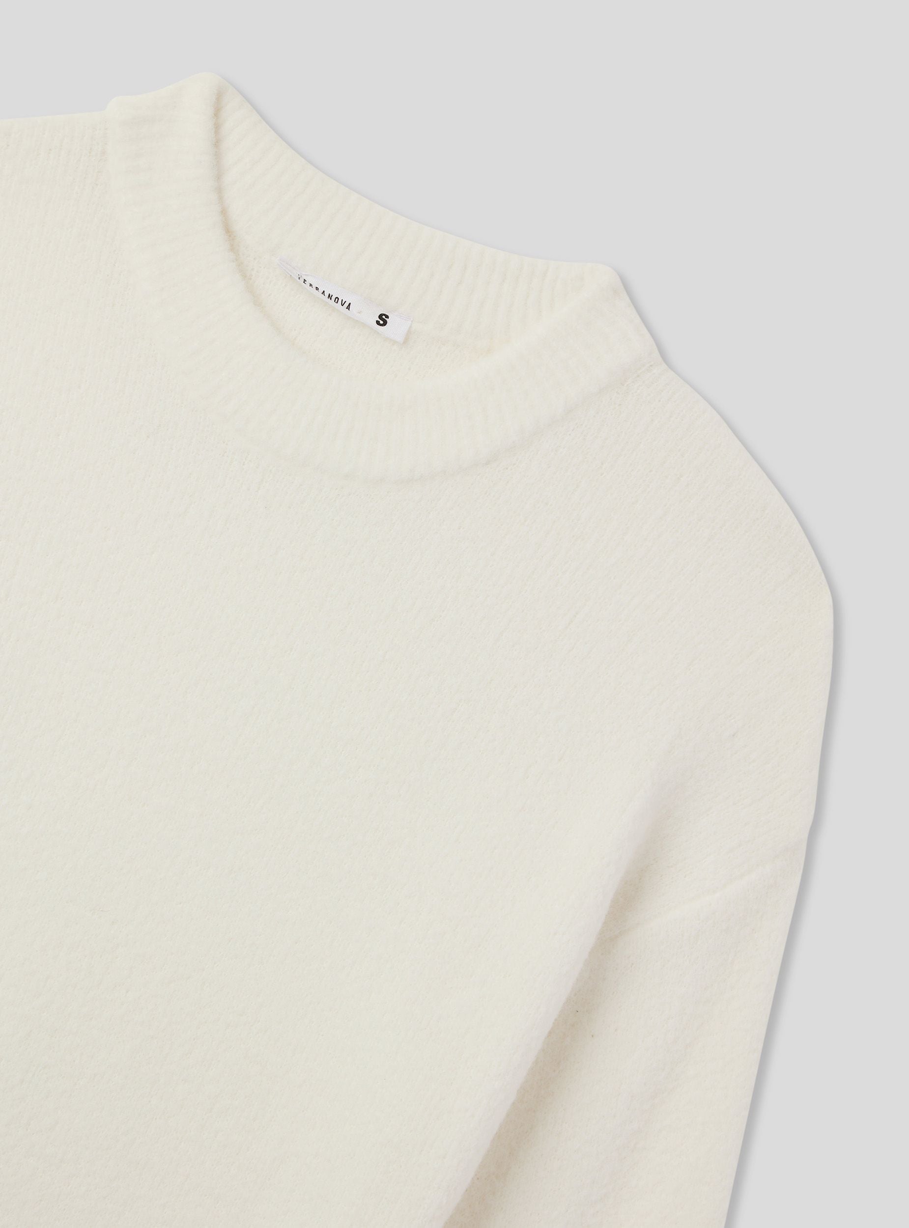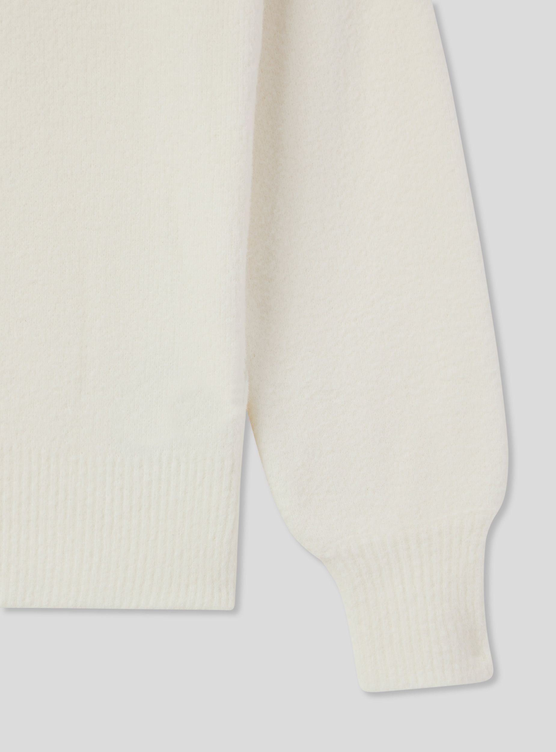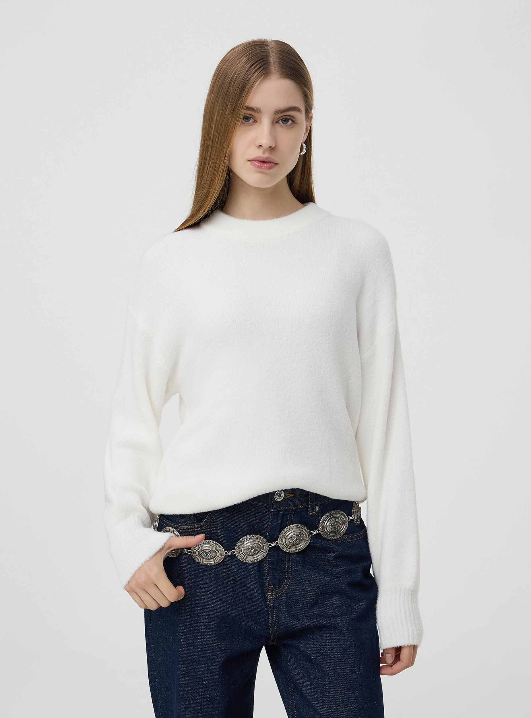 Ženska majica sa balon rukavima, karakterisana udobnim i opuštenim krojem. Tkanina sa efektnim dlačicama u jednobojnoj boji. Dizajn ima jednostavnu i čistu liniju, sa detaljima od rebraste tkanine na manžetama, donjem rubu i okovratniku. Dugi balon rukavi dodaju dašak elegancije i ženstvenosti. Savršena za zimsku sezonu, pruža toplinu i stil u jednom komadu.Detalji