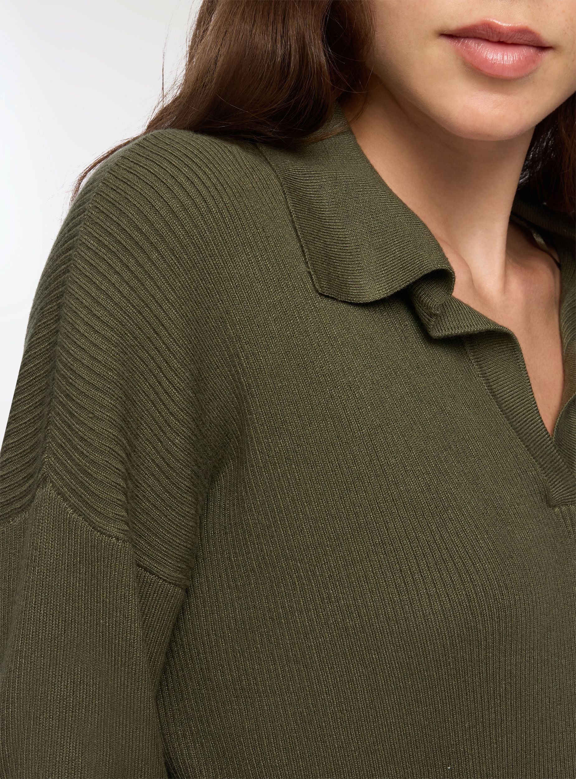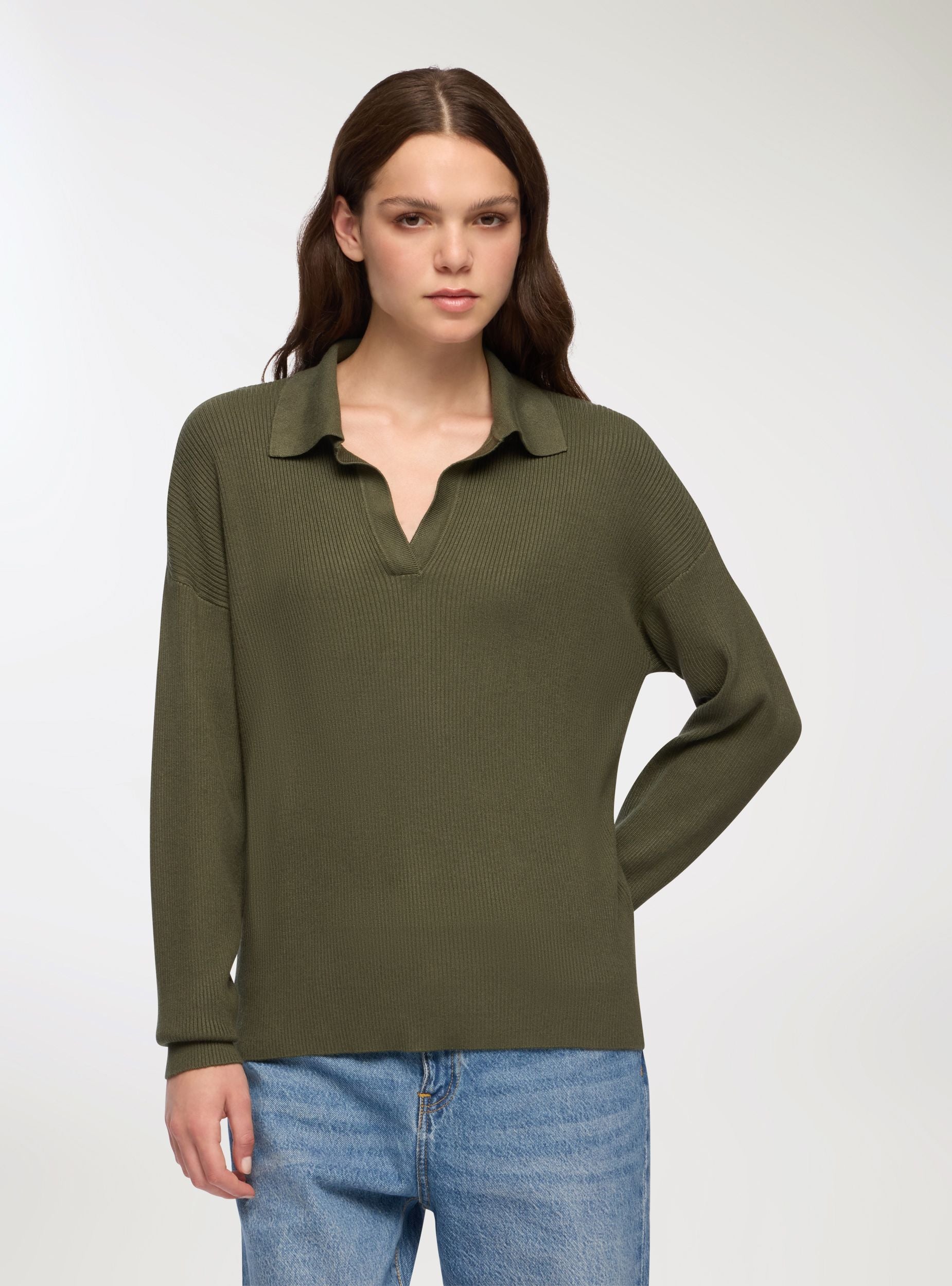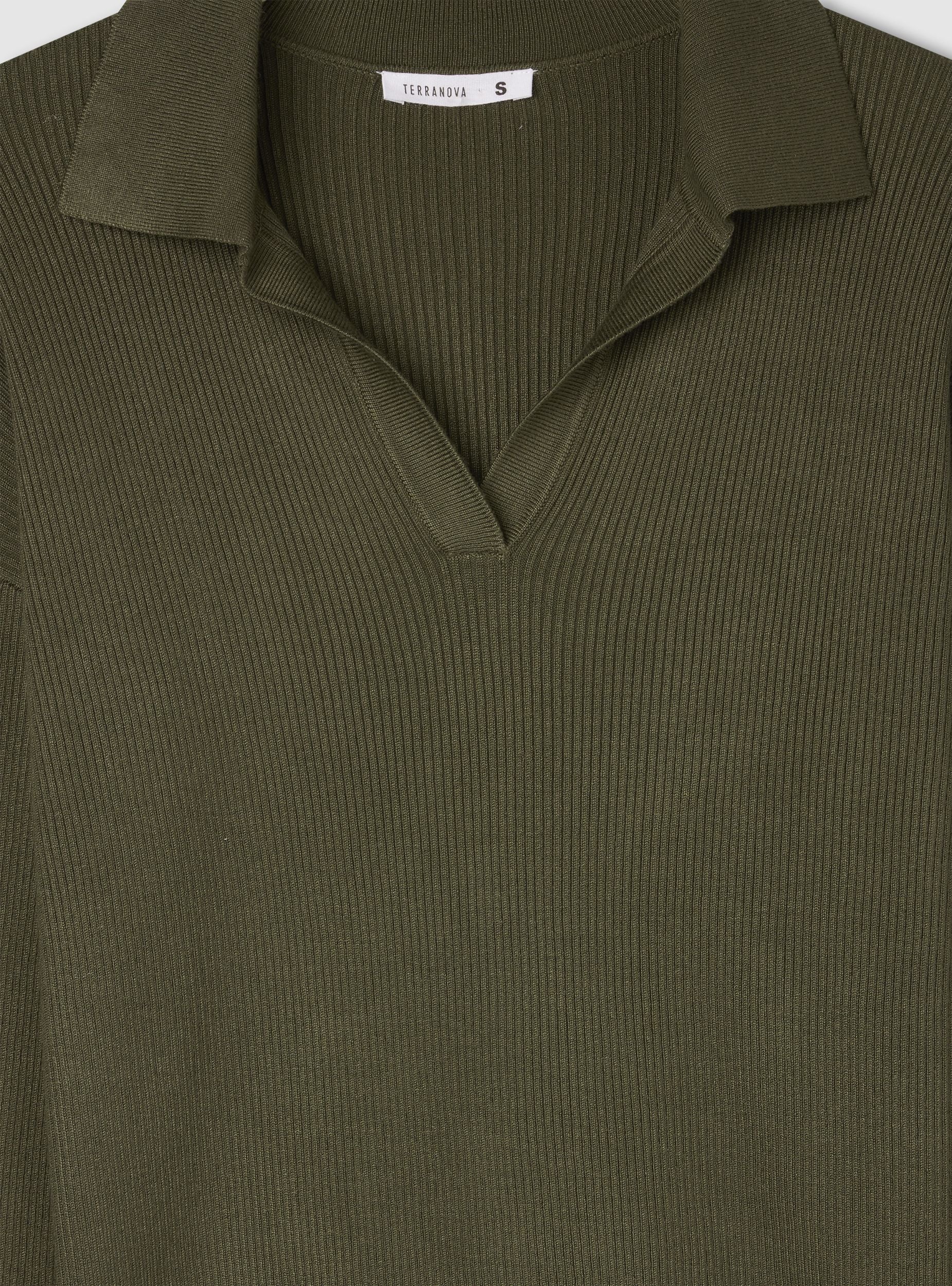 Ženska majica sa okovratnikom i V-izrezom, idealna za ležeran i svestran izgled. Mekani kroj i jednostavan dizajn čine je savršenom za kombinovanje sa farmerkama ili elegantnim pantalonama. Pogodna za opuštene dane ili neformalne prilike, ova majica pruža udobnost i stil u svakoj situaciji.Detalji