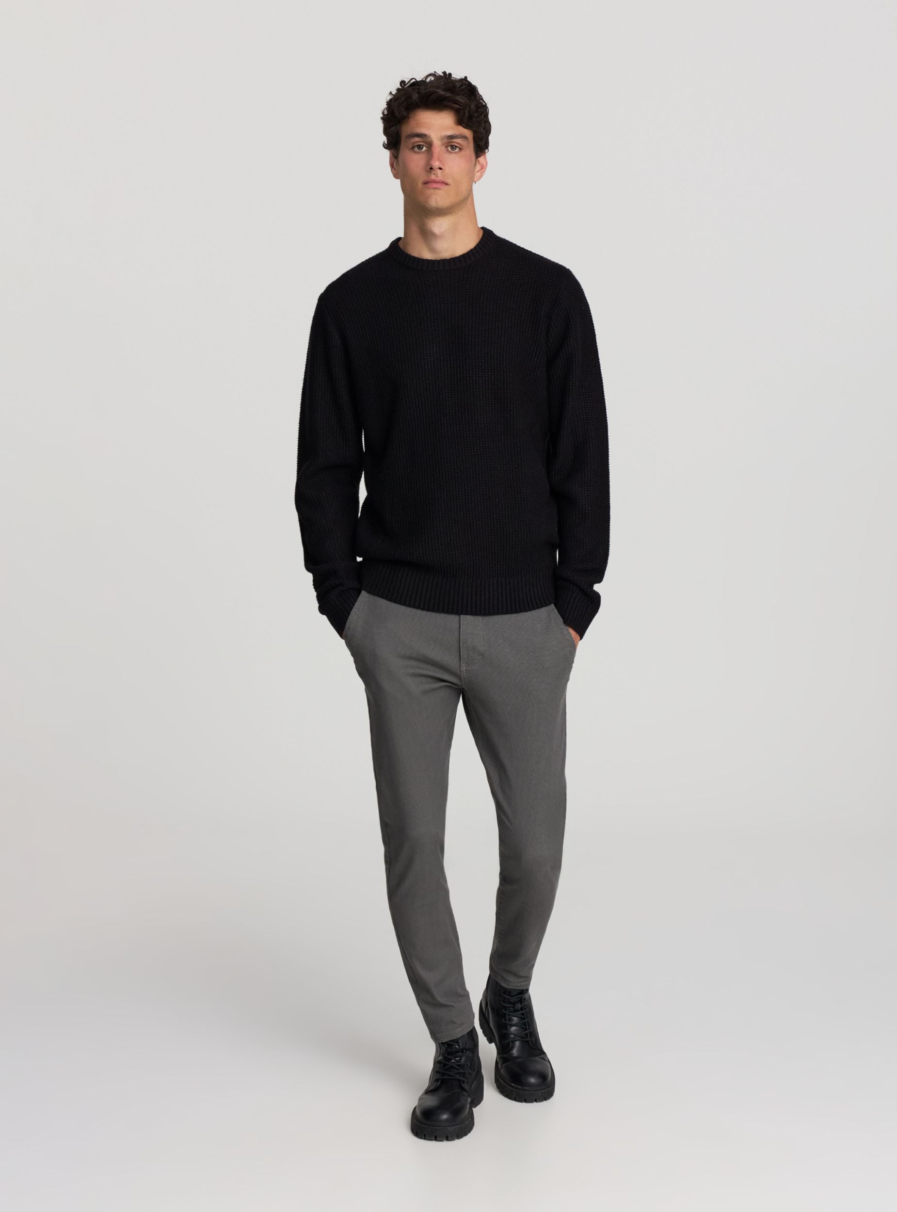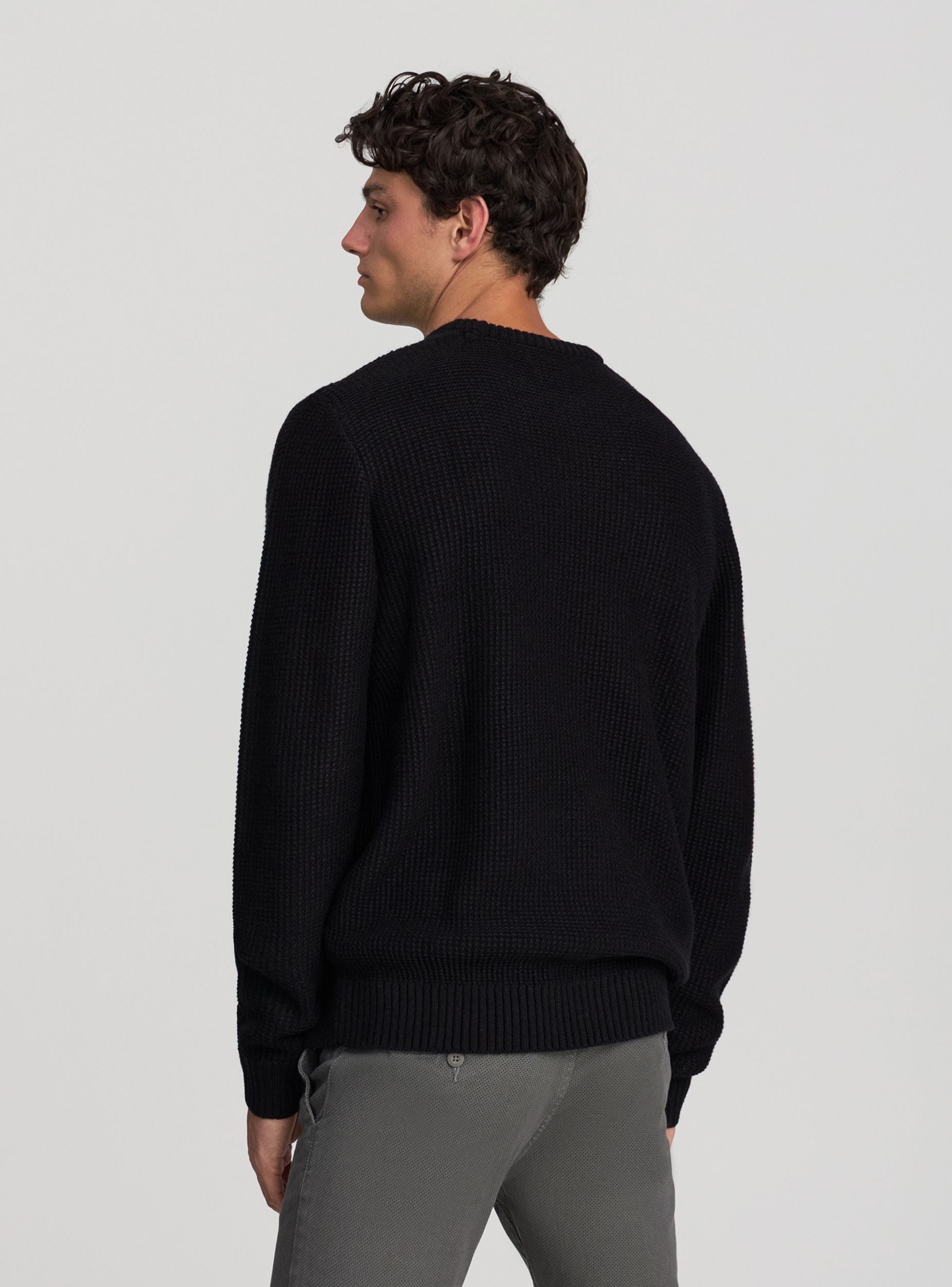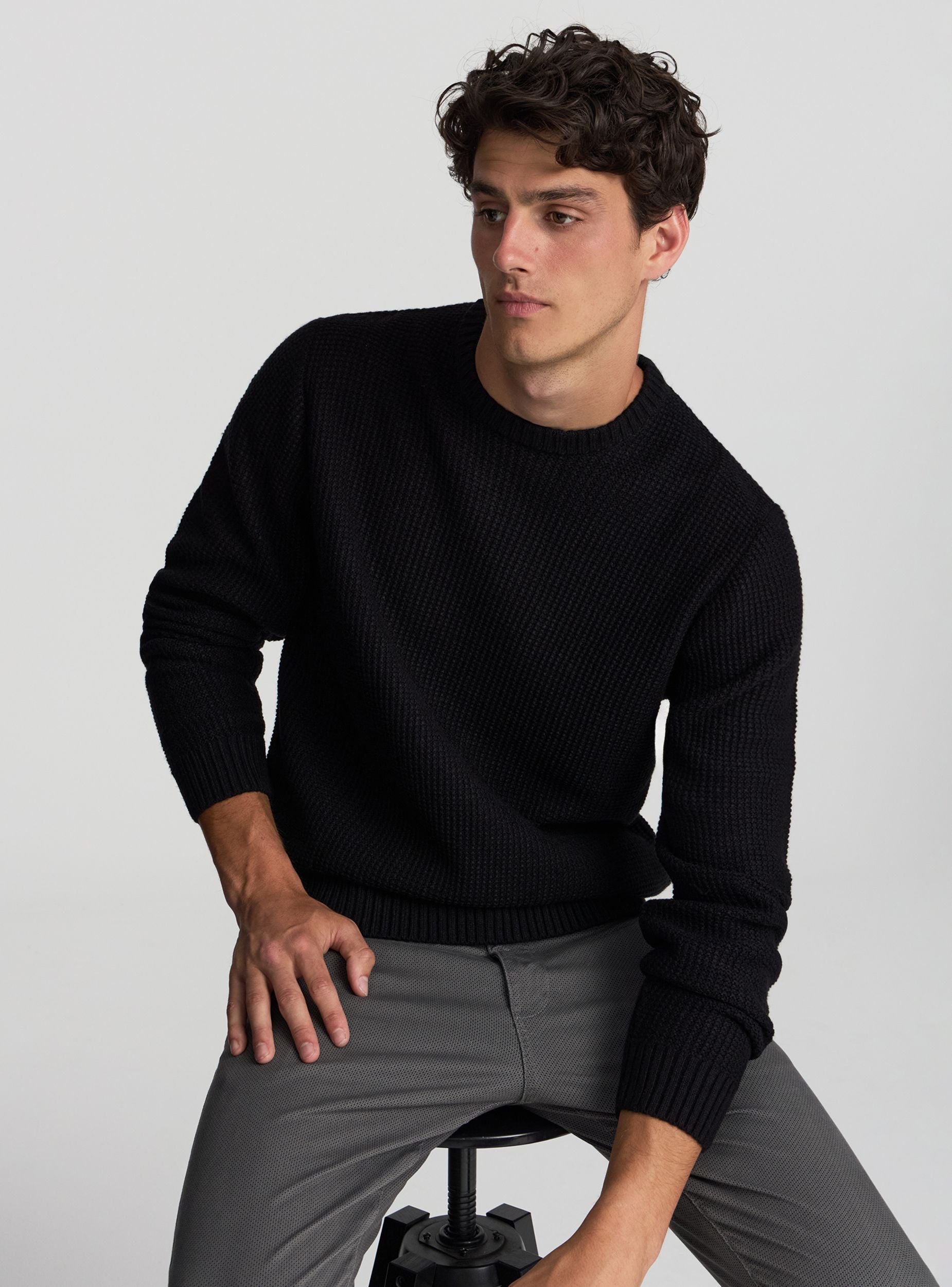 Muška majica idealna za svežije dane, savršena za ležeran i udoban izgled. Ovaj komad se ističe svojim teškim dizajnom sa reljefnim uzorkom, što dodaje jedinstven dodir stila. Savršena za kombinovanje sa farmerkama ili chino pantalonama za svestran outfit prikladan za različite prilike. Regularna kroja garantuje udobnost i slobodu kretanja.