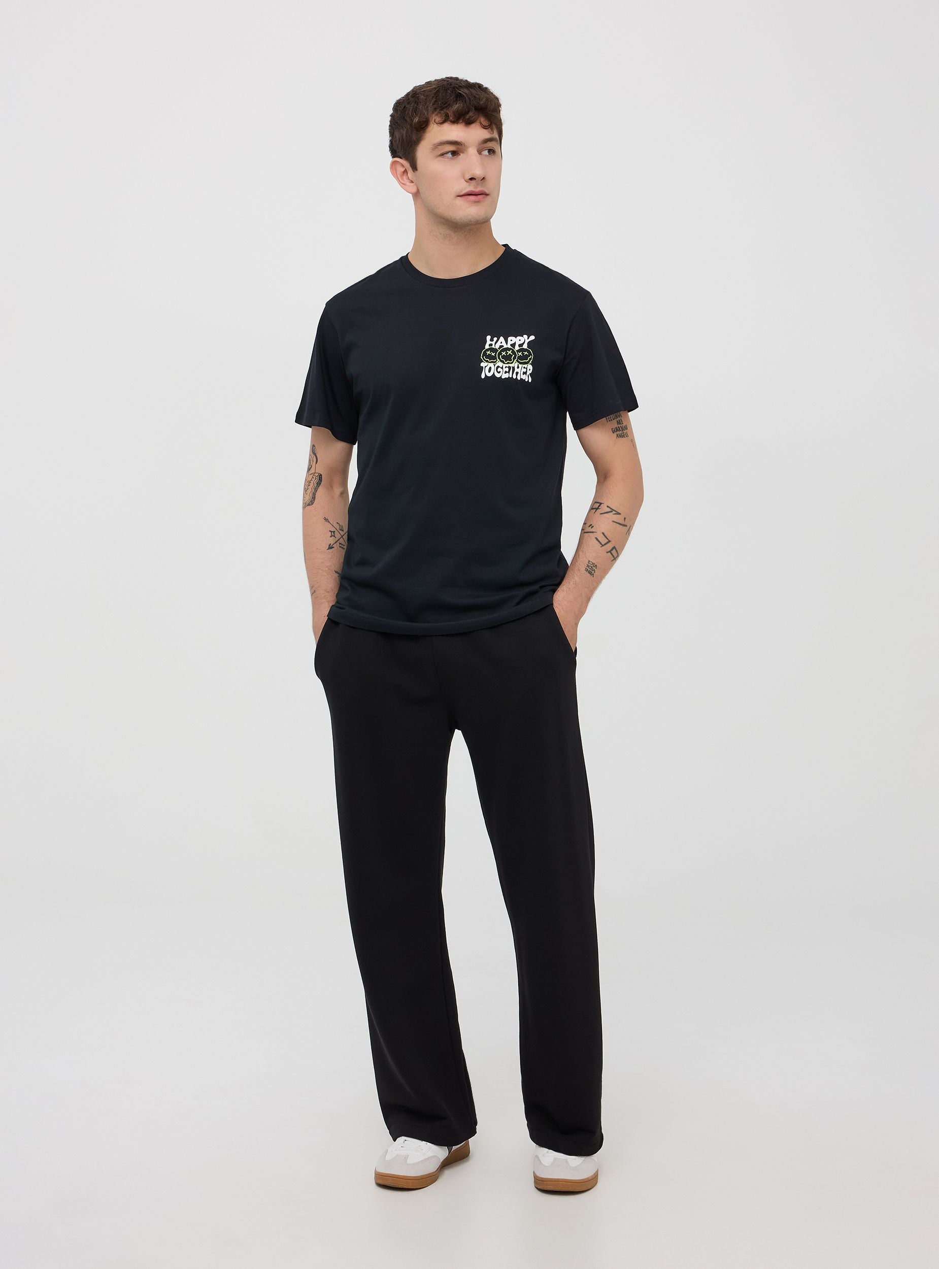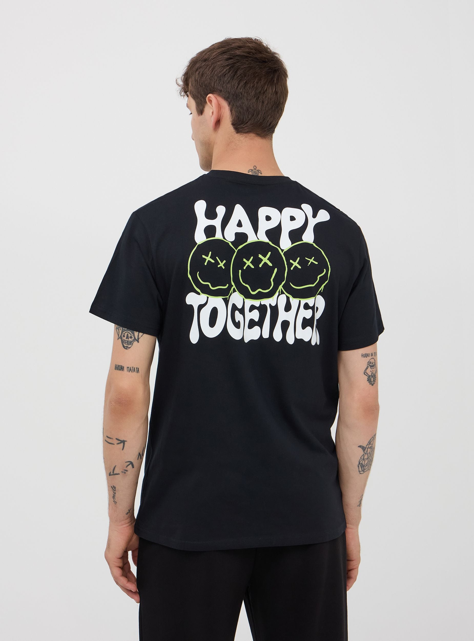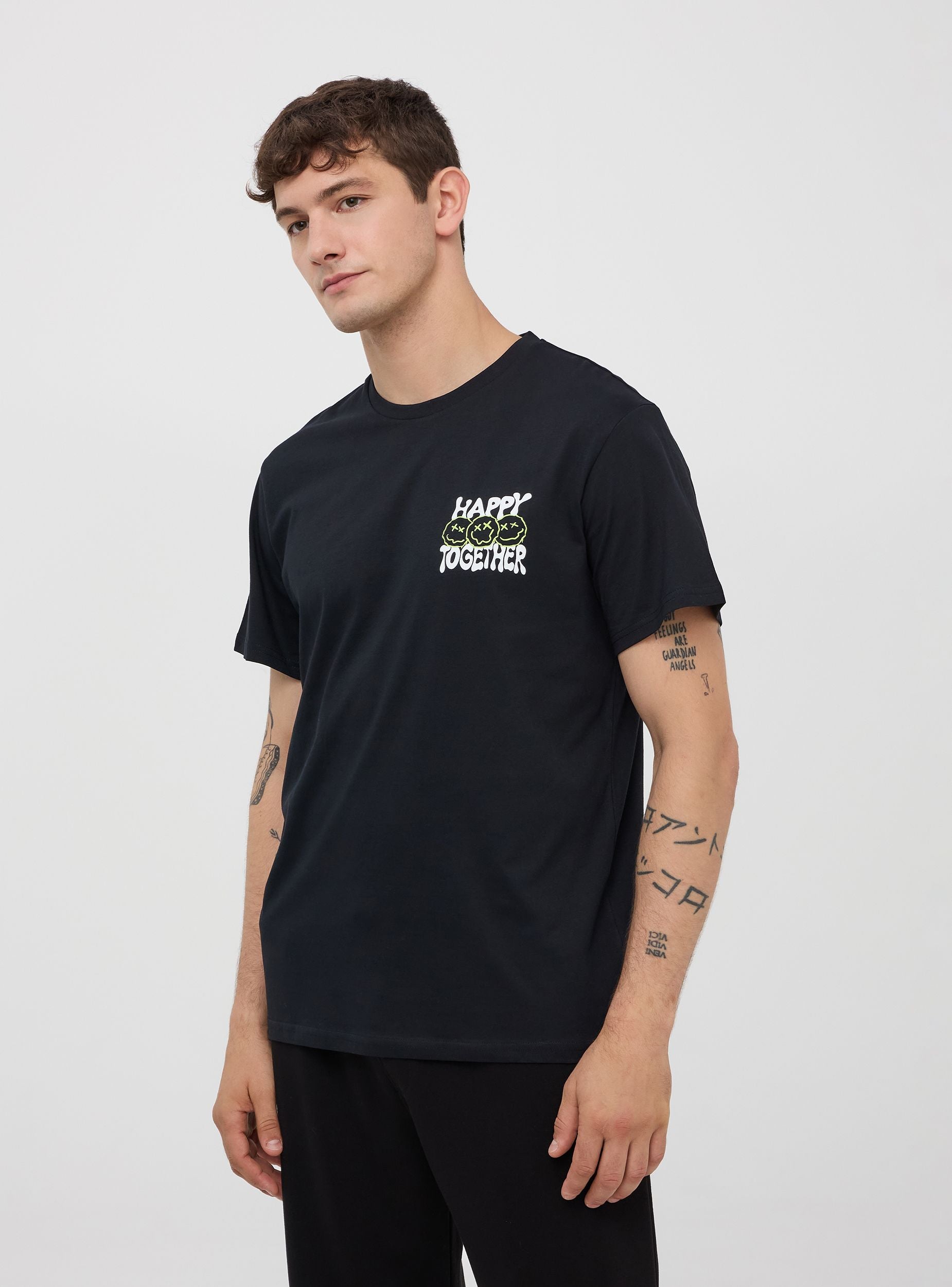Majica za muškarce od pamužnog džersija sa malim ponovljenim printom na prednjem delu i većim na leđima. Model sa okruglim izrezom i kratkim rukavima. Regularna kroja.