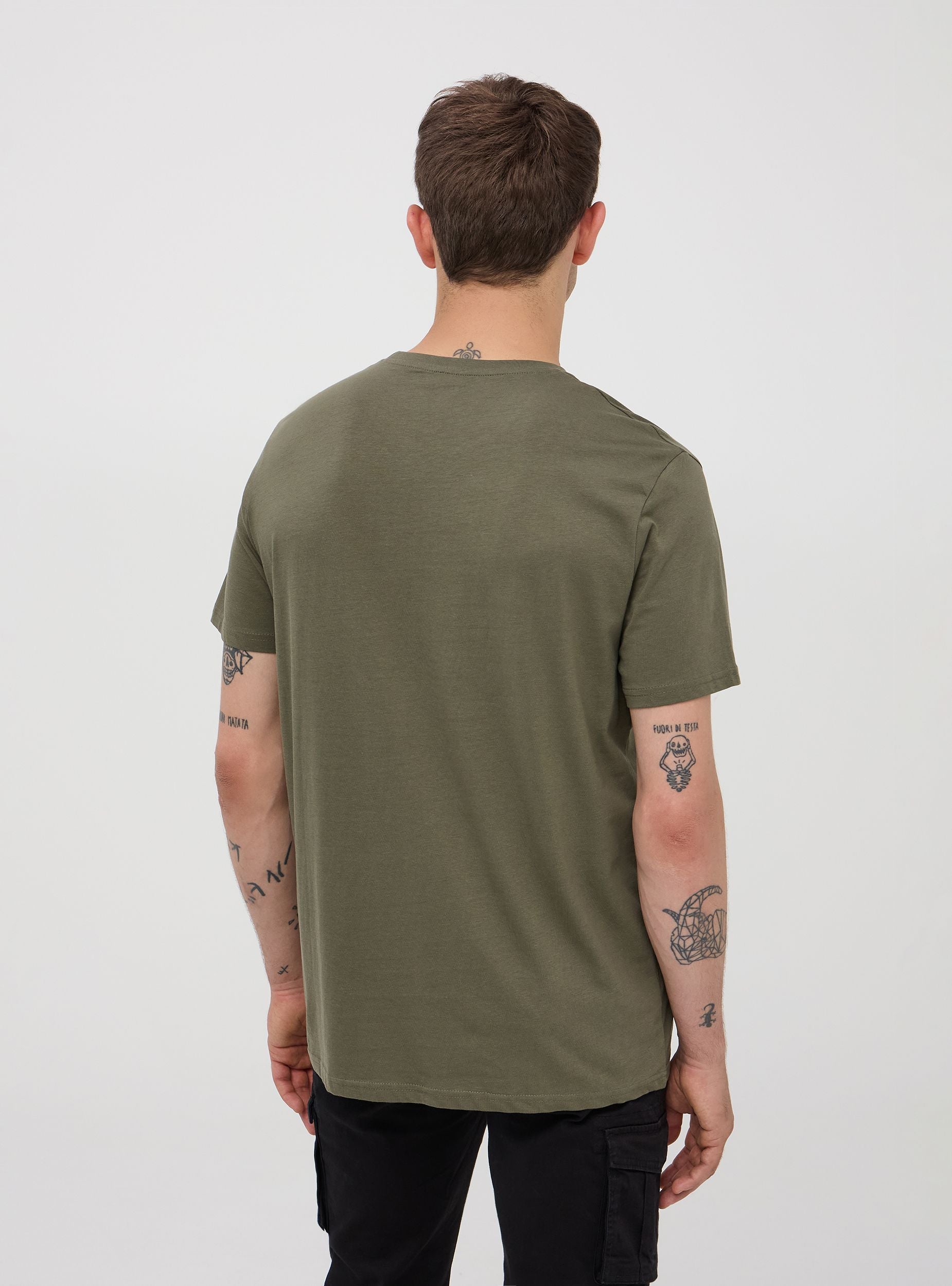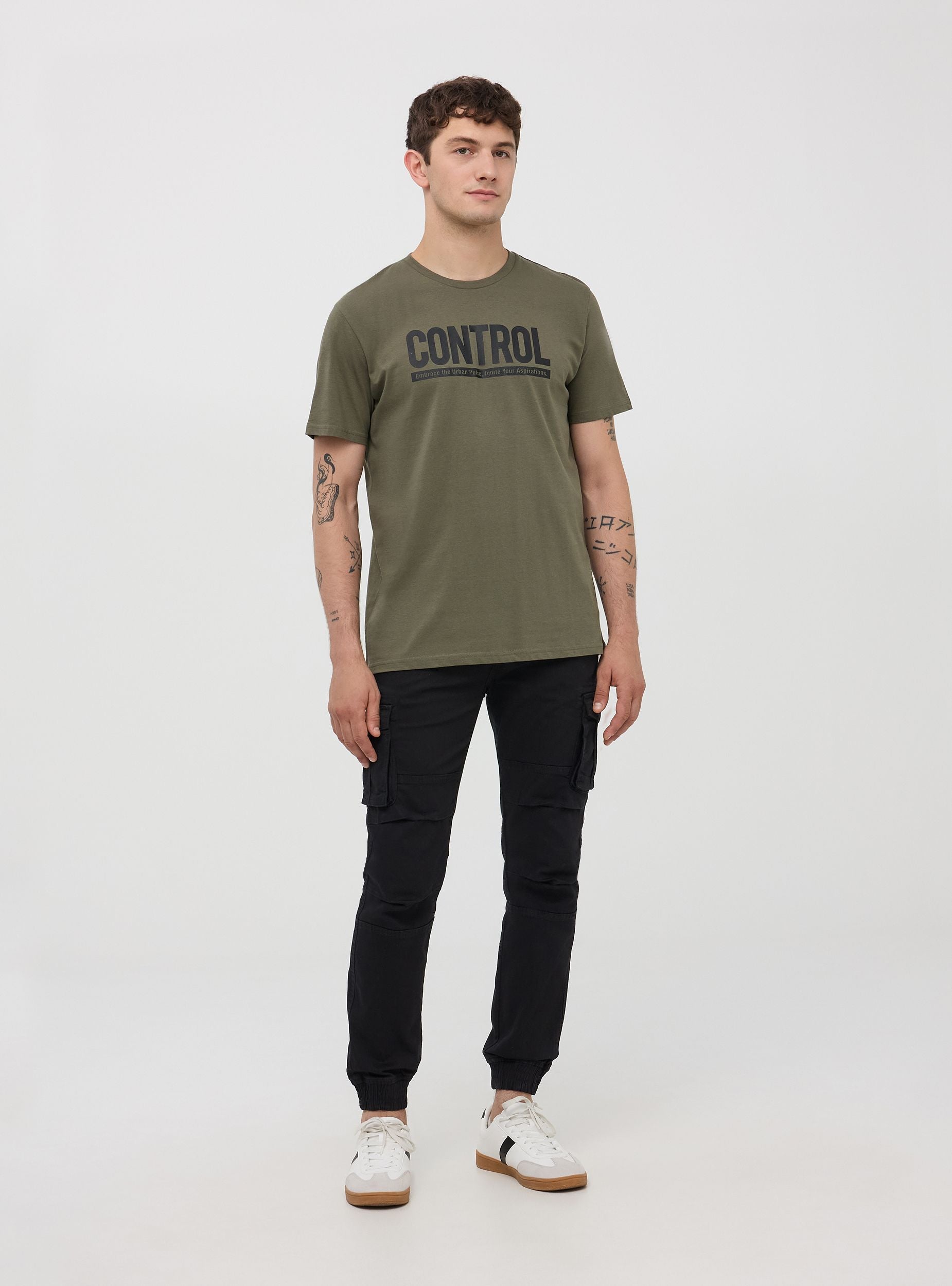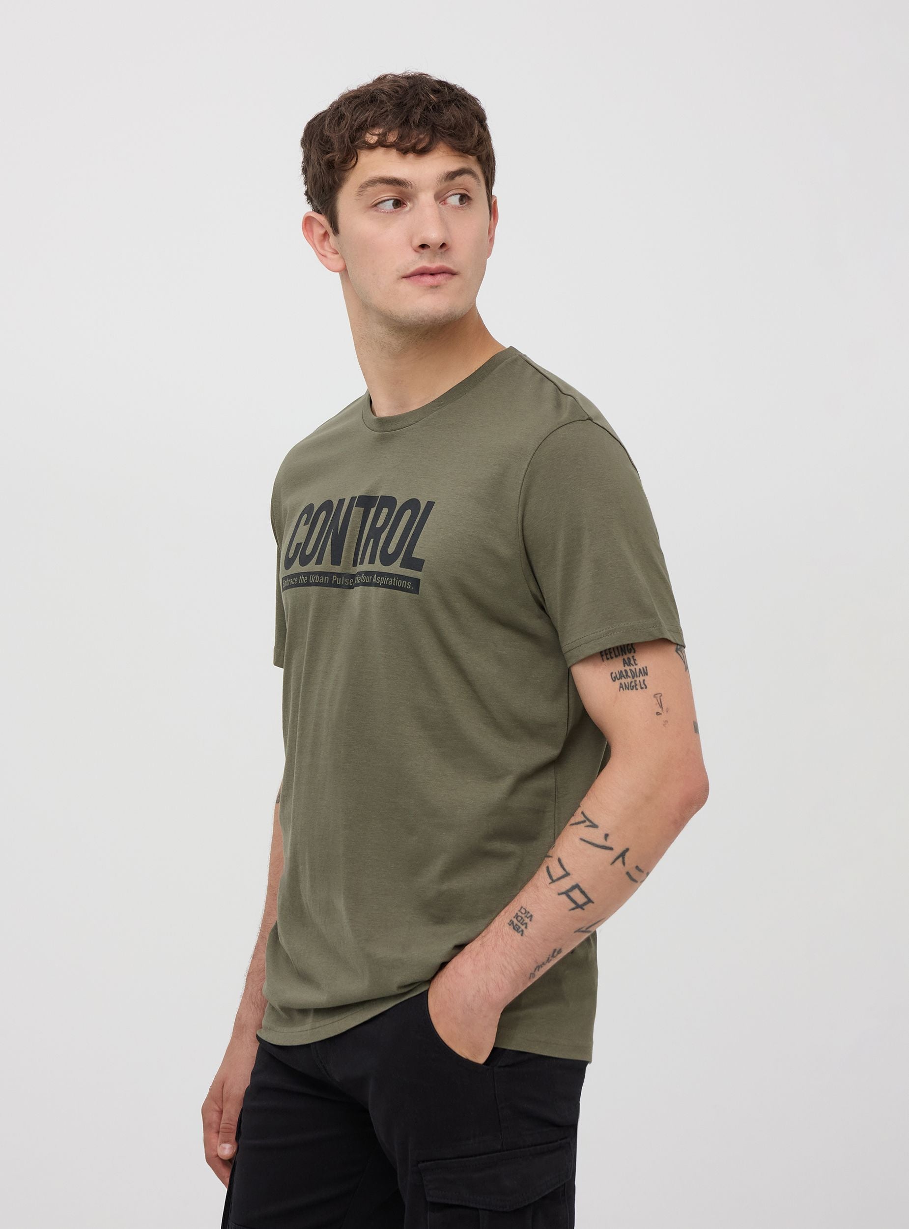 Muška majica od pamučnog džersija sa štampanom gumiranom natpisom na prednjoj strani. Model sa okruglim izrezom i kratkim rukavima. Regularna kroja.Detalji