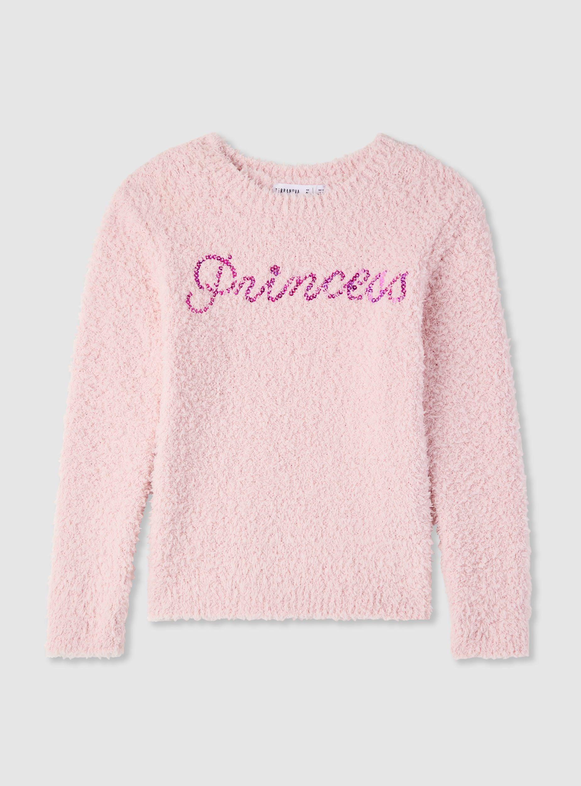 Majica za devojčice idealna za svakodnevne kombinacije i trenutke zabave. Mekan i udoban dizajn čini je savršenom za hladniju sezonu, dok dekorativni natpis sa šljokicama dodaje sjajan i razigran dodir. Okrugli izrez i dugi rukavi obezbeđuju prijanjanje, savršeno za kombinovanje sa farmerkama ili suknjama za svestrane i vesele outfite.