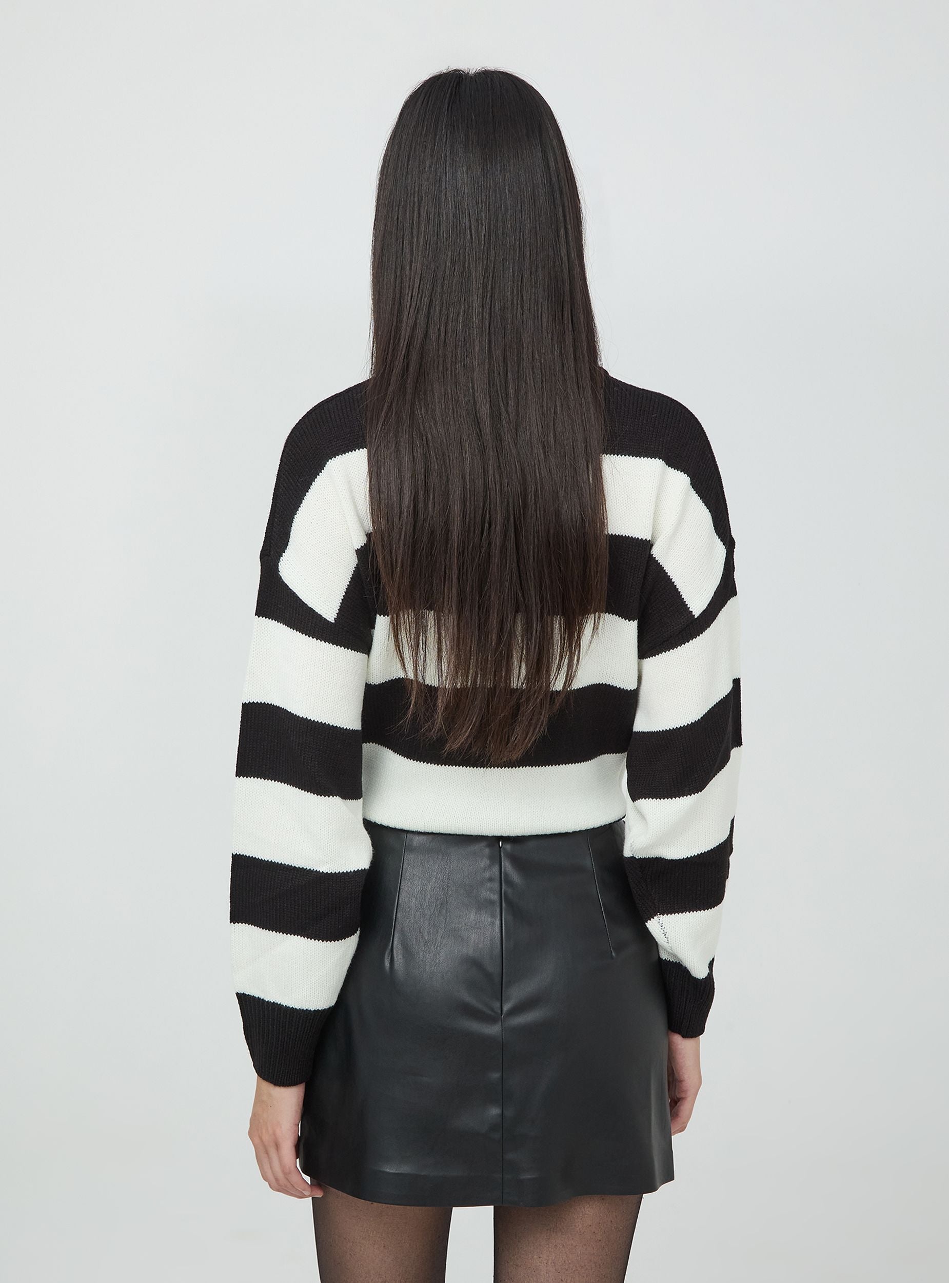 Mini suknja od kože za žene. Deo suštine metropolitanskog glamura. Pristajanje koje se prilagođava telu i ravni kroj ističu siluetu, čineći je savršenom za elegantne večeri i ležerne izlaske. Opremljena je skrivenim zatvaračem na zadnjem delu.