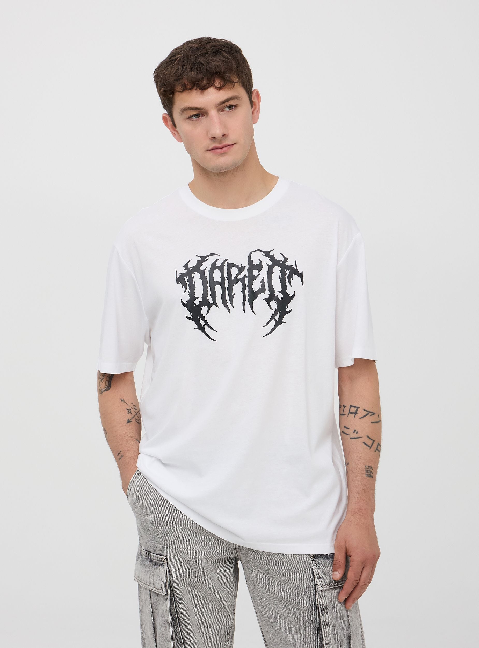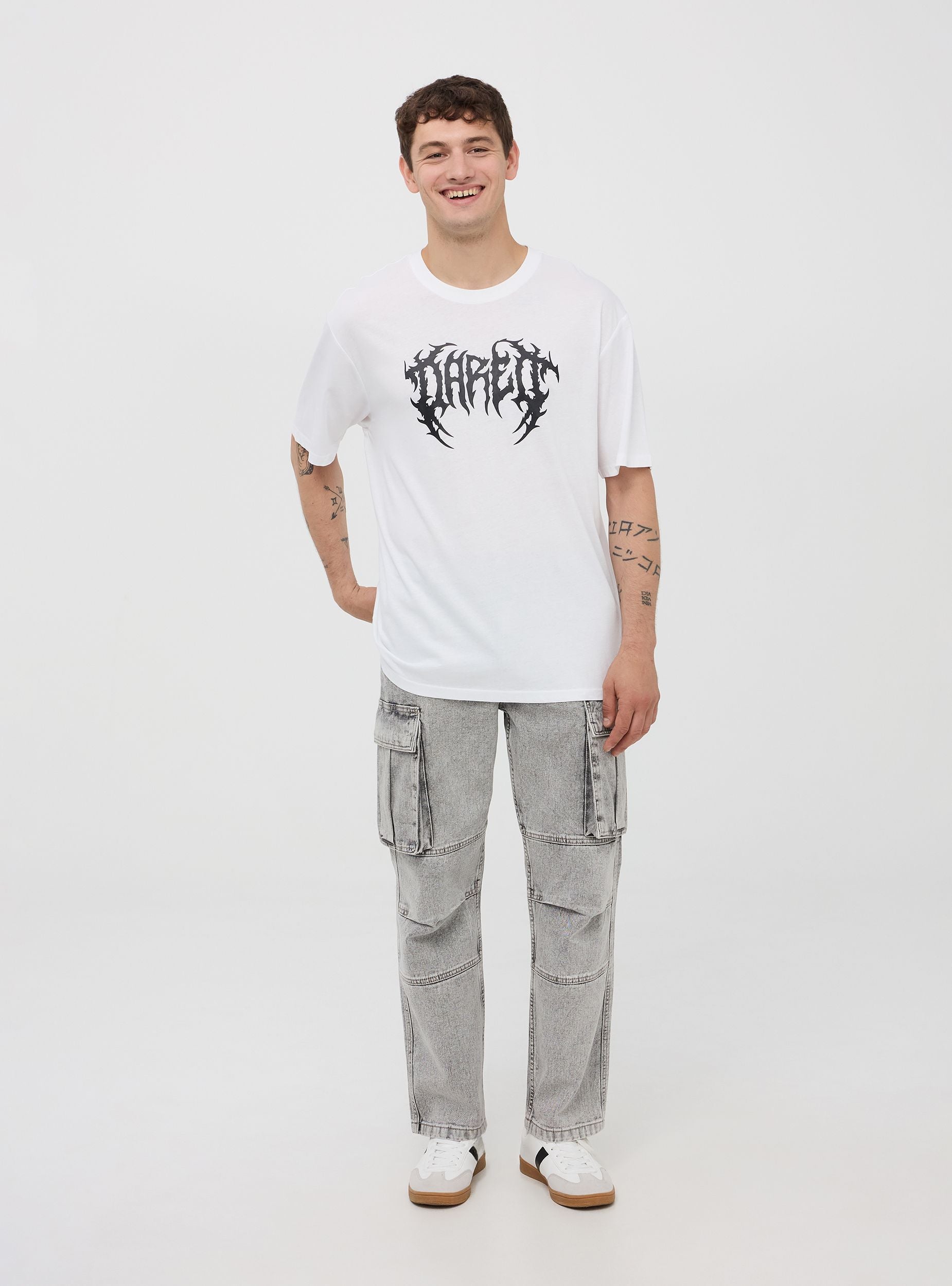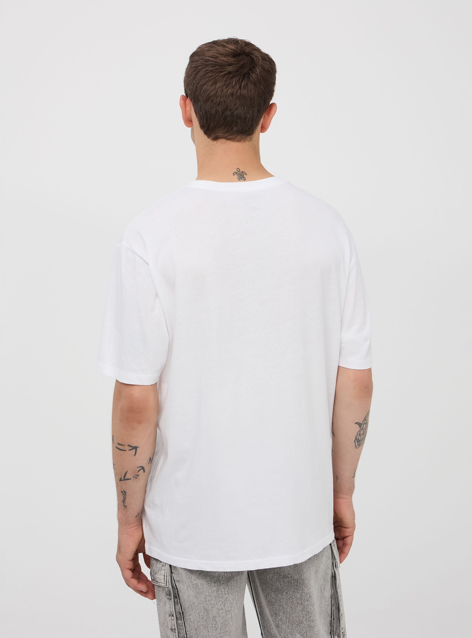 Majica za muškarce od pamučnog džersija sa prednjim tribalnim printom. Model sa okruglim izrezom i kratkim rukavima. Oversize kroj.Detalji
