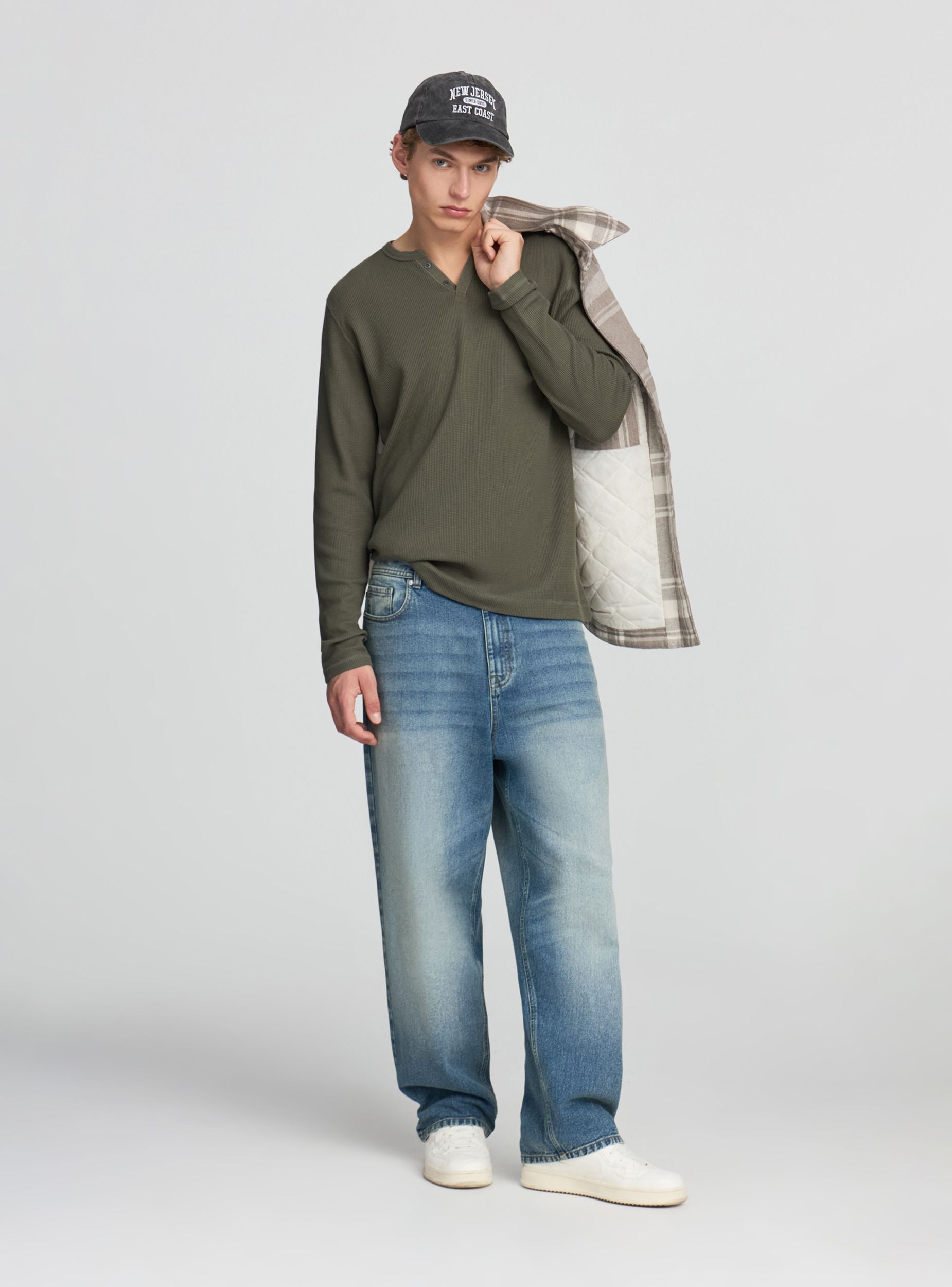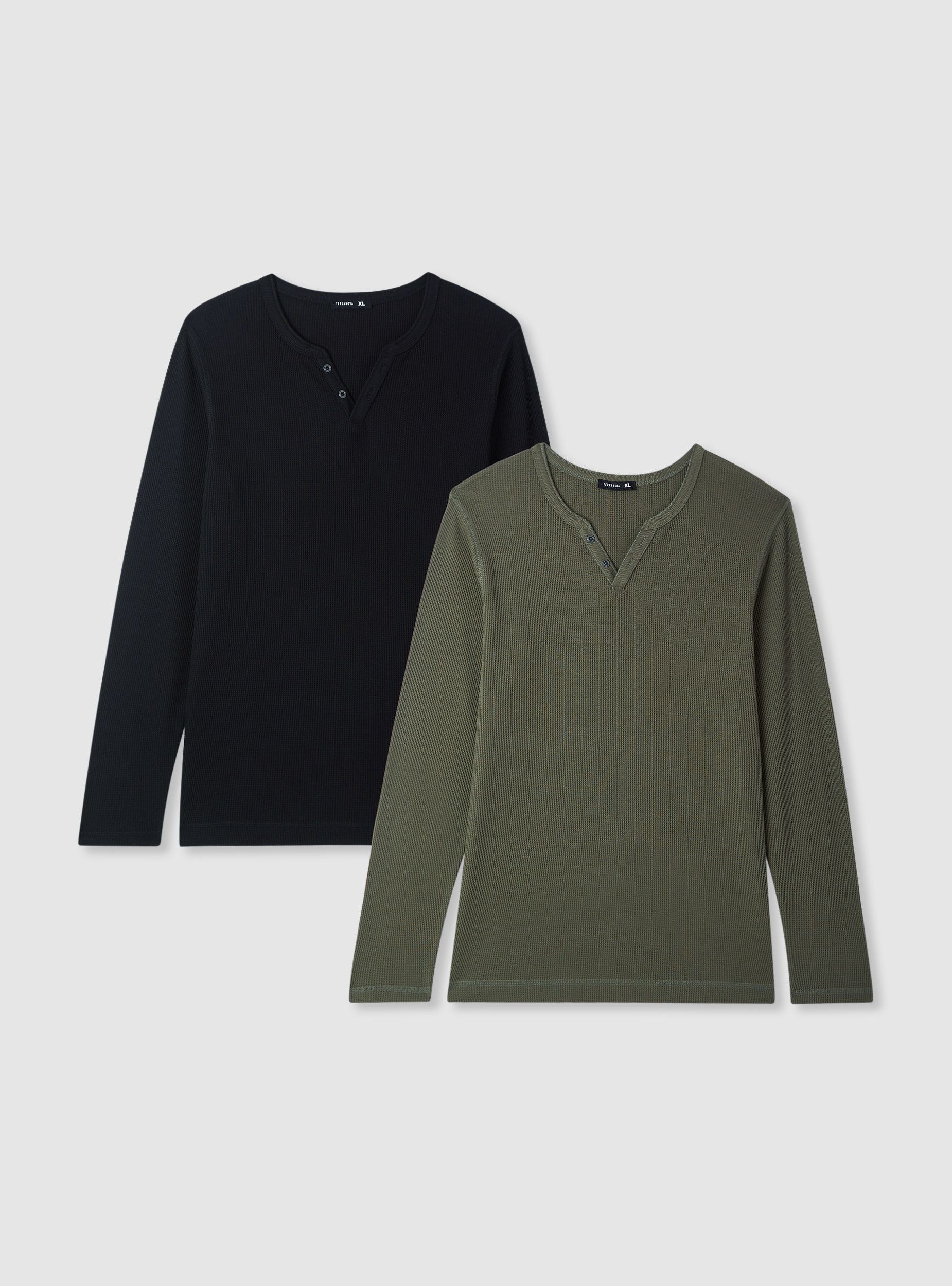 Pakovanje se sastoji od 2 muške majice dugih rukava, idealne za ležeran i svestran izgled. Imaju V-izrez sa kopčanjem na dugmad, savršene za kombinovanje sa farmerkama ili chino pantalonama za udoban i moderan outfit. Regularan kroj obezbeđuje udobnost tokom celog dana. Idealne za jesenju i zimsku sezonu.