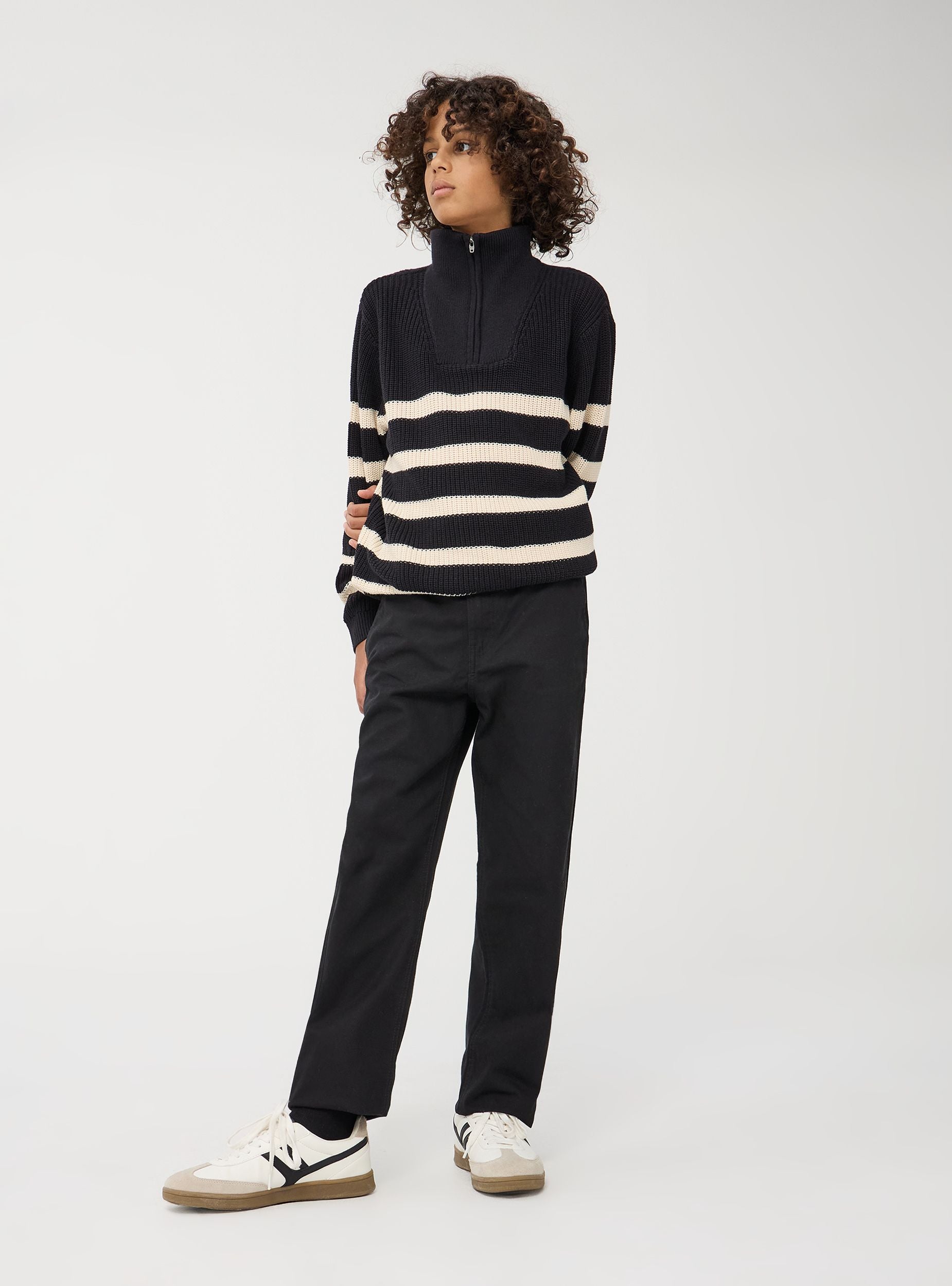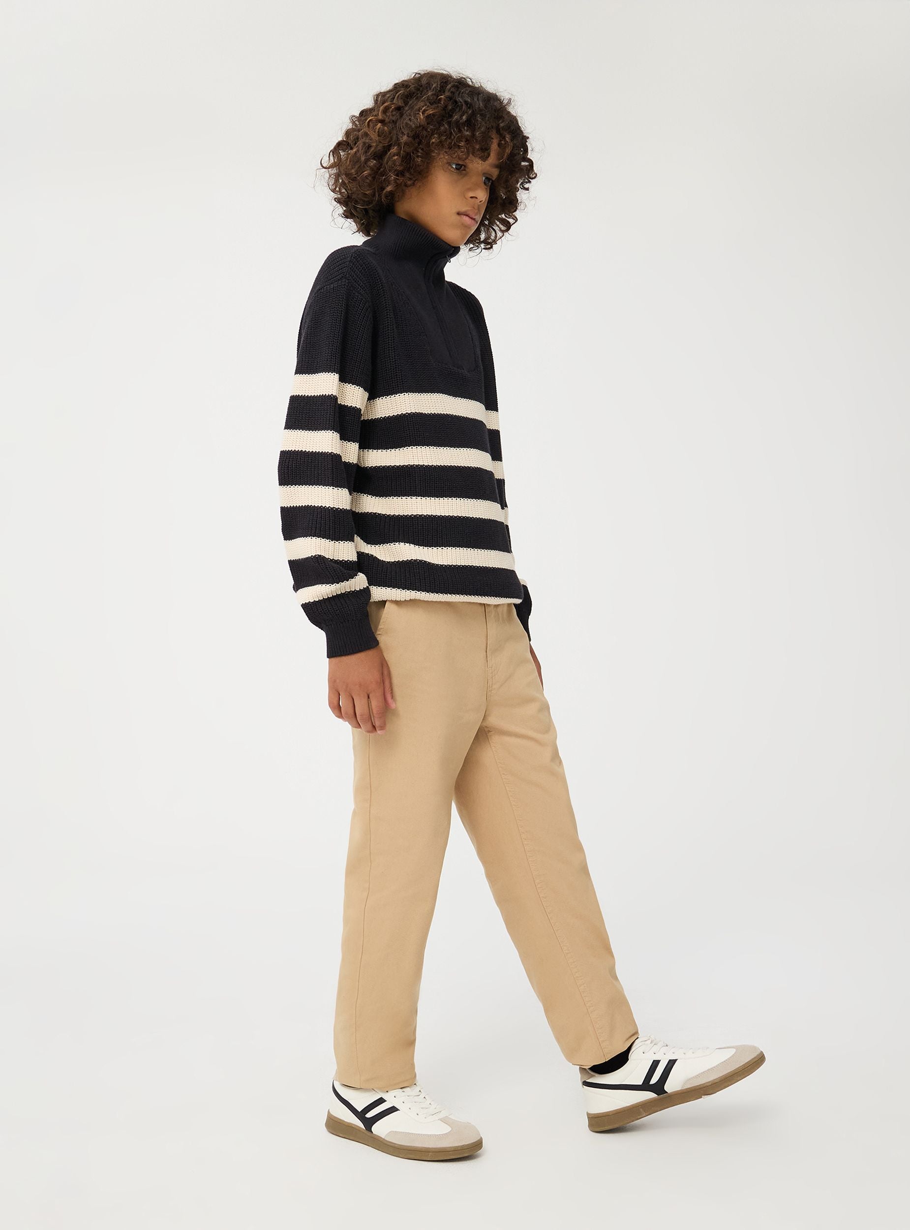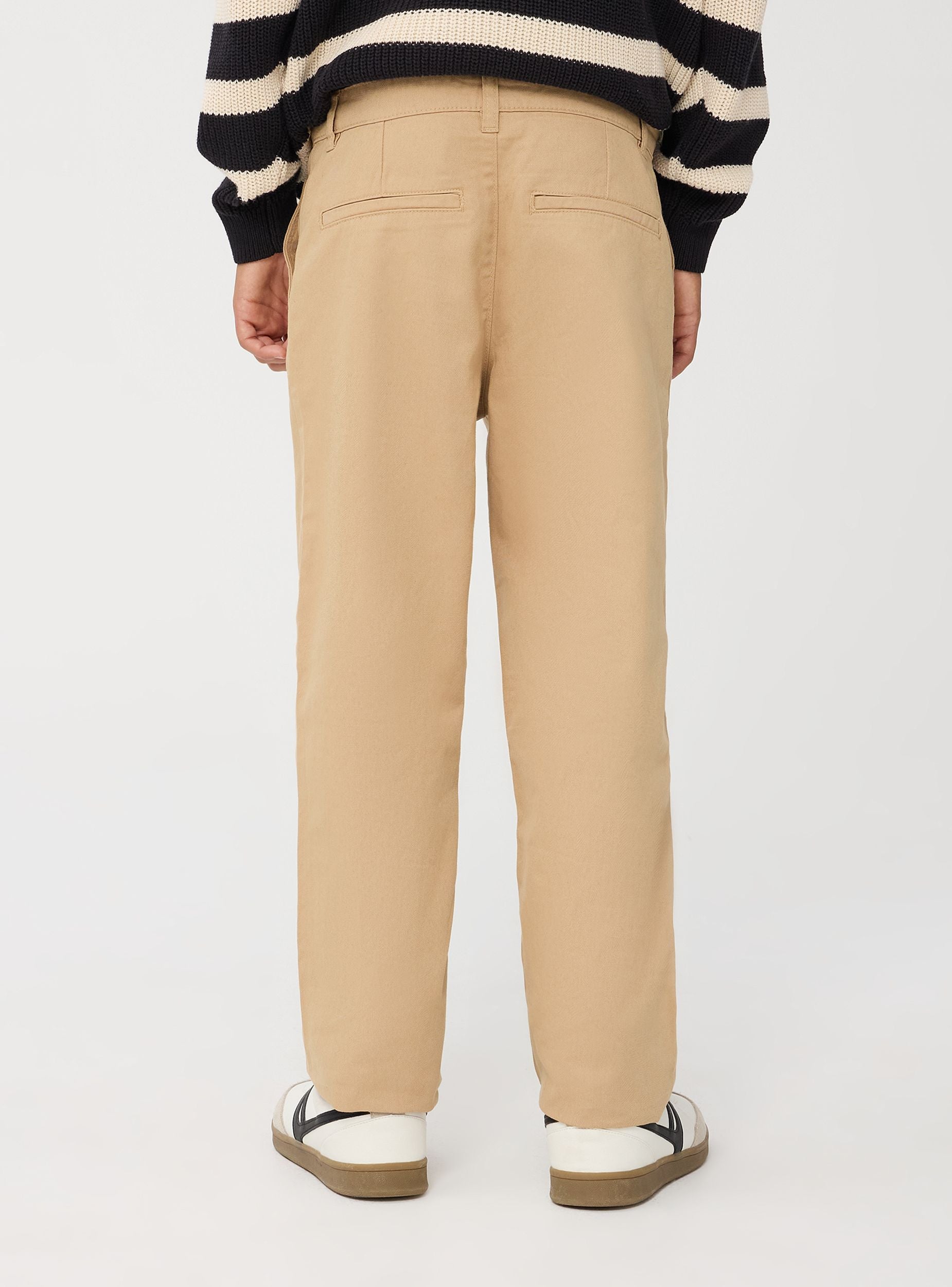 Pakovanje se sastoji od dva dečija pantalona, od čiste pamuka. Chino model je obogaćen francuskim džepovima, idealnim za sofisticiran izgled u najmanjim detaljima. Zatvaranje je olakšano dugmetom i rajsferšlusom, uz dodatak petlji za pojas koje osiguravaju prilagodljivu siluetu. Idealni su za formalne događaje ili za dodavanje daška klase svakodnevnoj garderobi deteta.Detalji