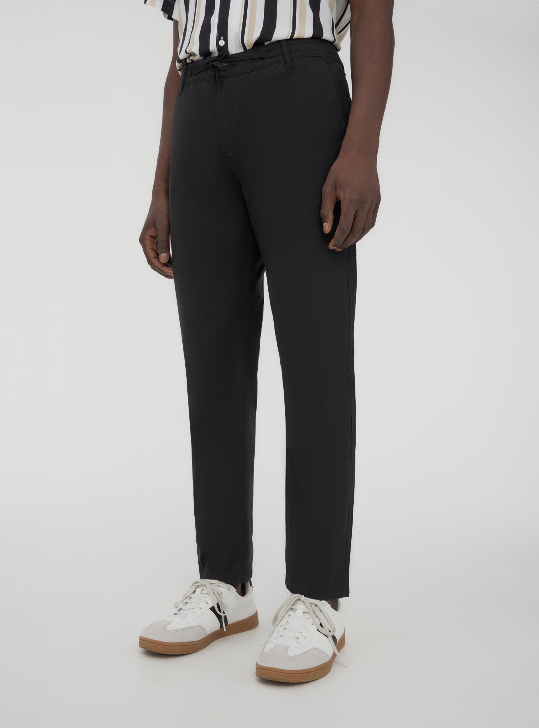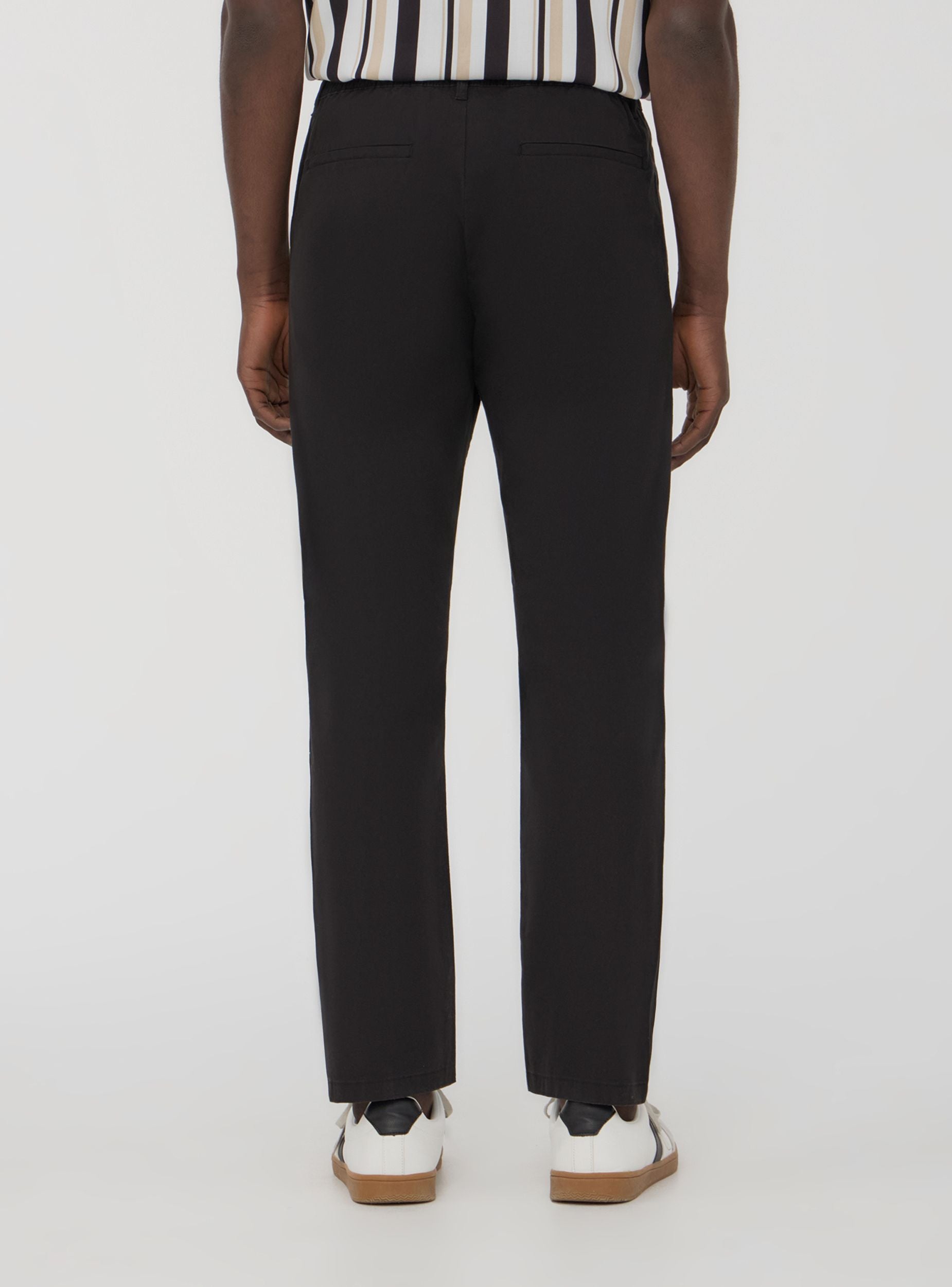 Lagani muški chino pantaloni savršeni za rafinirani i udoban izgled. Udoban kroj i lagani materijal čine ih idealnim za topliju sezonu, dok regulisana šnala i pojasni prolazi omogućavaju prilagođavanje kroja. Zatvaranje na dugme i rajsferšlus garantuje praktičnost, dok bočne džepove dodaju funkcionalnost. Jednobojni dizajn ih čini svestranim za ležerne kombinacije sa majicama i patikama ili elegantnije sa košuljom i mokasinama.