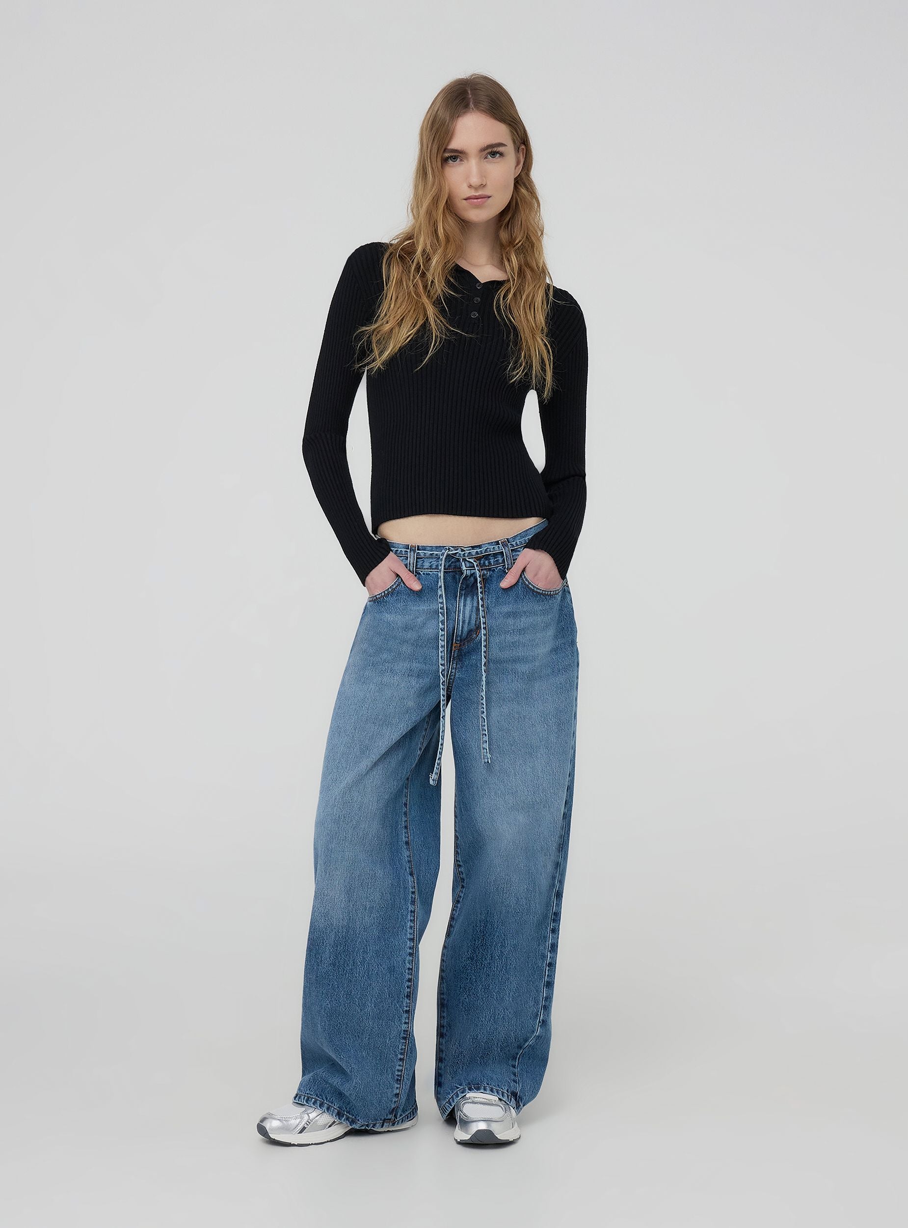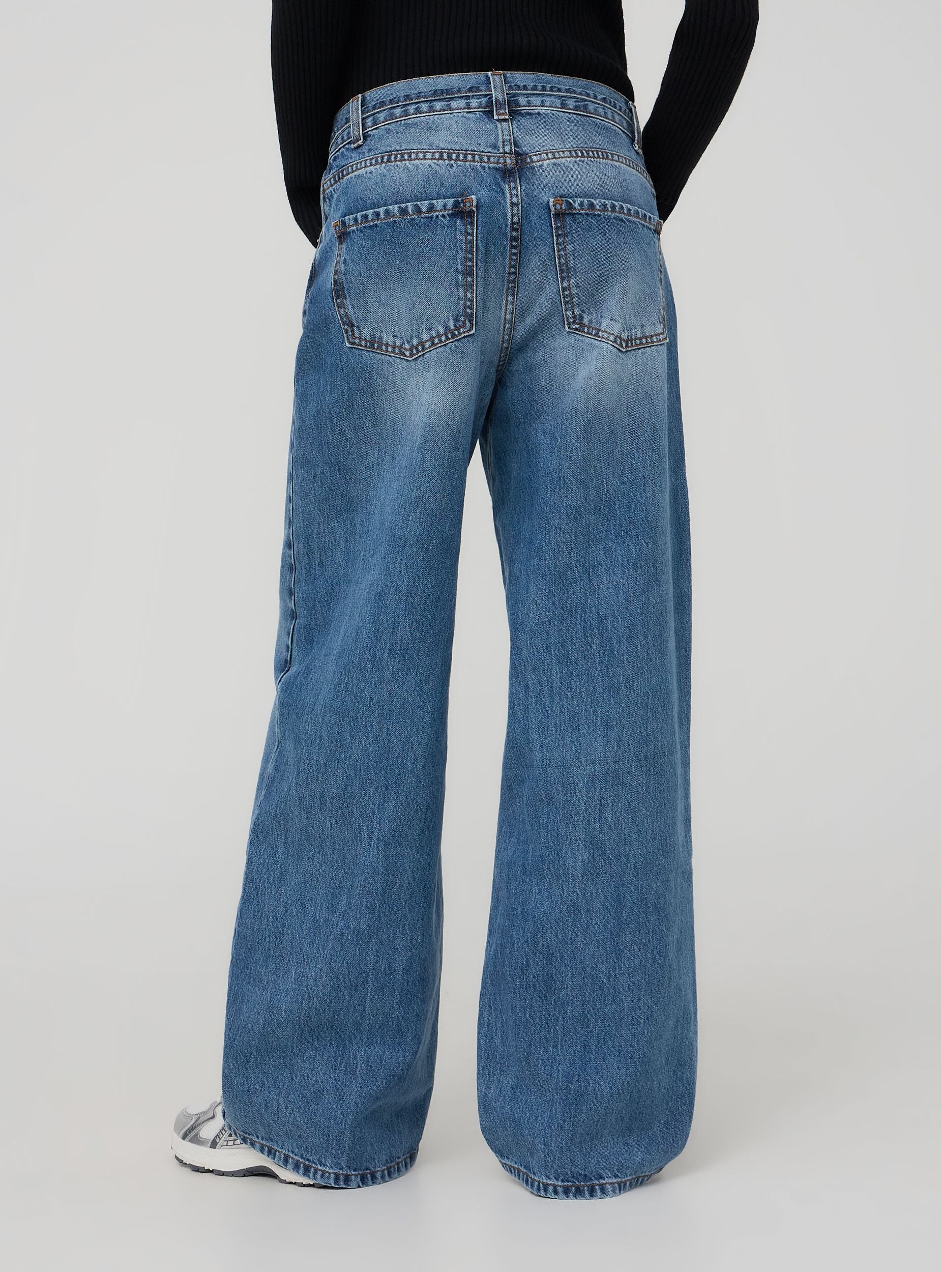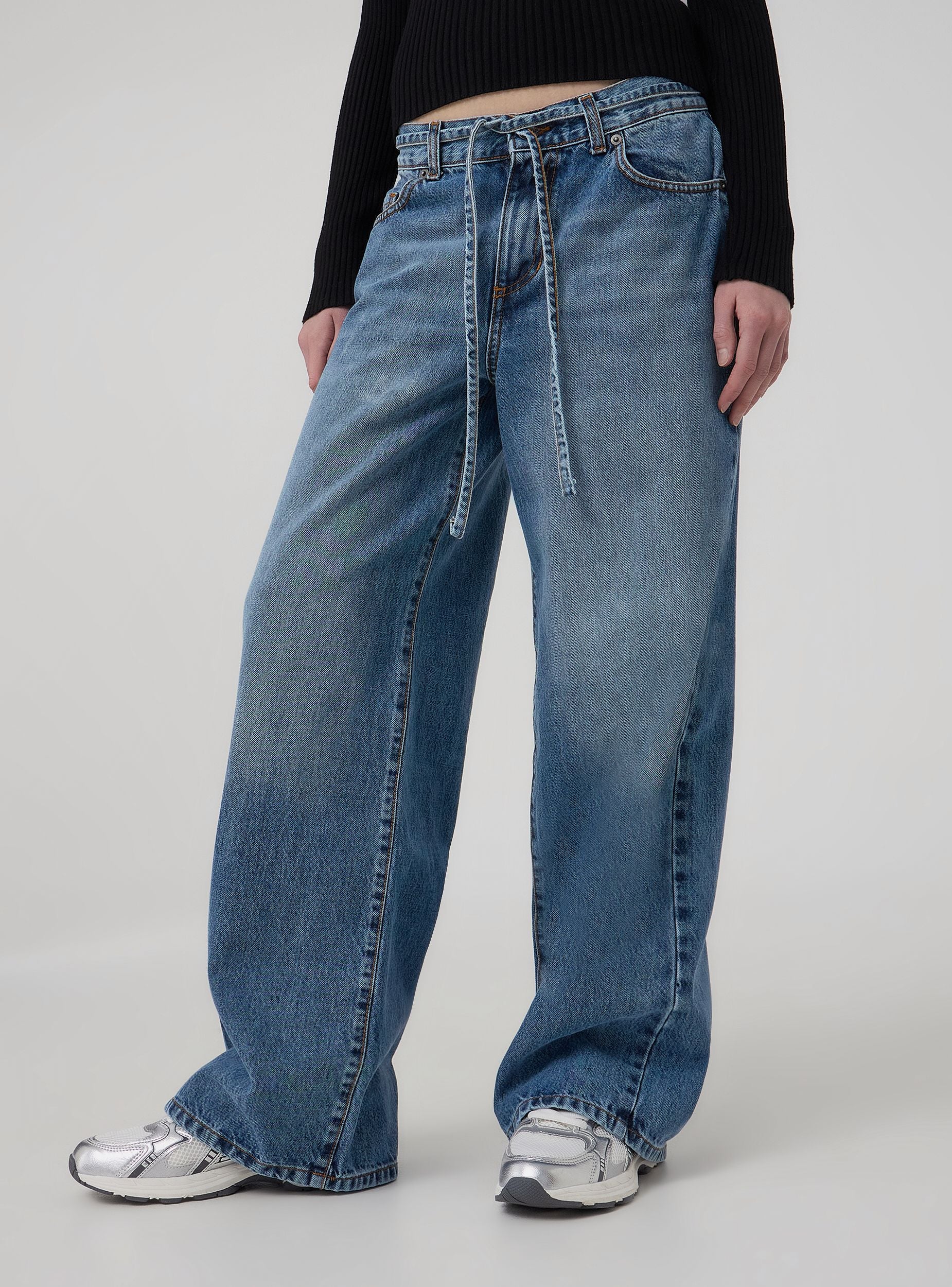 Jeans da donna in denim con un design super wideleg, perfetto per un look di tendenza e confortevole. Dotato di cintura regolabile in vita, aggiunge un dettaglio pratico e stiloso al capo. Le linee ampie delle gambe offrono un'ottima vestibilità, ideale per completare outfit casual con un tocco moderno. Un modello versatile che si adatta facilmente a diverse occasioni, mantenendo uno stile unico e attuale.Detalji