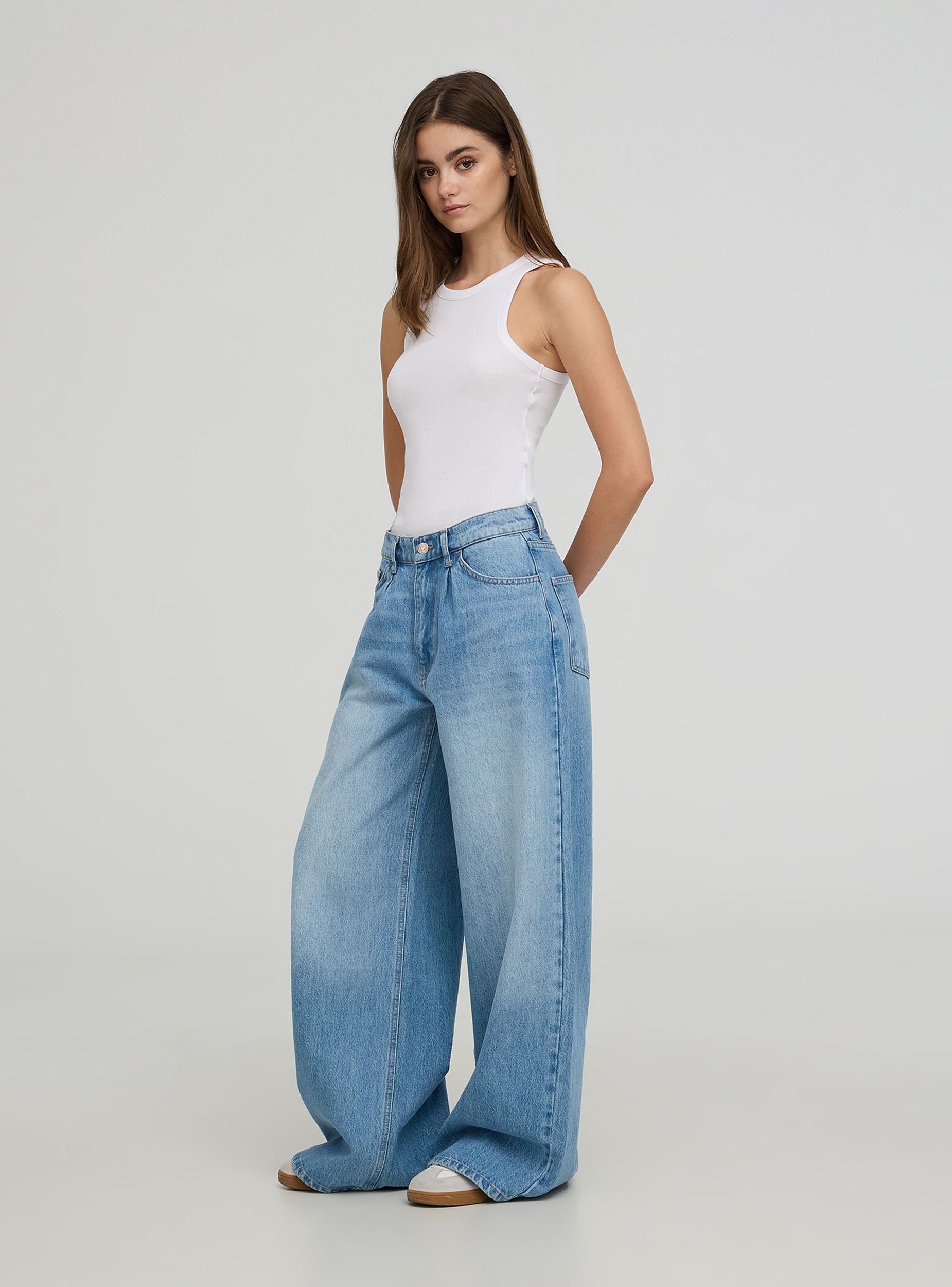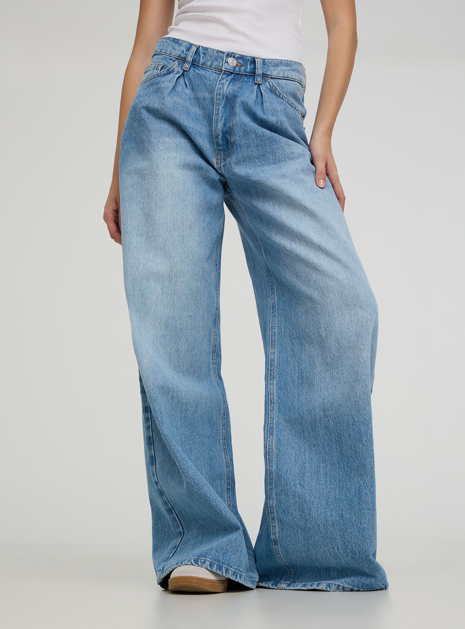 Ženski farmerke, širokog kroja sa veoma širokim nogavicama i pregibima. Imaju pet džepova i pojasne petlje. Savršeni su za ležerne i moderne kombinacije.Detalji
