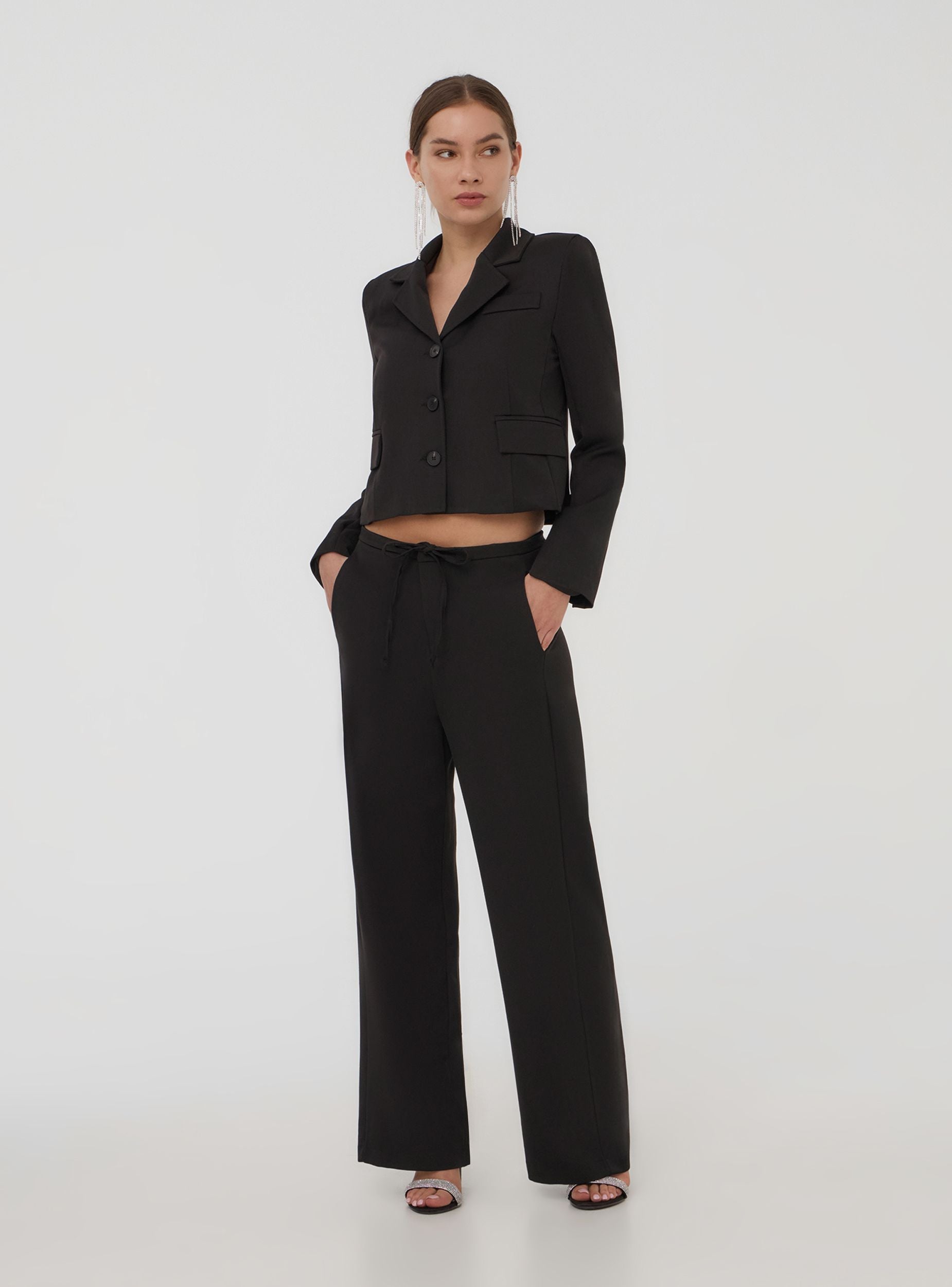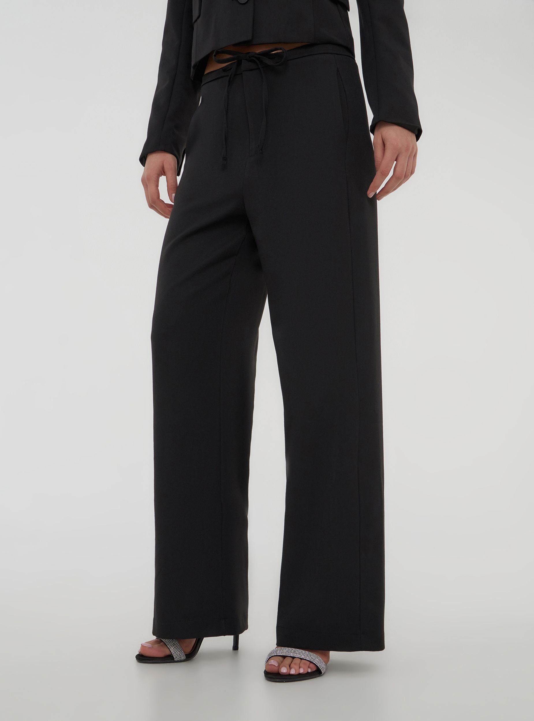 Pantaloni da donna dallo stile moderno e versatile, caratterizzati da un taglio wide leg che dona un tocco sofisticato al look. Il design confortevole è arricchito da una vita regolabile con coulisse, garantendo una vestibilità personalizzata e comoda. Perfetti per creare outfit casual o eleganti, si abbinano facilmente a top e scarpe di ogni tipo. Ideali per chi cerca praticità senza rinunciare allo stile.Detalji
