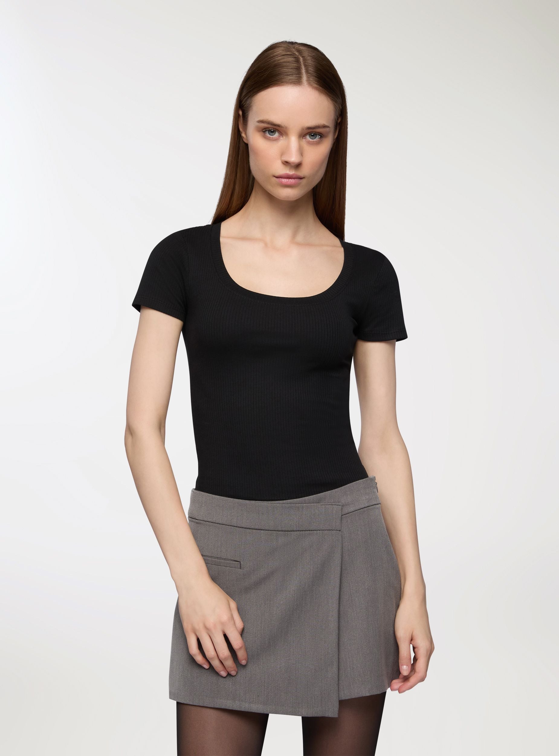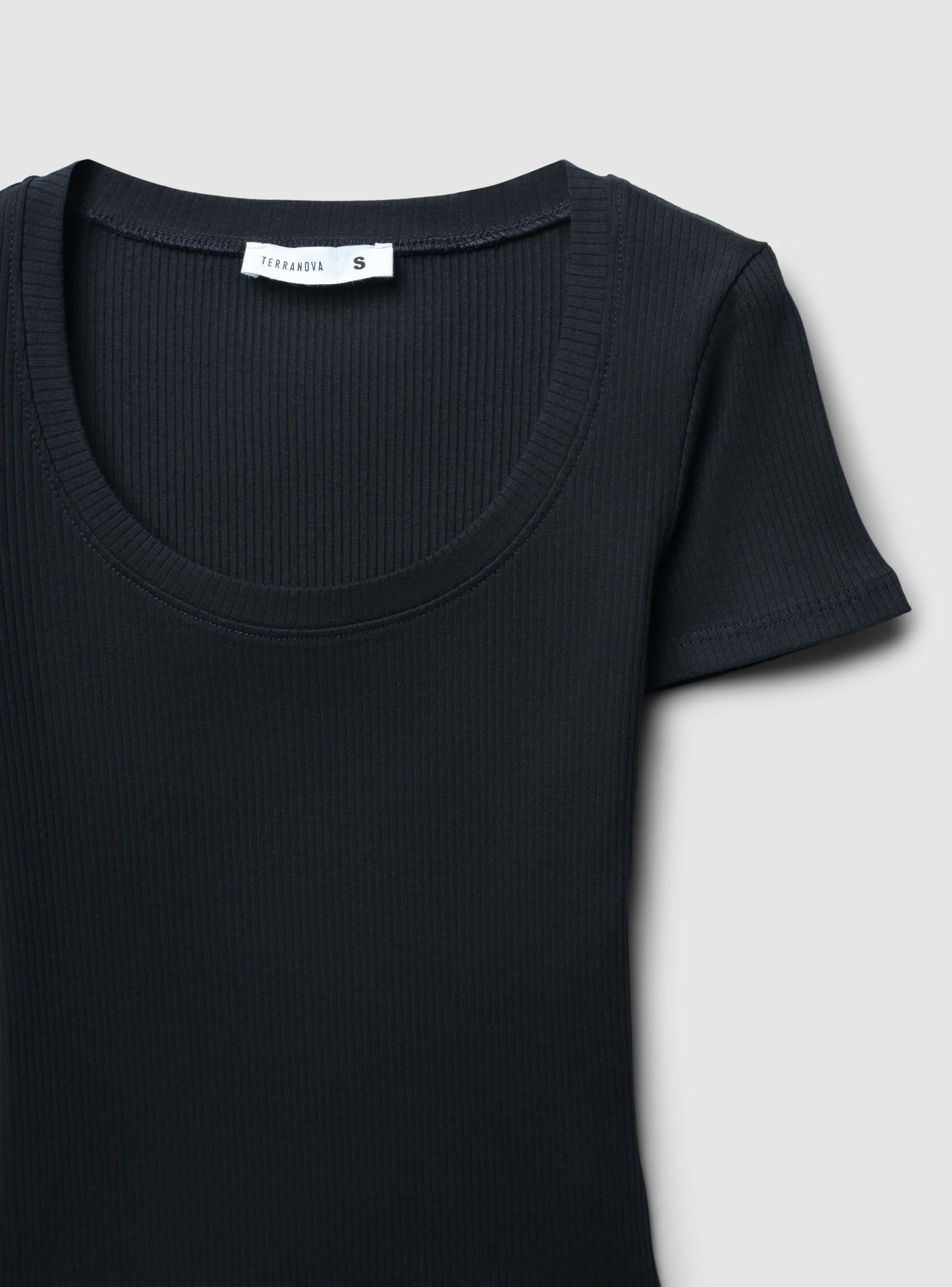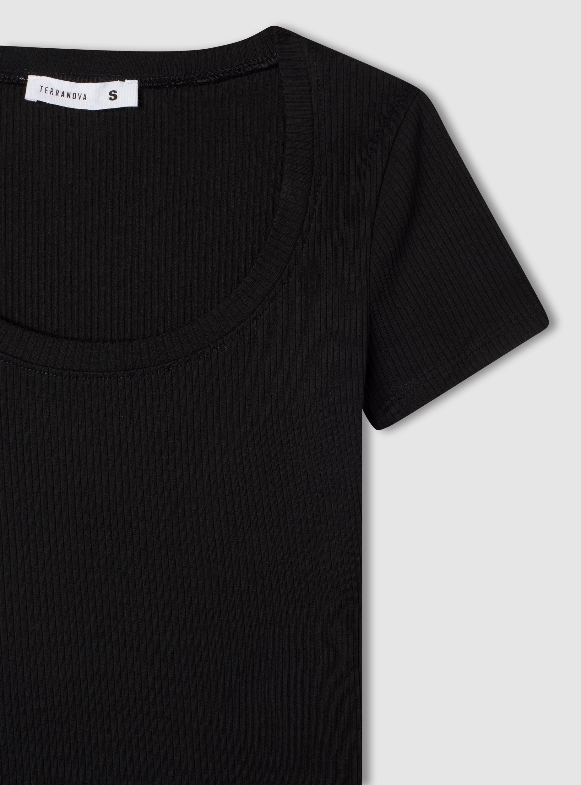 Ženska majica uskog kroja, idealna za ležeran i svestran izgled. Ima jednostavan rebrasti dizajn u jednoj boji koji dodaje stilsku notu odevnom predmetu. Savršena za kombinovanje sa farmerkama ili pantalonama za svakodnevni outfit. Okrugli izrez i kratki rukavi čine je udobnom i pogodnom za razne prilike. Neophodan komad u garderoberu svake žene.Detalji