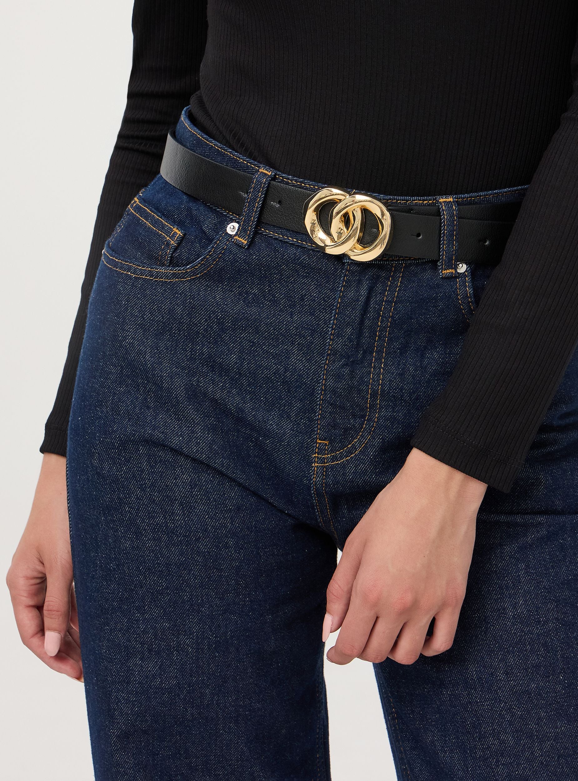 Ženska pojasnica idealna za dodavanje daška elegancije bilo kojoj kombinaciji. Karakteriše je zlatna kopča sa dizajnom od dva upletena prstena, ova pojasnica spaja stil i funkcionalnost. Srednja širina pojasnice čini je svestranom i pogodnom za nošenje kako sa pantalonama, tako i sa haljinama. Savršena za upotpunjavanje vašeg svakodnevnog izgleda ili za dodavanje detalja klase večernjoj odeći.