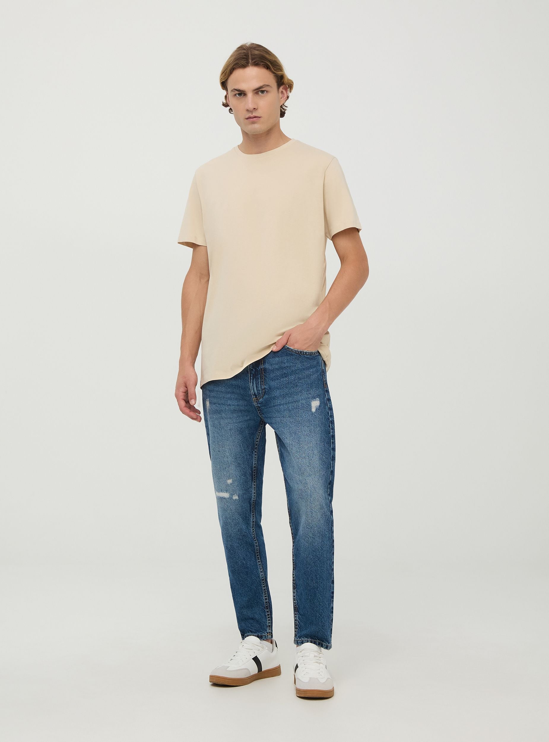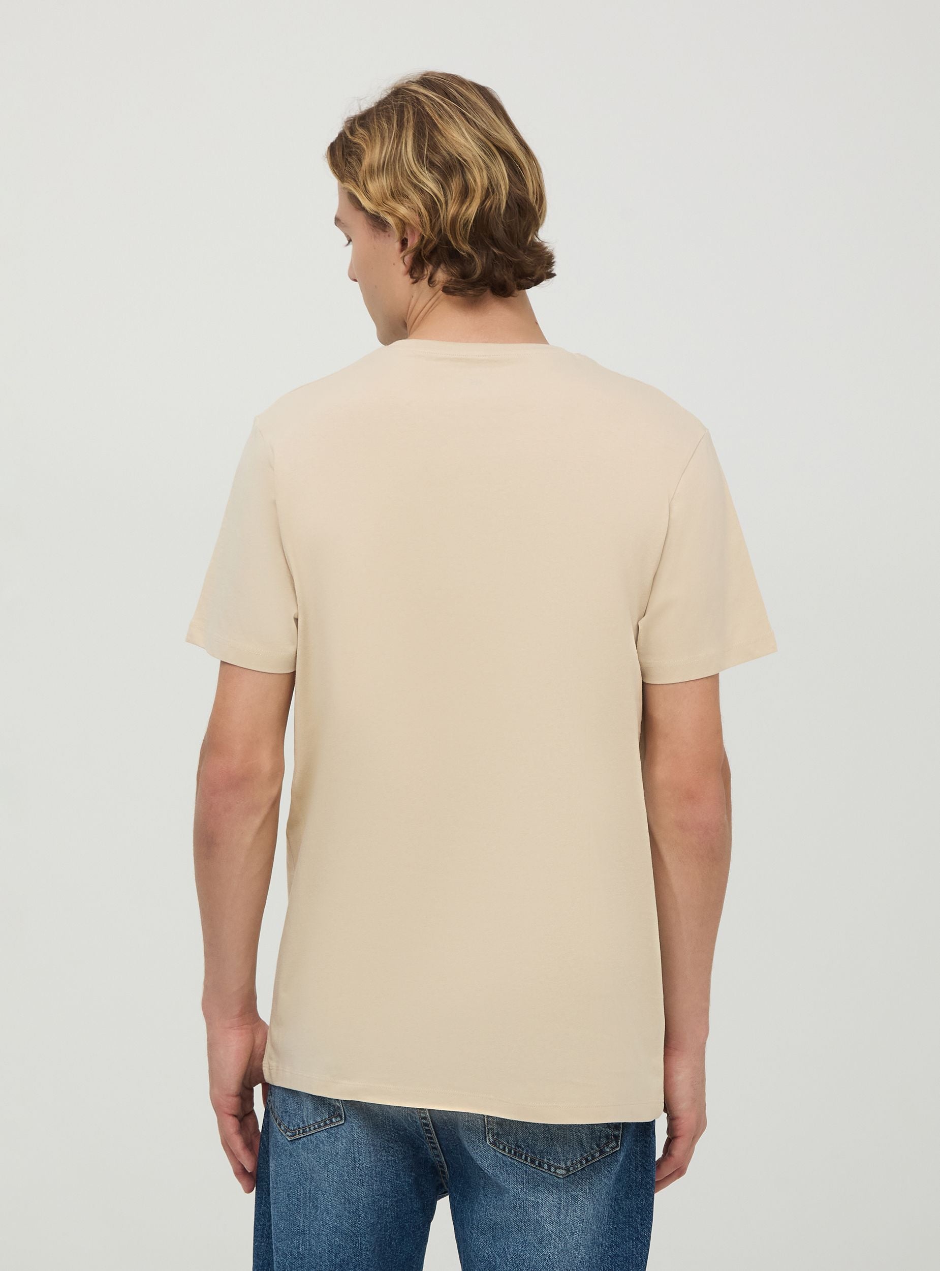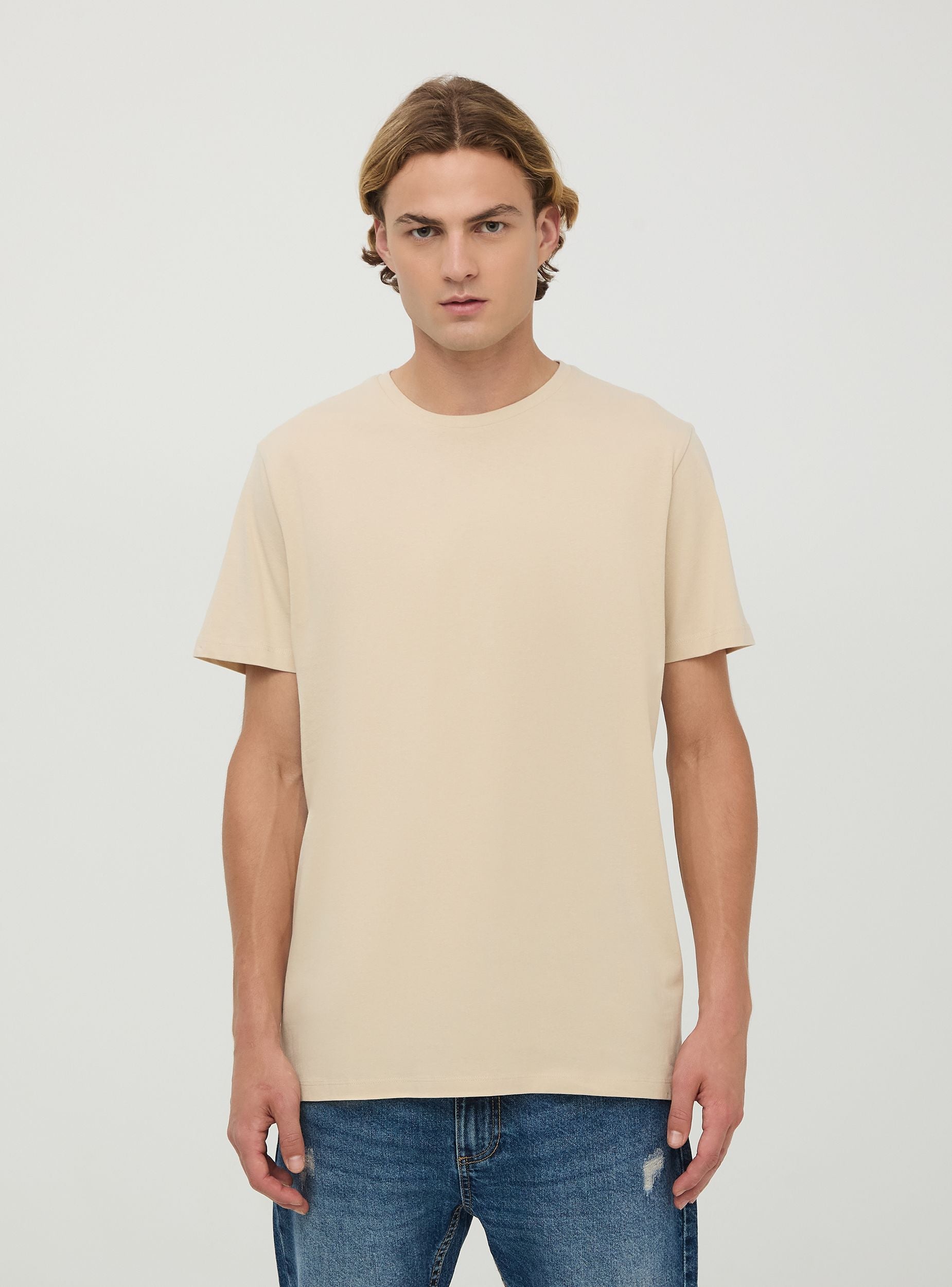 Muška majica od jednobojnog pamučnog džersija. Model s okruglim izrezom i kratkim rukavima. Osnovni komad savršen za svakodnevne kombinacije. Regularna kroj.Detalji