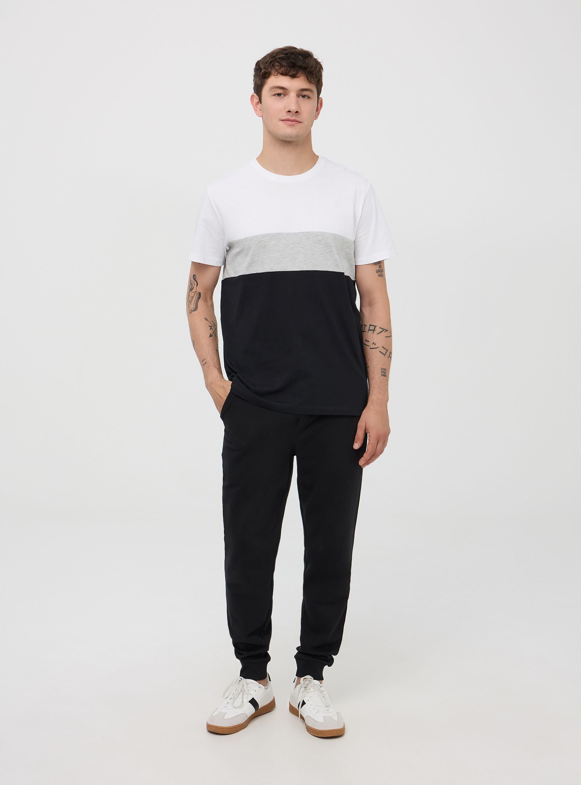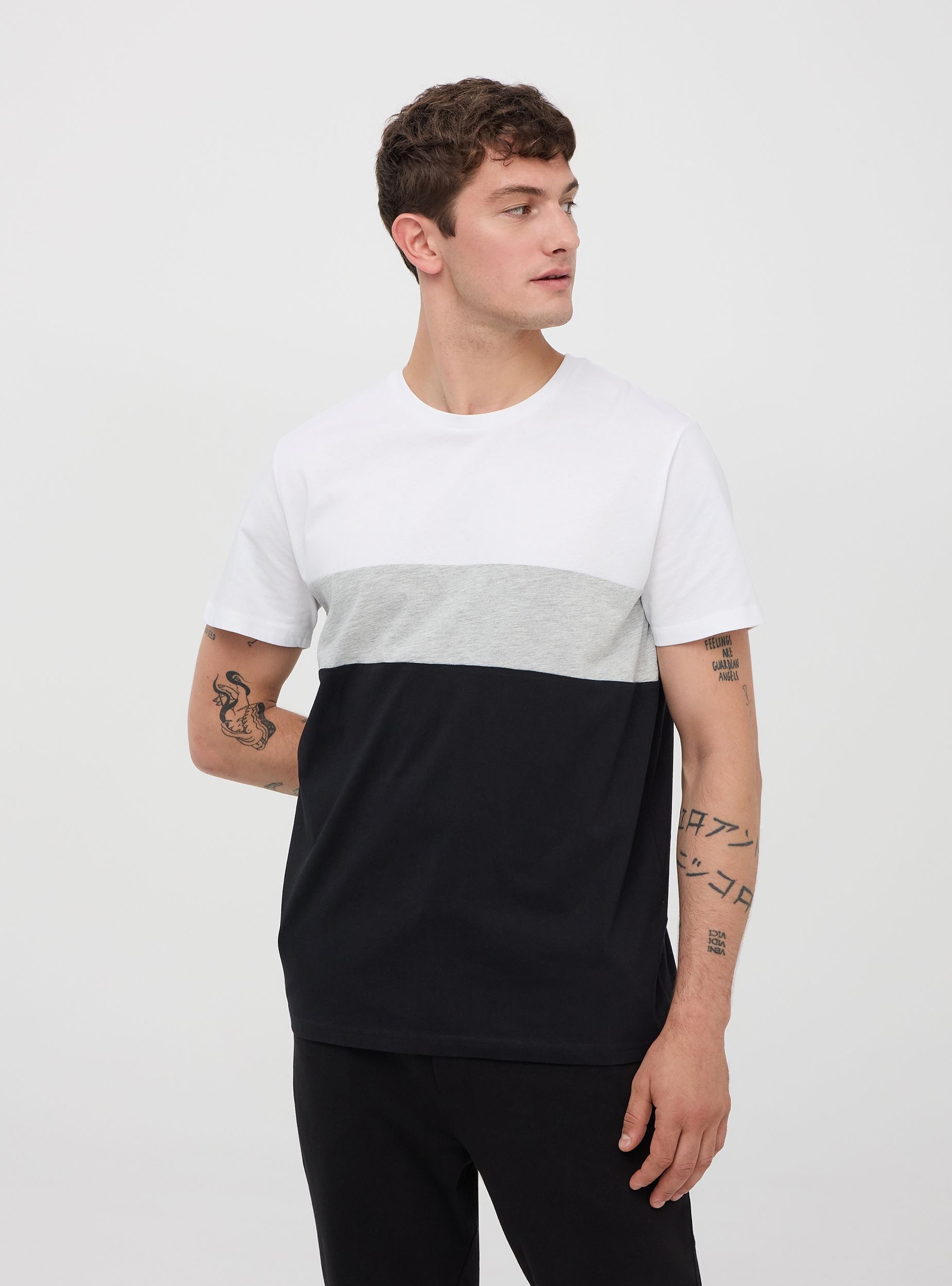Majica za muškarce od pamučnog džersija sa blok bojama. Model sa okruglim izrezom i kratkim rukavima. Regular fit.