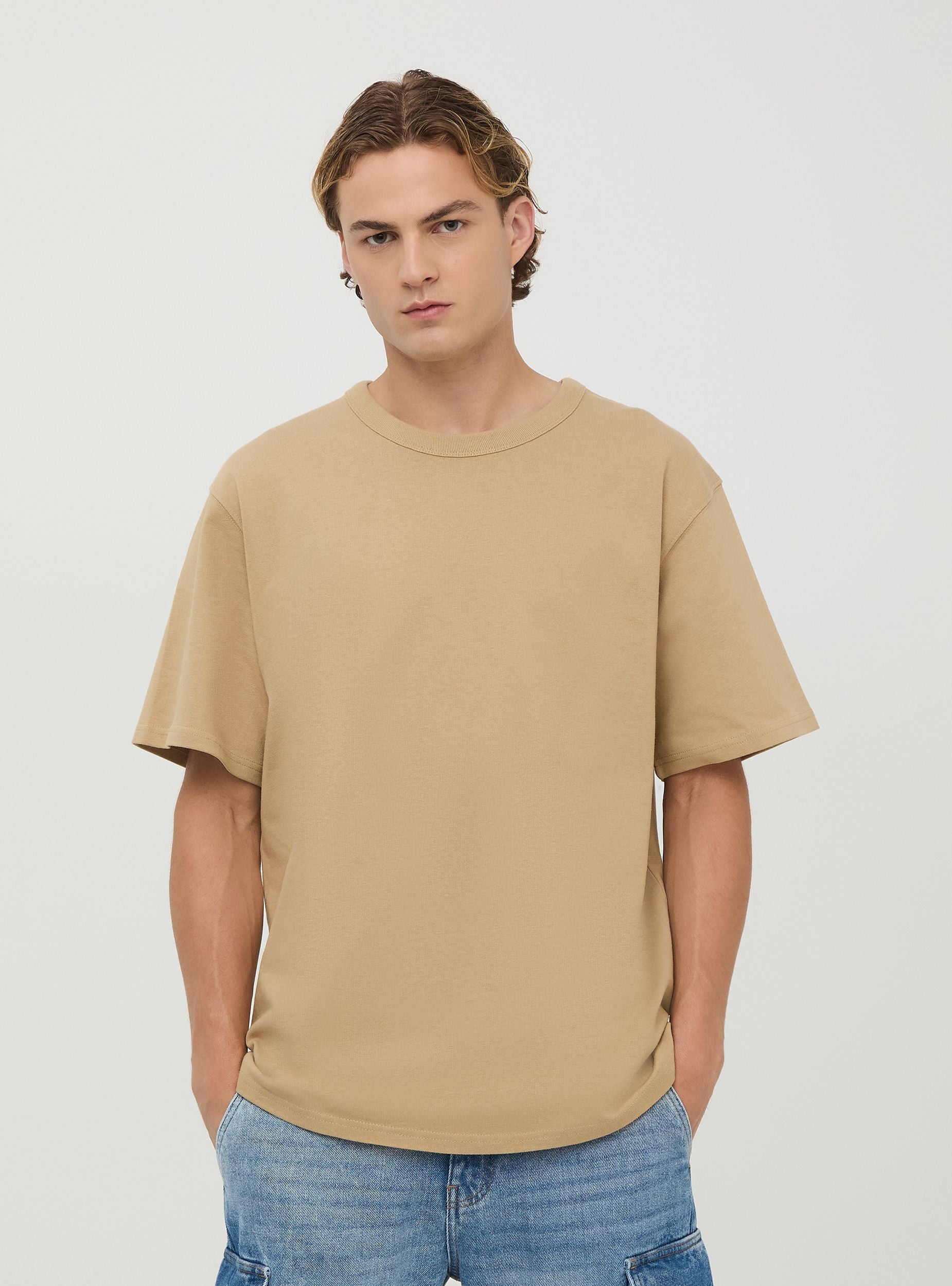 Majica za muškarce od pamuka. Težak jednobojni materijal. Model sa okruglim izrezom i kratkim rukavima. Osnovni komad savršen za svakodnevne kombinacije. Regularna kroj.Detalji
