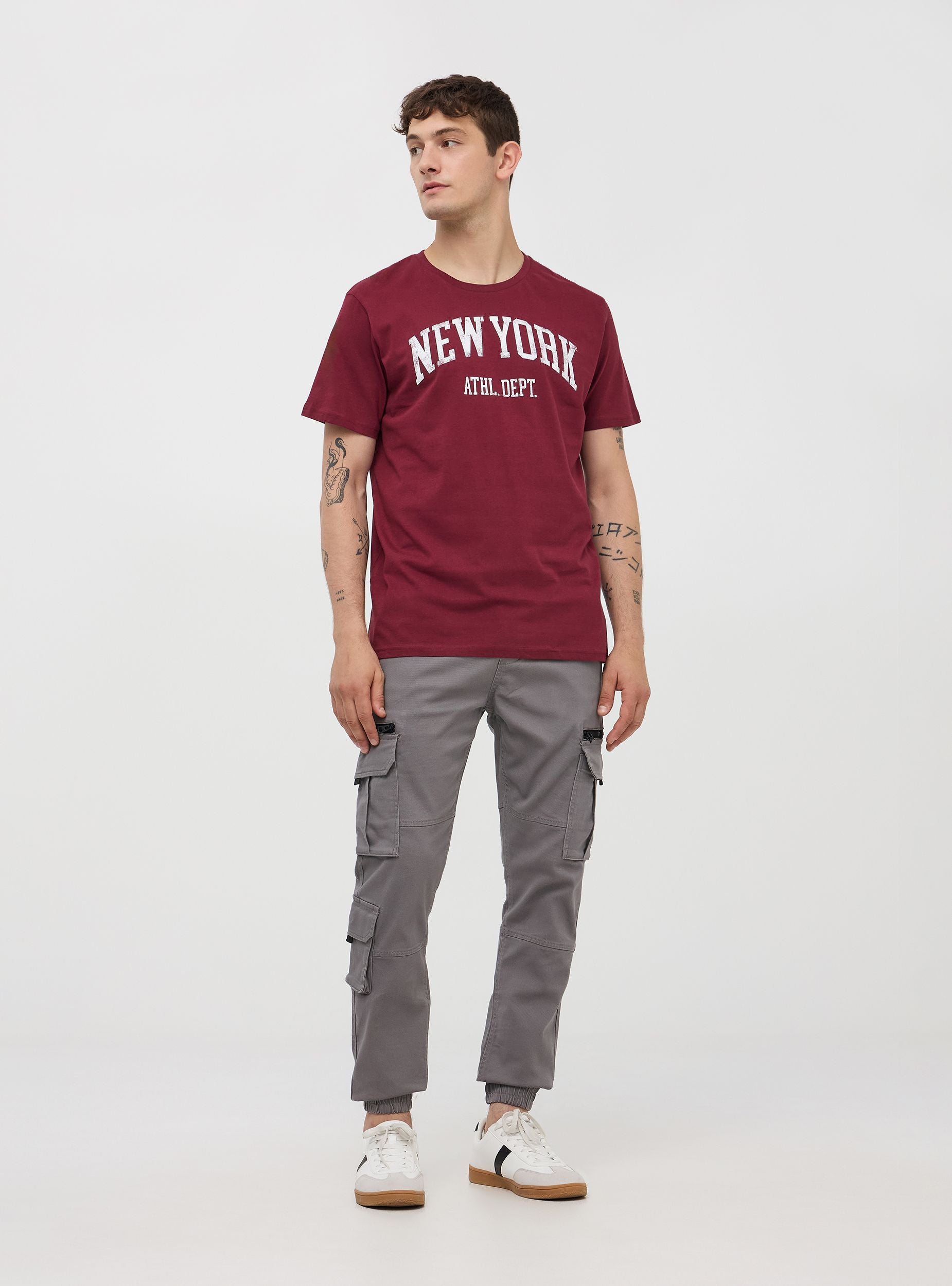 Muška majica od pamučnog džersija sa college printom. Model sa okruglim izrezom i kratkim rukavima. Regular fit.Detalji