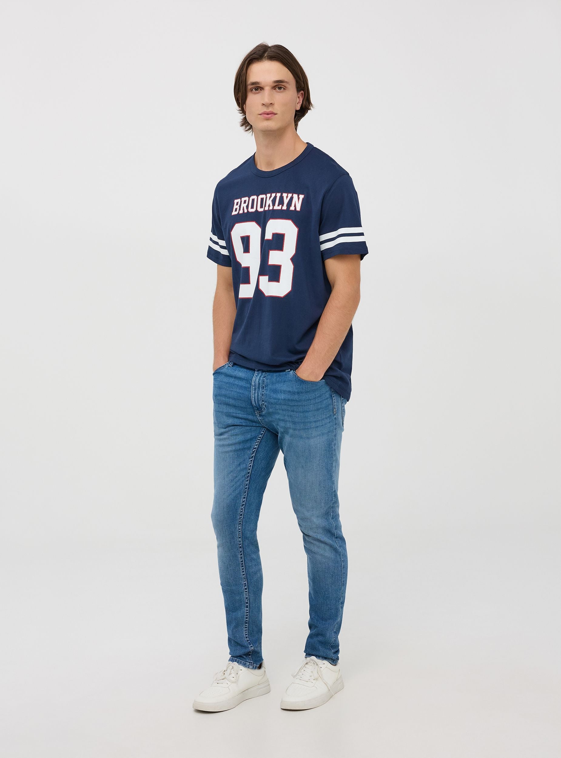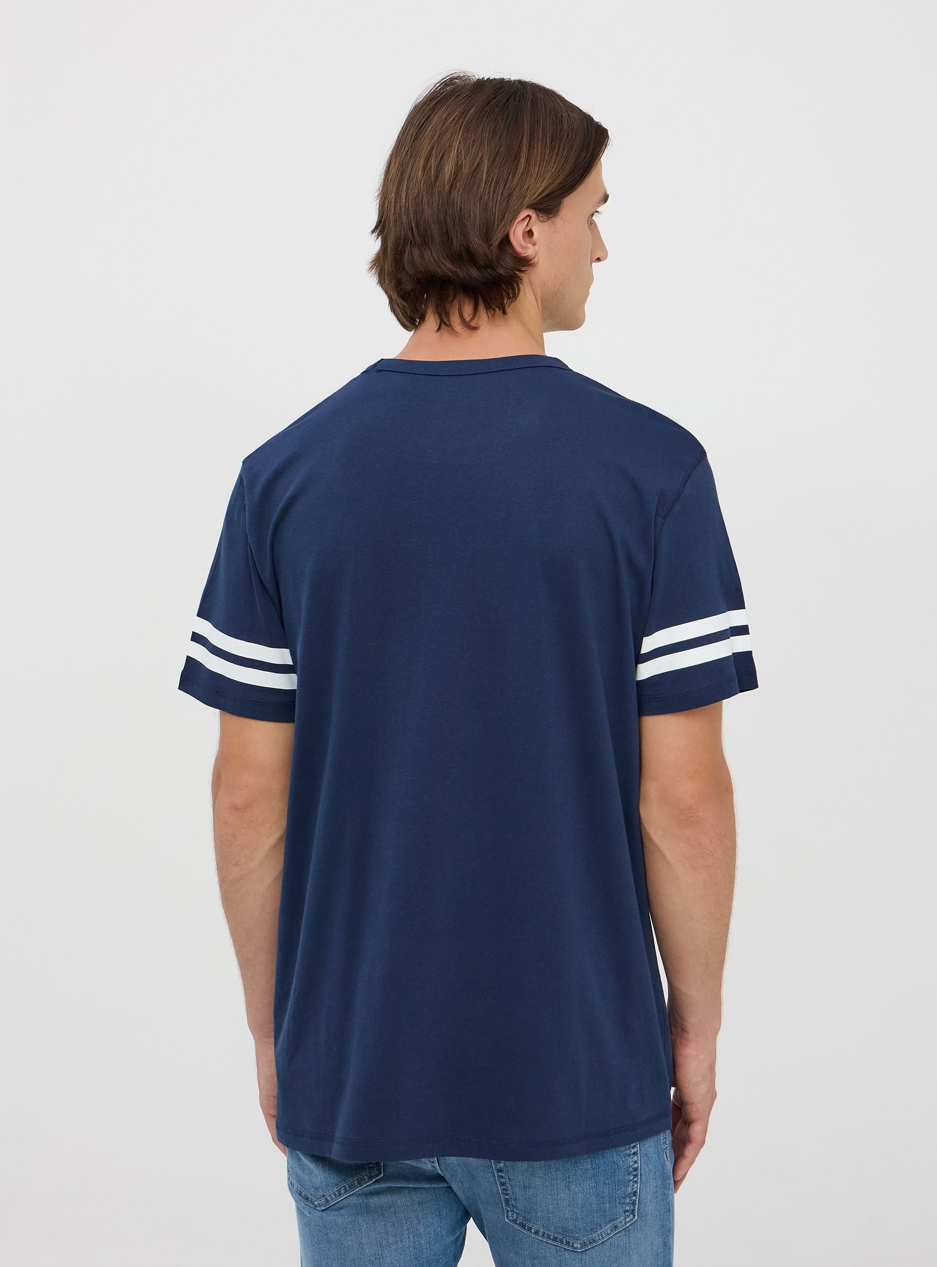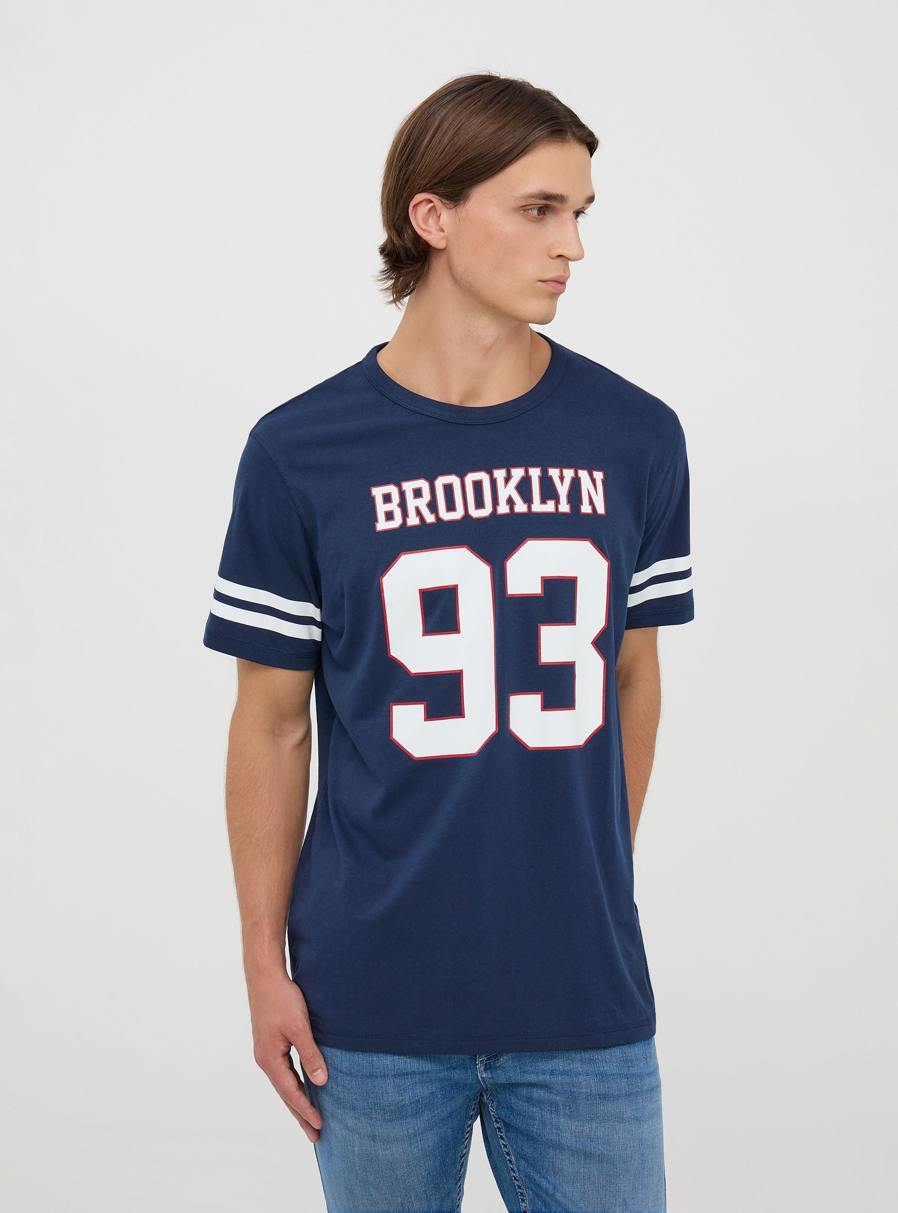 Majica za muškarce model sa okruglim izrezom i kratkim rukavima sa kontrastnim trakama. Ispis sa natpisom i brojem na prednjoj strani. Regularna kroja.Detalji