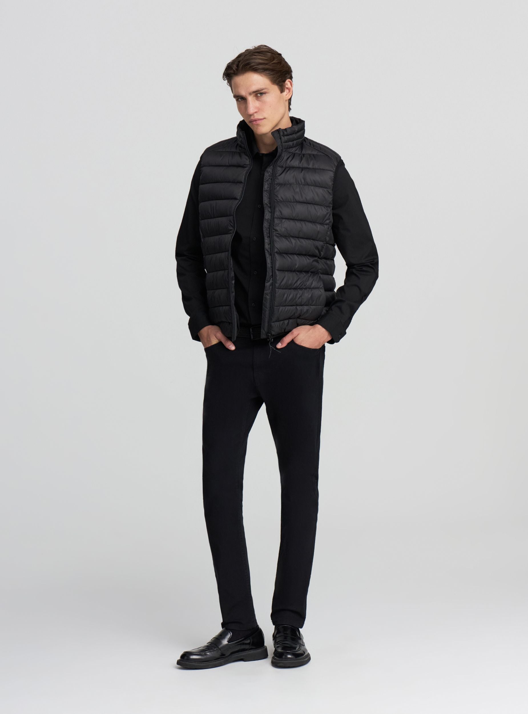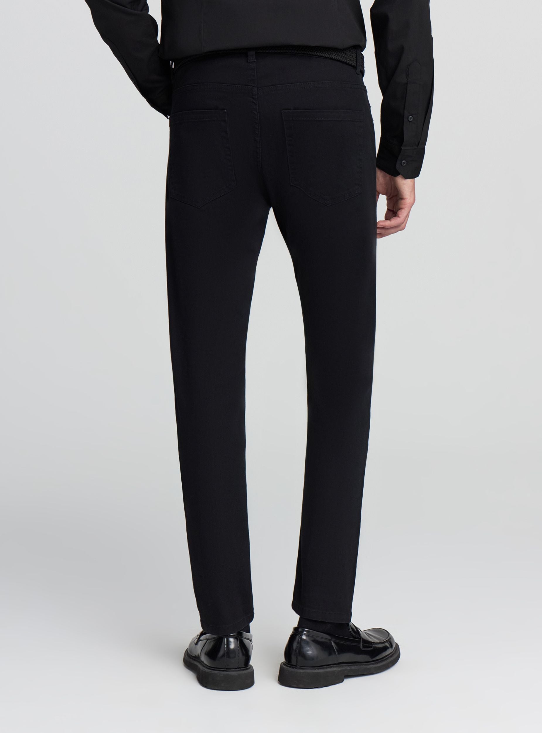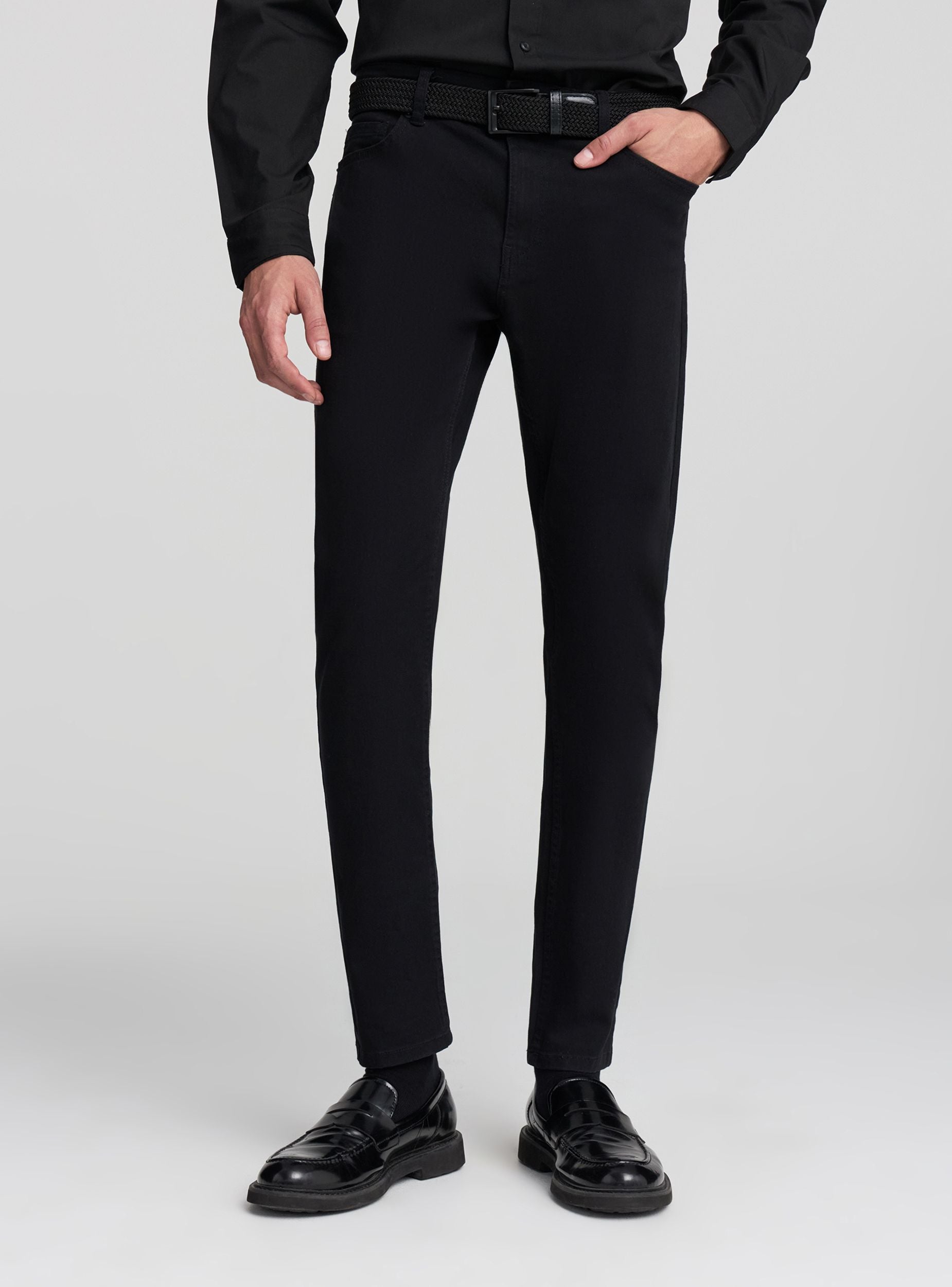 Muške pantalone uskog kroja, idealne za moderan i svestran izgled. Imaju pet džepova, što pruža praktičnost i stil. Savršene za formalne ili ležerne prilike, lako se kombinuju sa košuljama ili majicama. Zatvaranje na dugme i rajsferšlus za optimalnu udobnost. Neophodan komad za savremeni garderober.