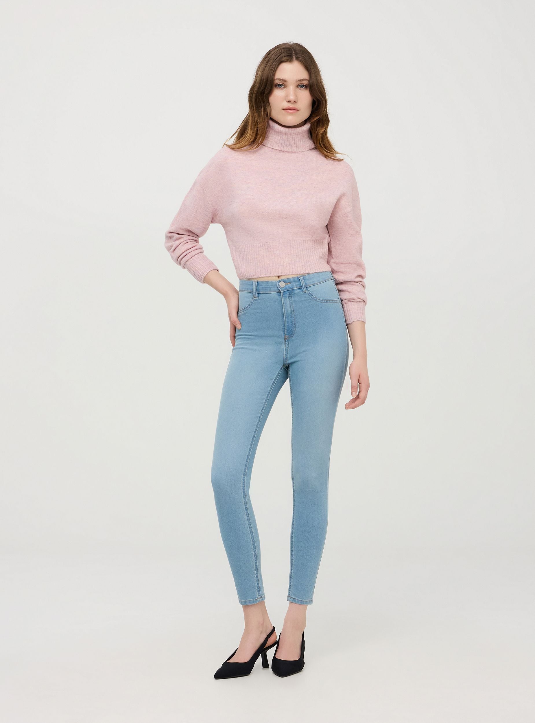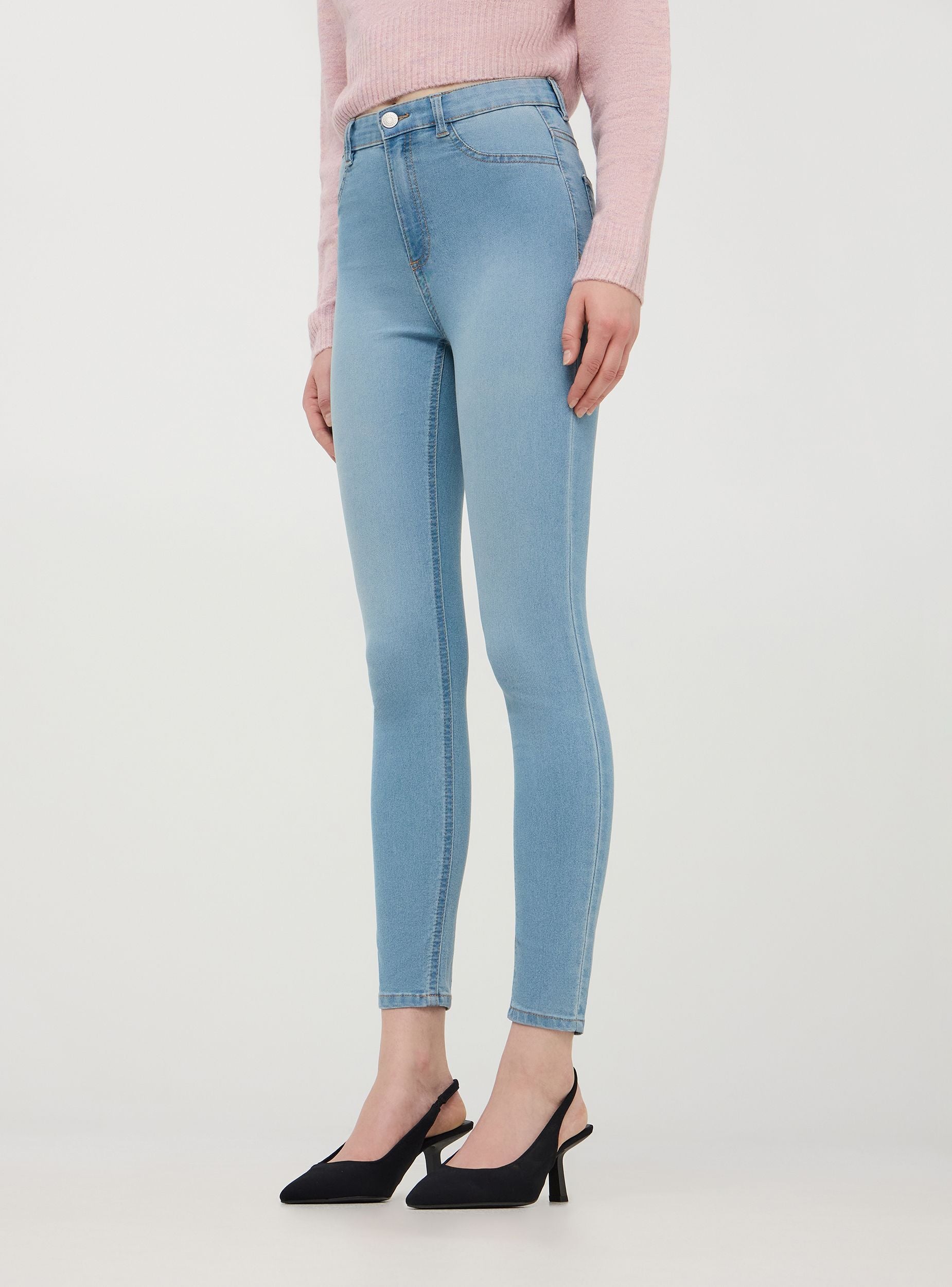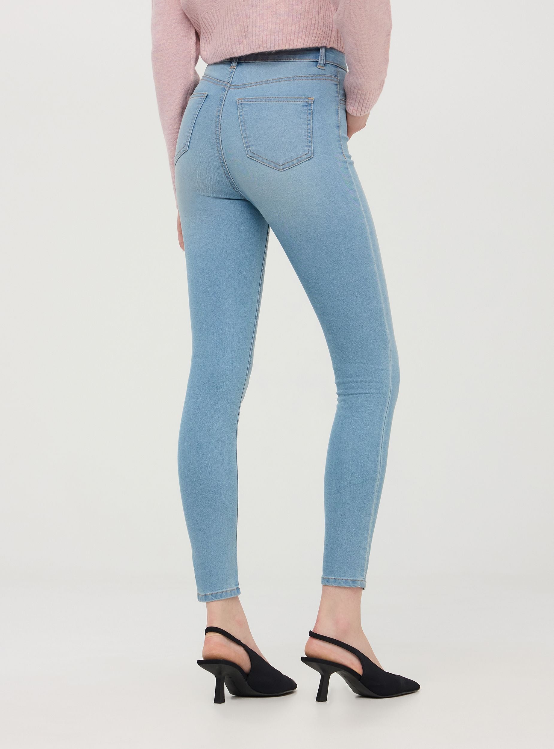 Ženske skinny jeggings pantalone sa visokim strukom koje kombinuju stil teksasa i udobnost tajica. Napravljene od elastičnog materijala koji osigurava usko i udobno pristajanje. Opremljene su omčama za kaiš i kopčanjem sa rajsferšlusom i dugmetom, nudeći elegantnu siluetu i naglašavajući figuru. Jeggings uključuju lažne prednje džepove za čist izgled i dva funkcionalna zadnja džepa za praktičnost. Idealne za kombinovanje sa casual ili elegantnim topovima, ove jeggings pantalone su savršene za kreiranje outfita kako za dan, tako i za veče.Detalji